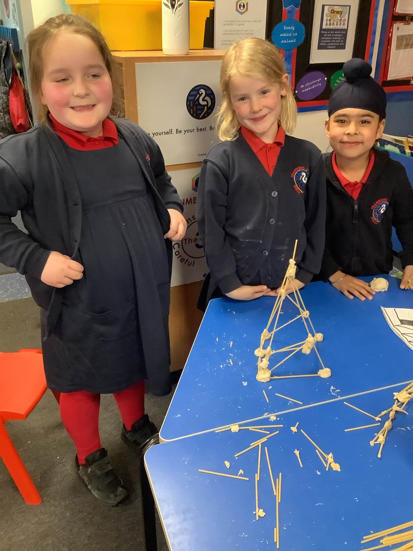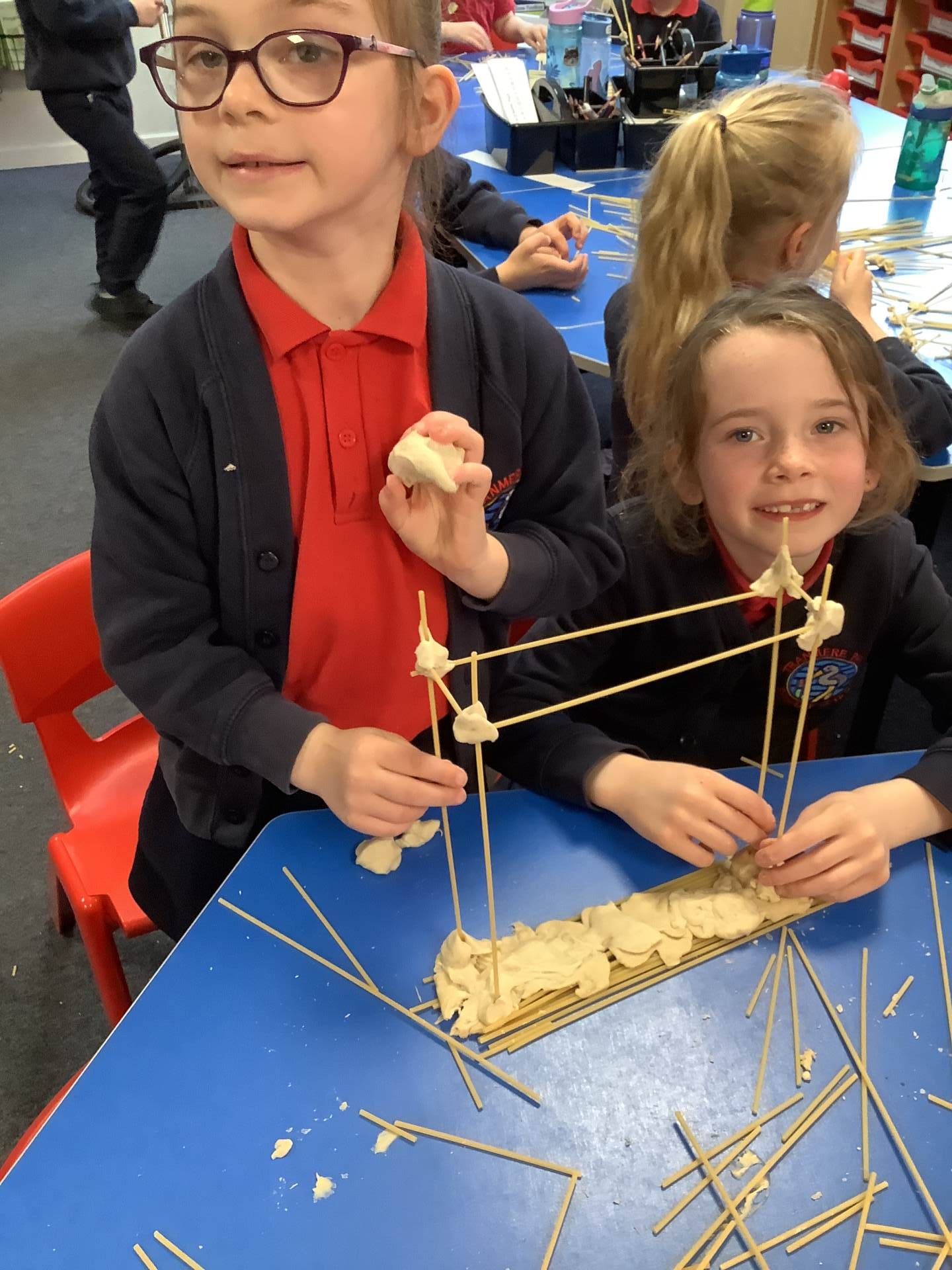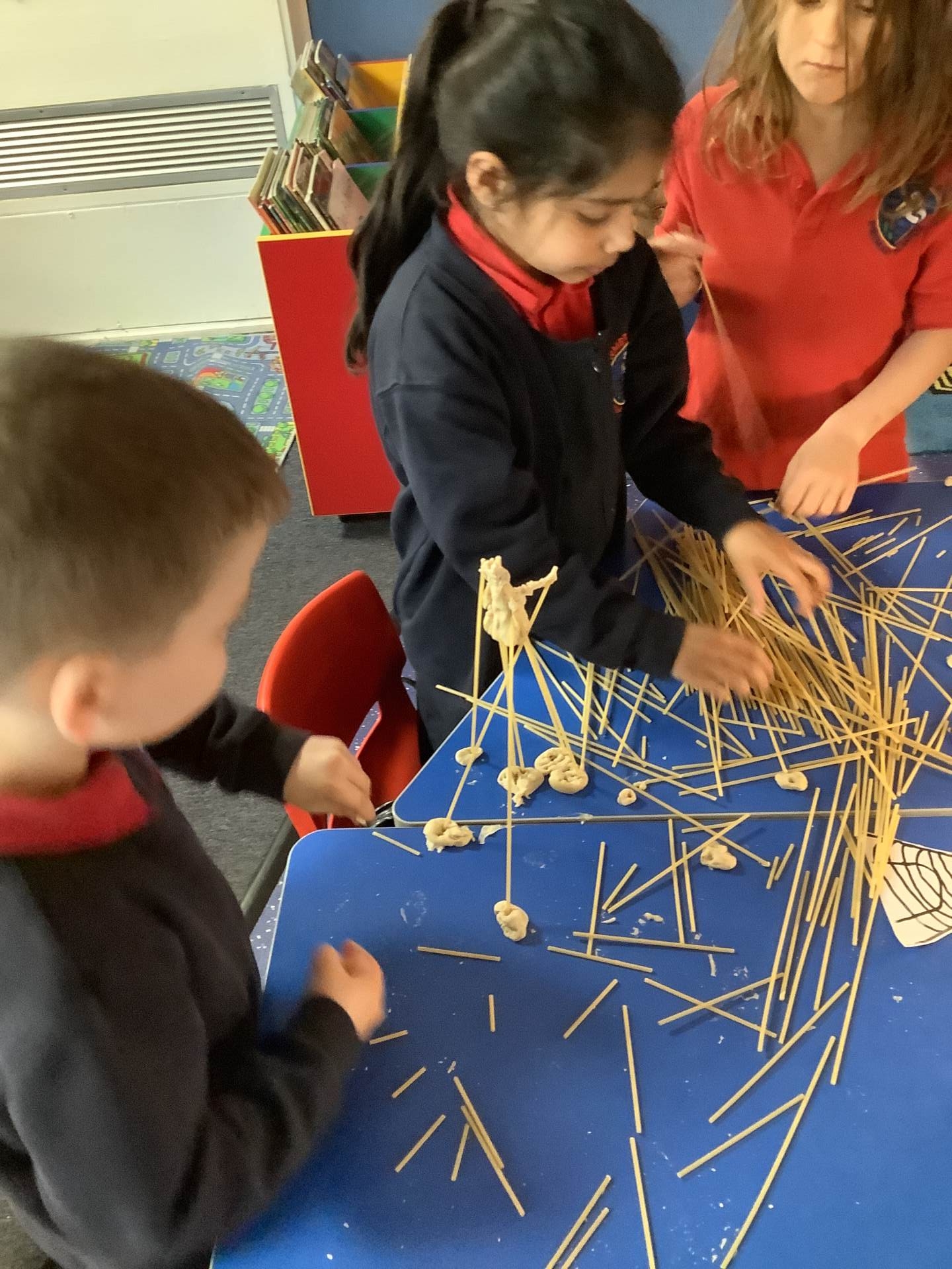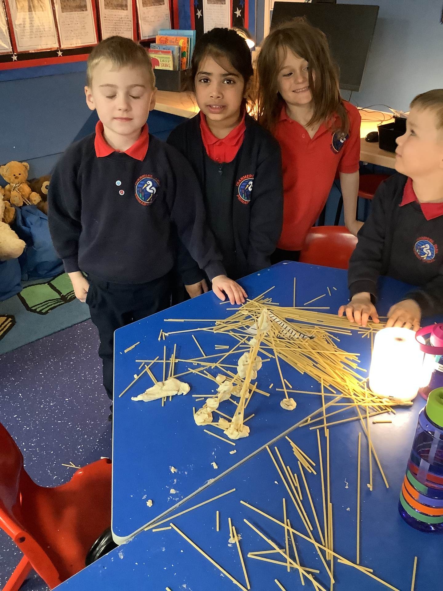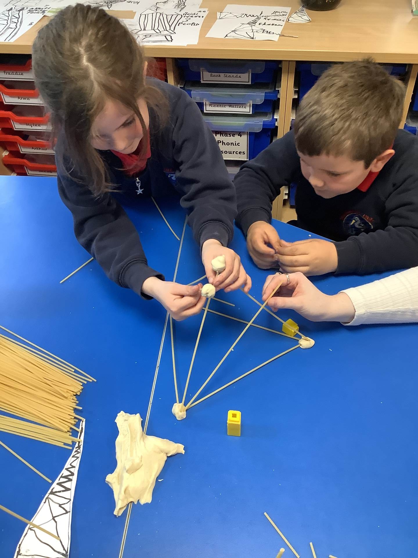 This week, the children have been designing their own towers, utlising the strengthening techniques that we have learnt about. Today, the children tested their designs, using spaghetti and playdough.