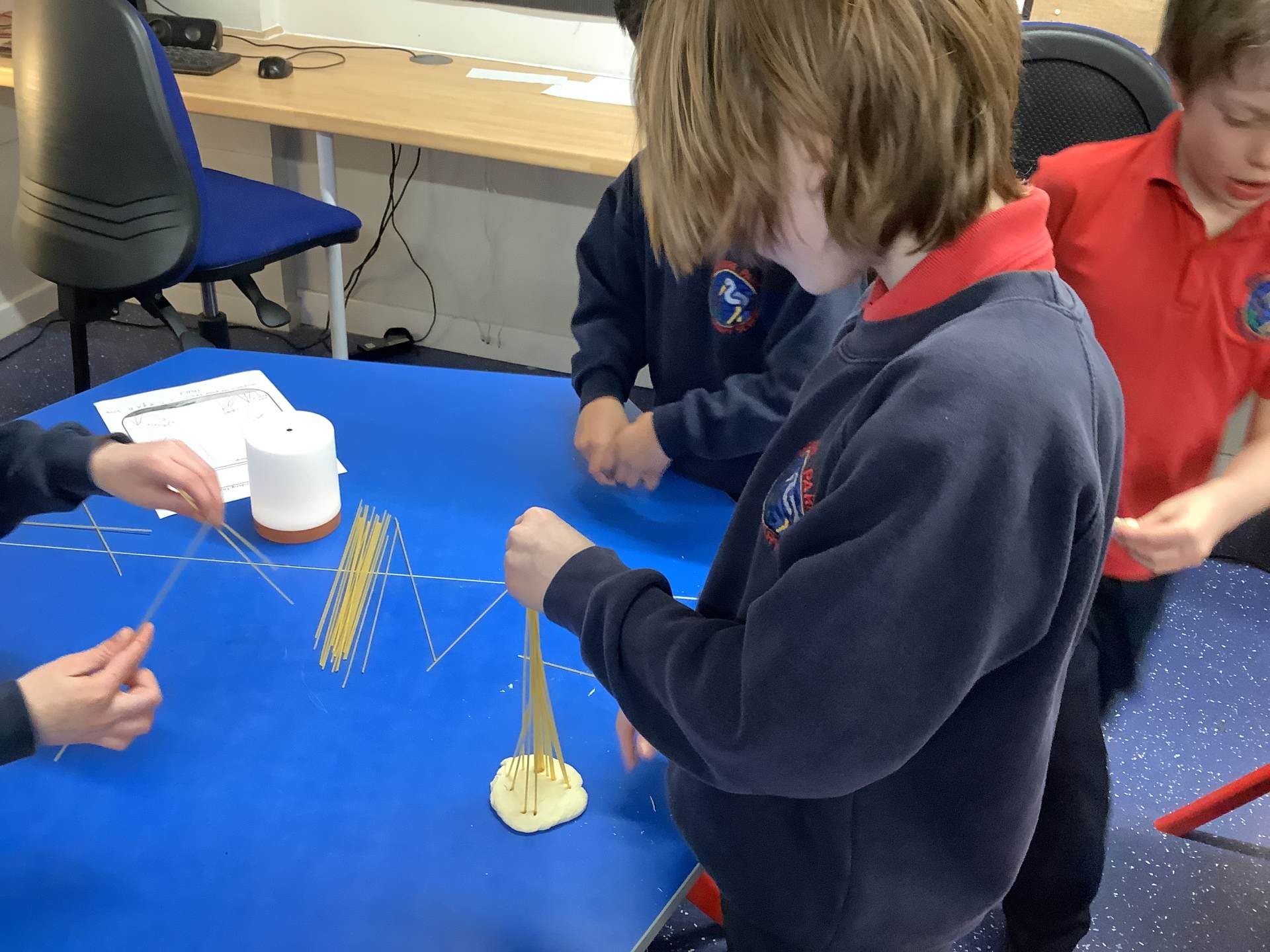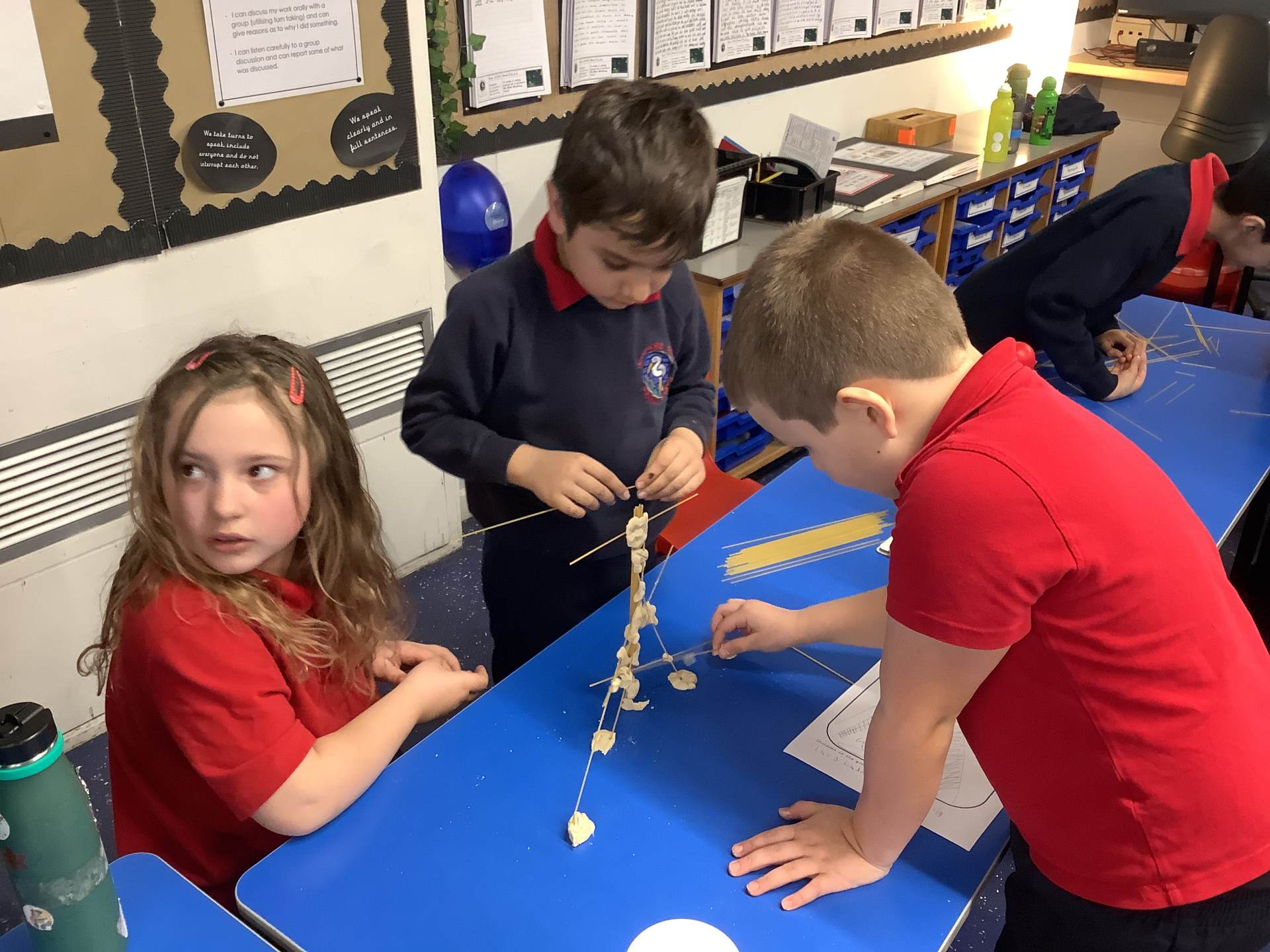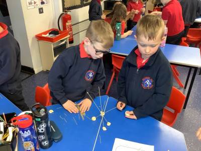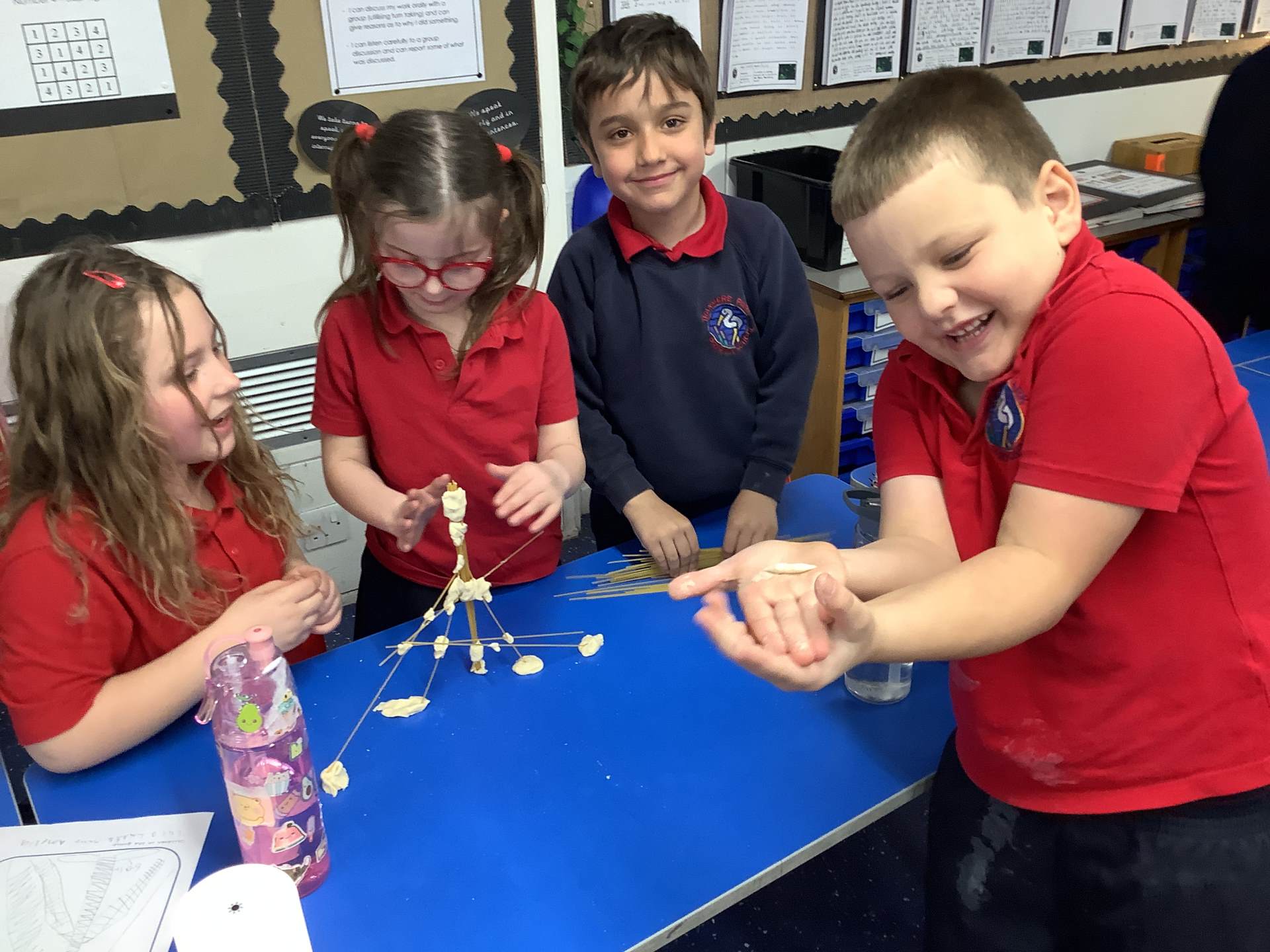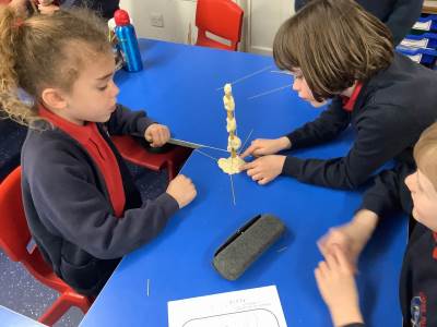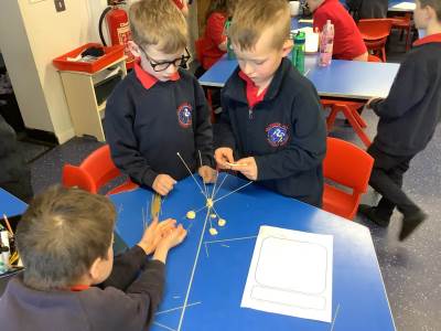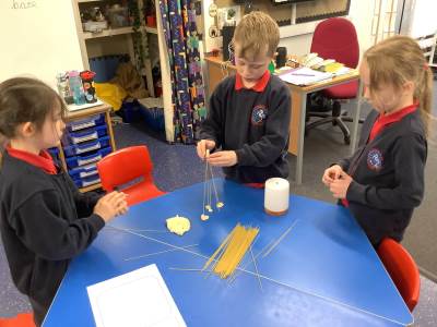 Today, the children made and tested their designs, using spaghetti and playdough.