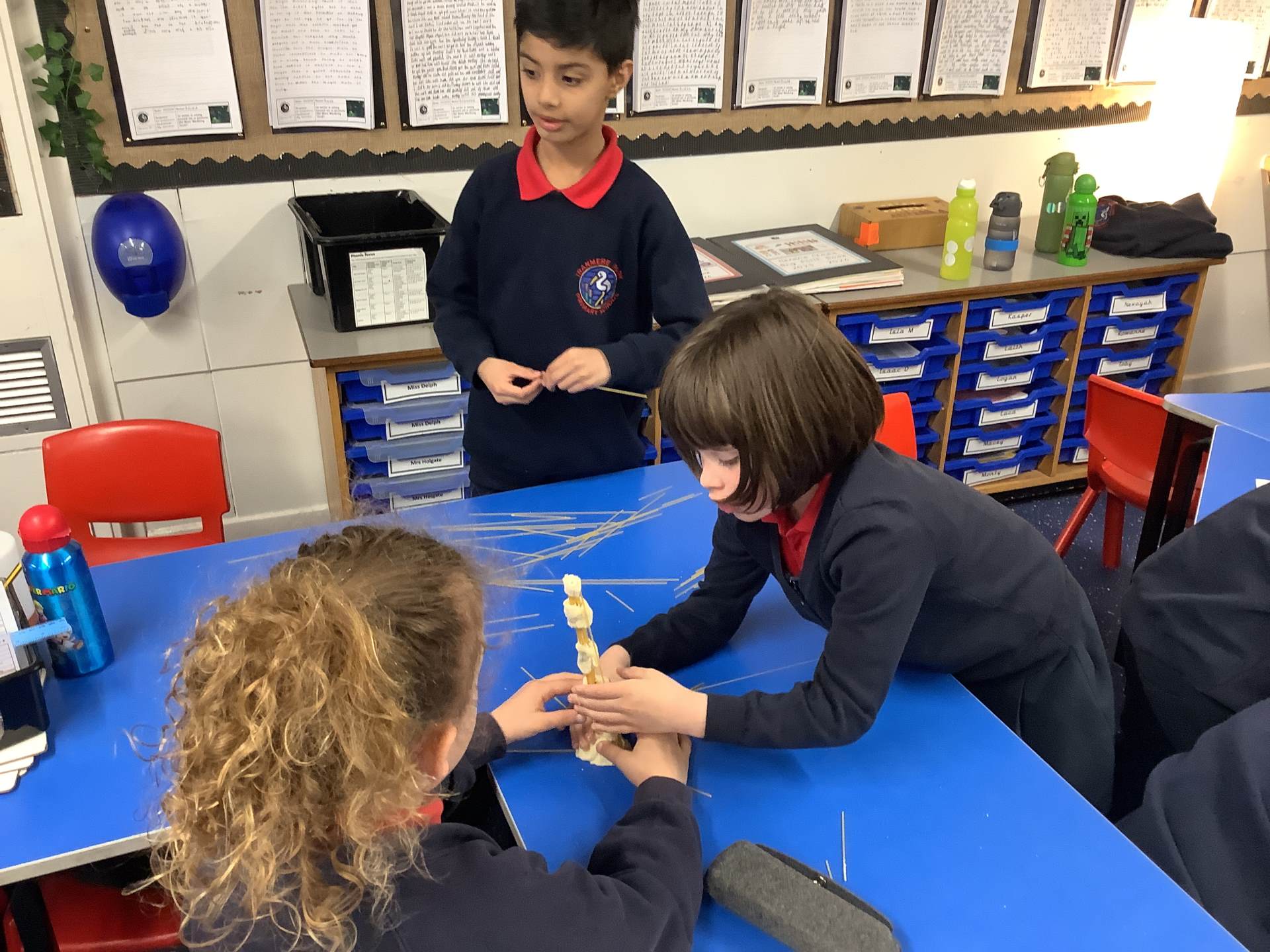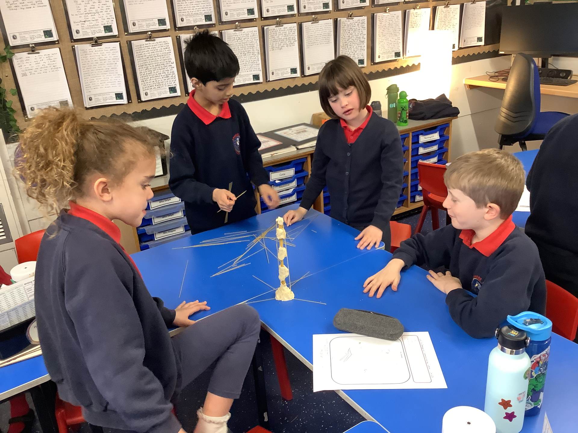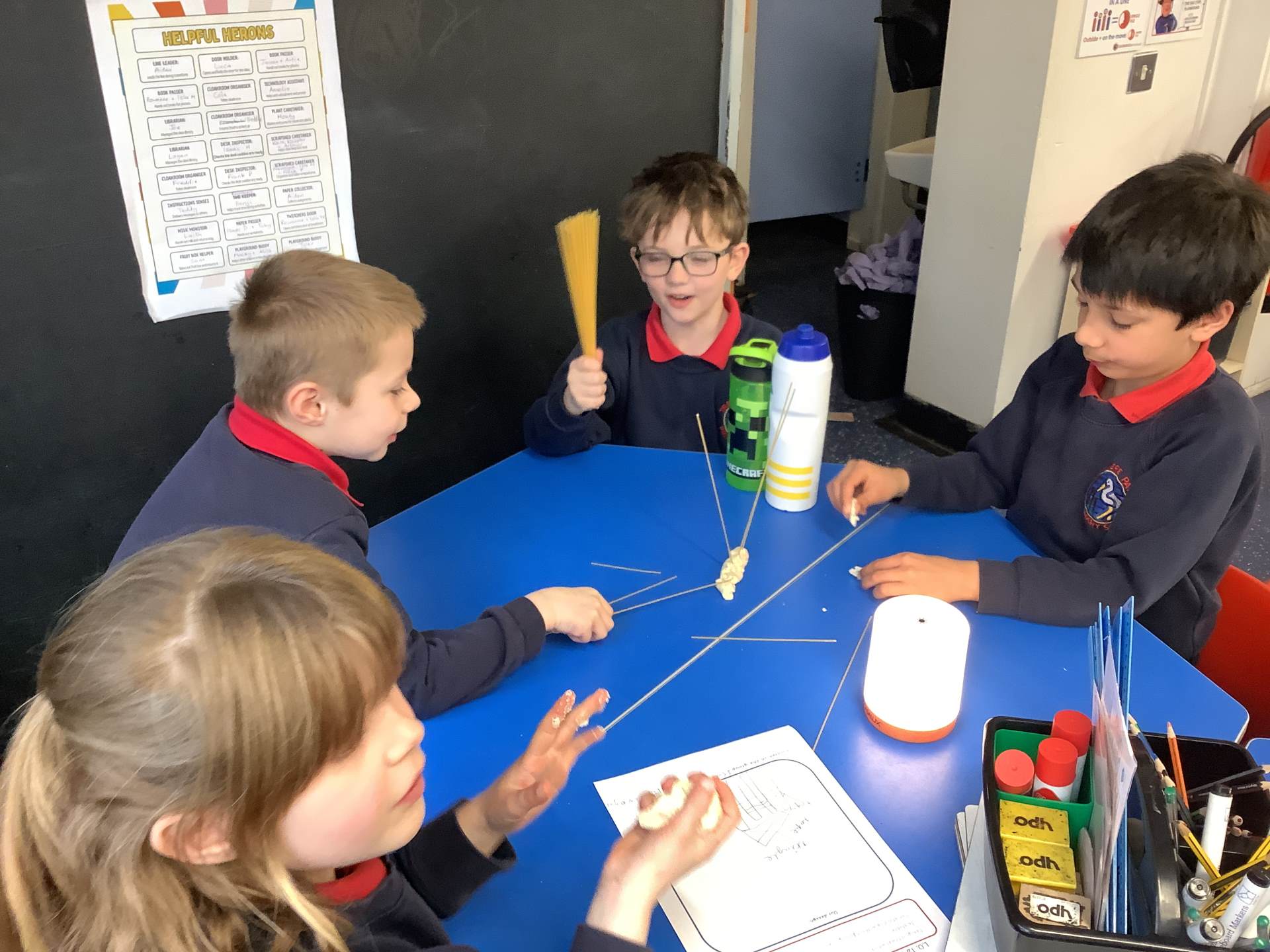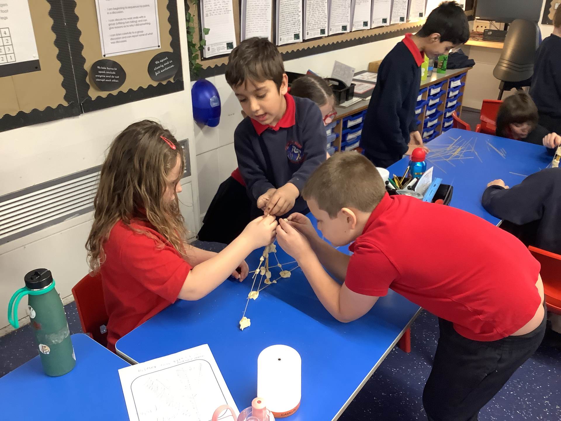 Today, the children made and tested their designs, using spaghetti and playdough.