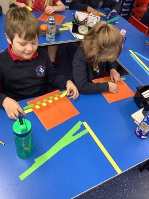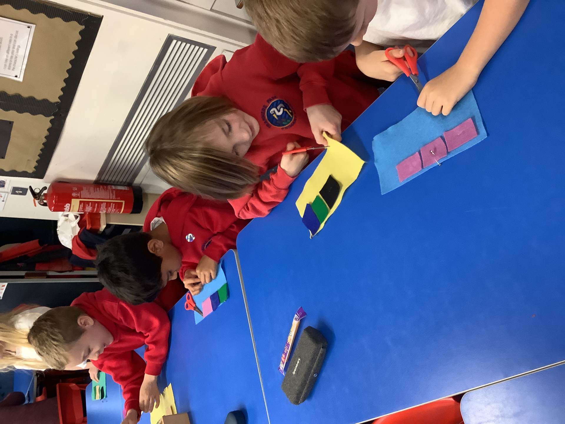 We have learnt different techniques such as stamping, fringing, coiling and rolling. During this topic, we have also looked at repeating patterns. We used counters to take turns identifying the patterns we could see and then built on what our friends had already identified.