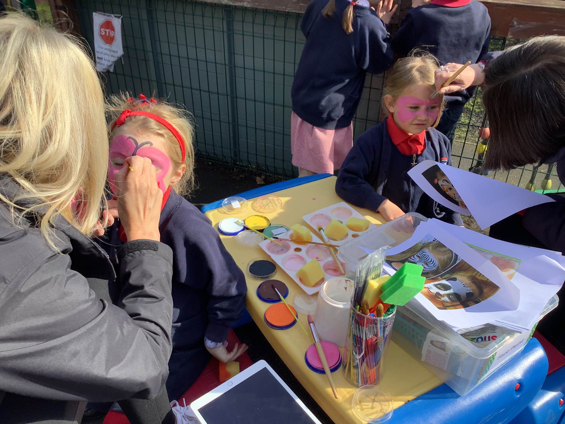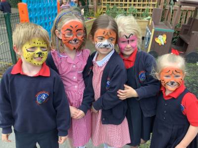 Today we started our new topic ‘Animals’ by taking part in an animal themed day. We had our faces painted,  learned some animal songs and dances, decorated animal biscuits and went on a wild animal safari!