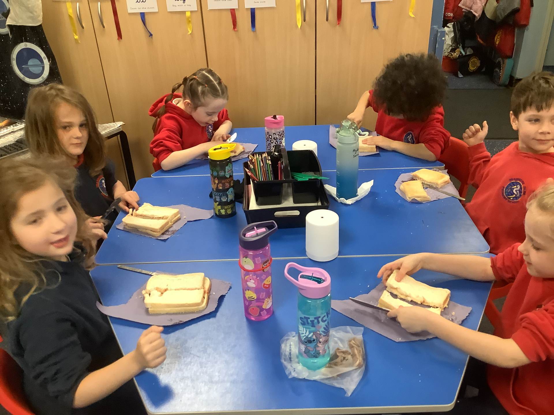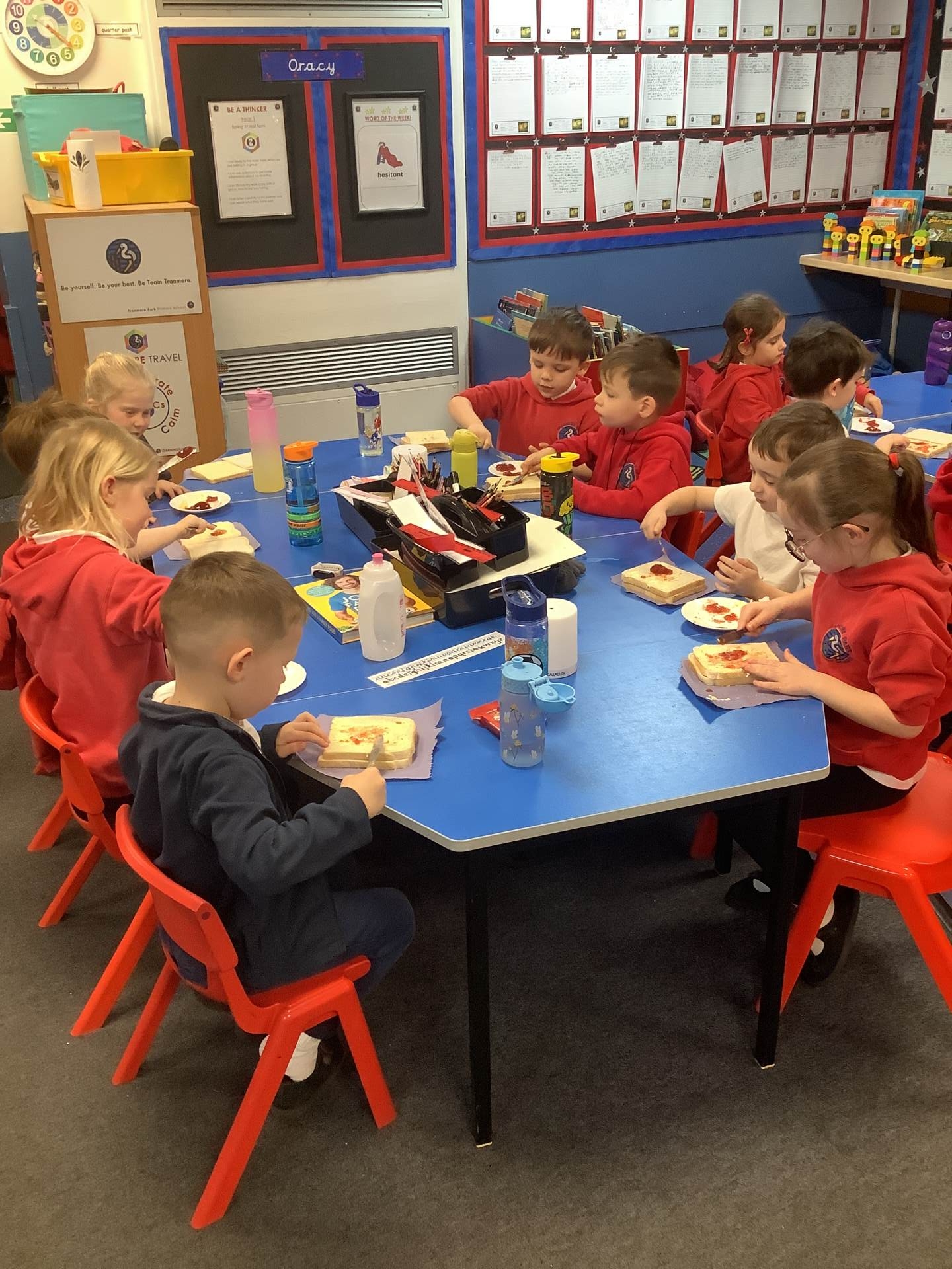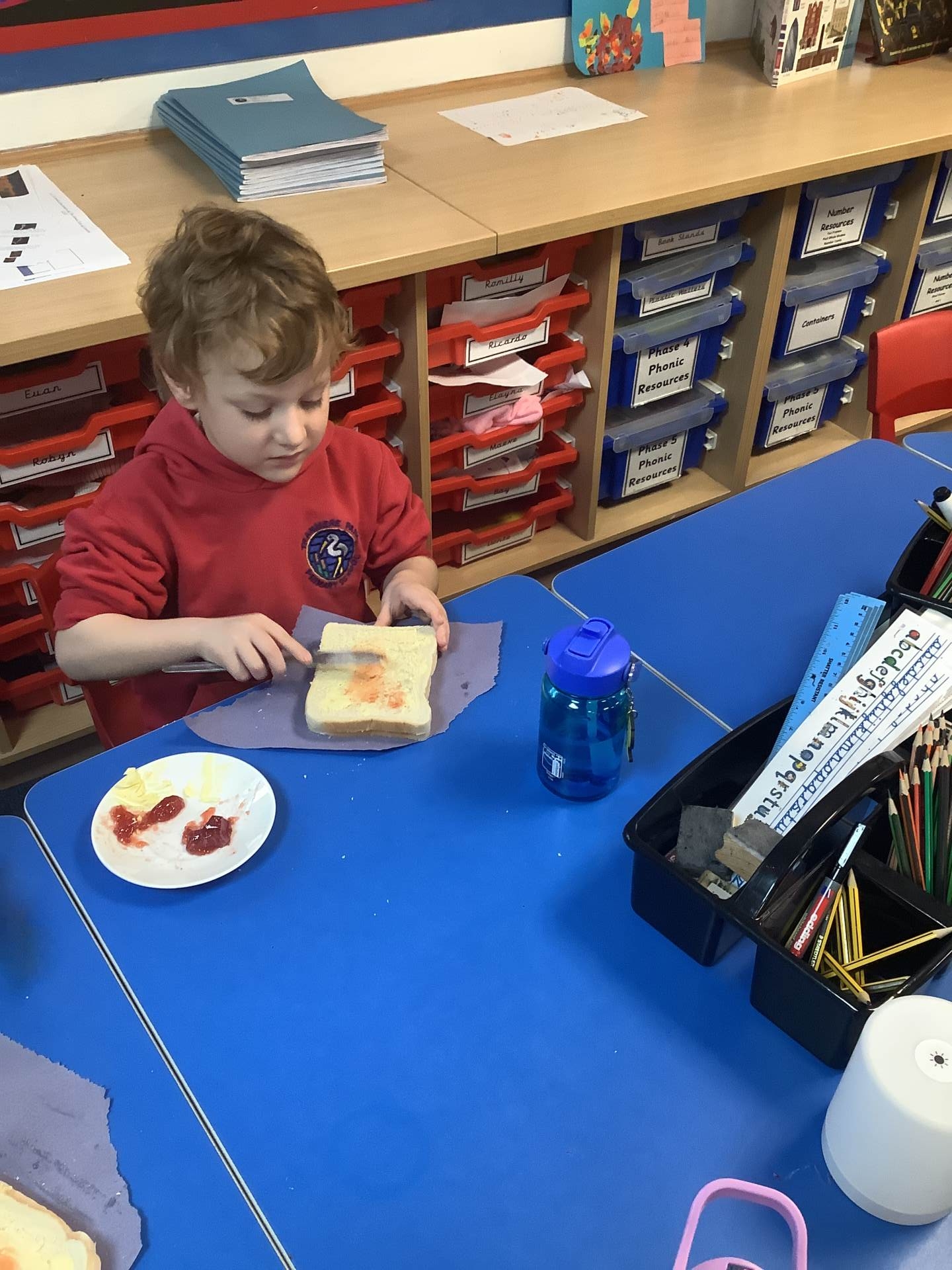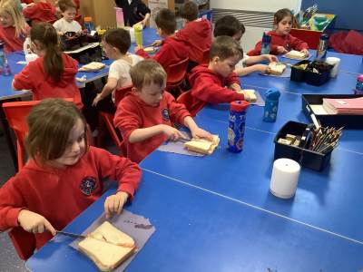They all did a fantastic job of making their jam sandwiches, and an even better job of eating them!