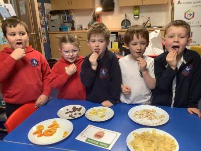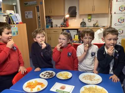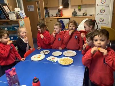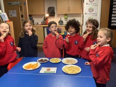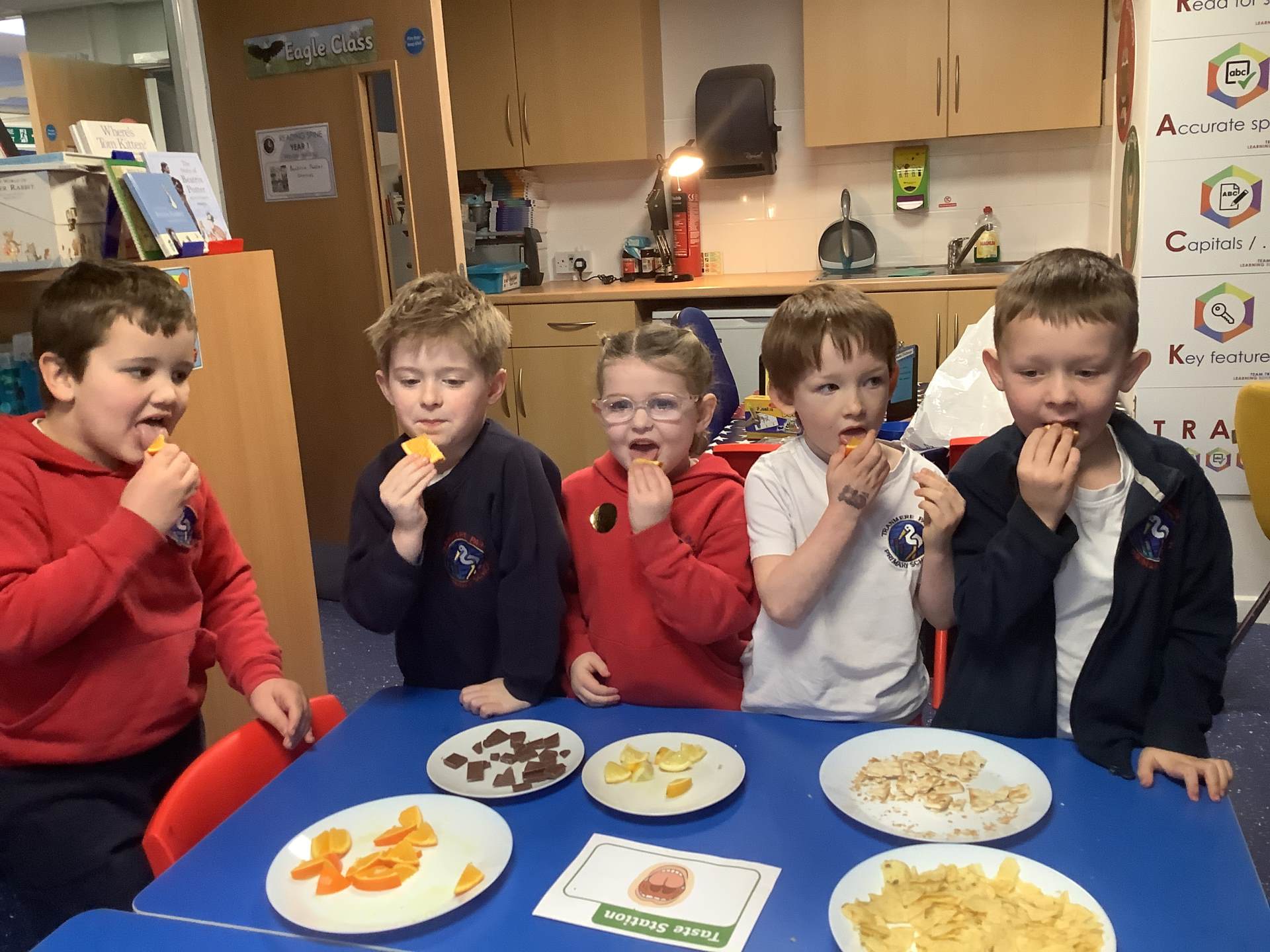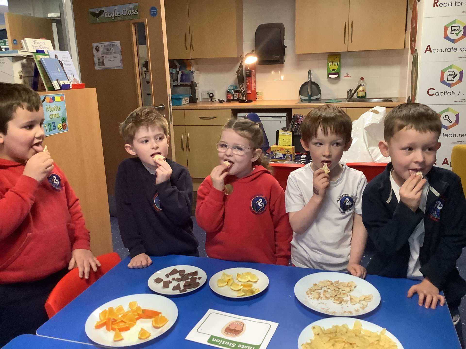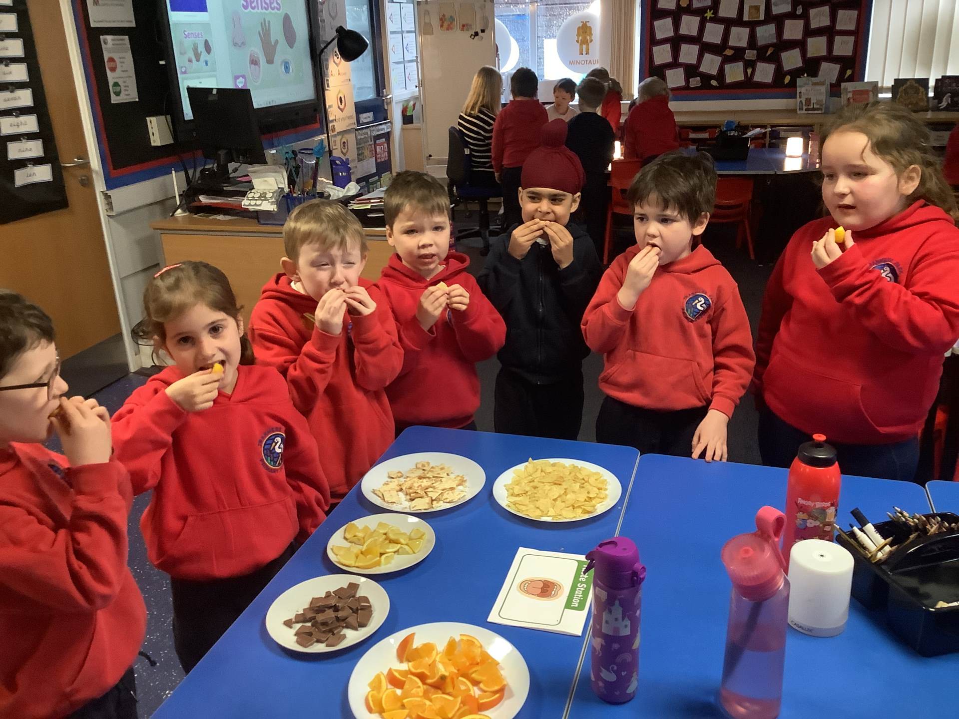 As part of our science work we discussed what we already knew about the 5 senses (sight, hearing, smell, taste, and touch) and identified which body part is used for each sense. The children then completed an investigation to see how good their senses were.