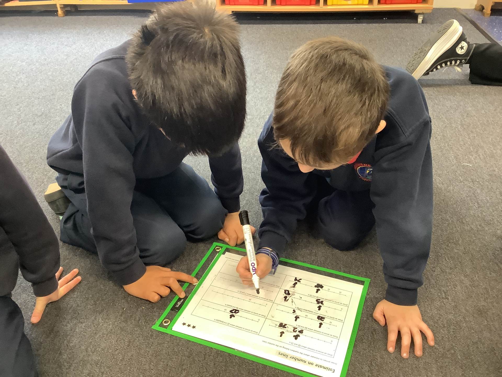 In maths, Year 2 have been practising identifying and representing numbers on a number line. We used our knowledge of number lines to estimate where a chosen number would go. We also discussed how to make a sensible estimate by looking at the numbers at the start and end of the line and thinking about where the number would fit.