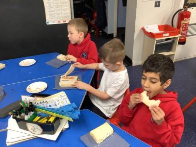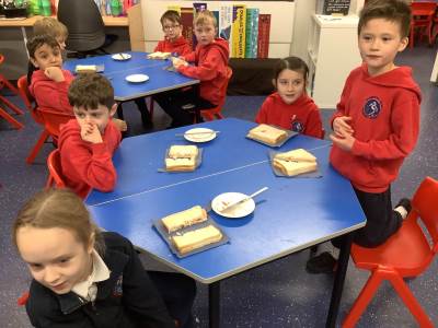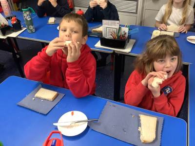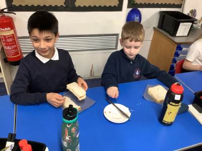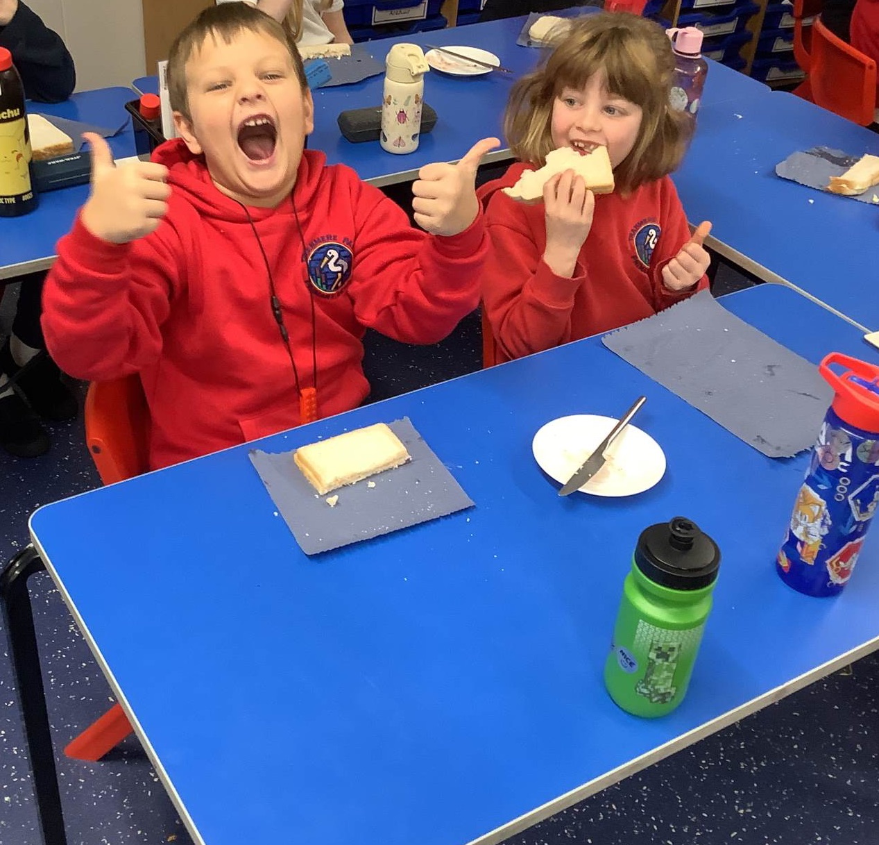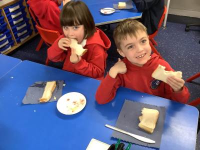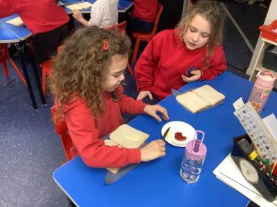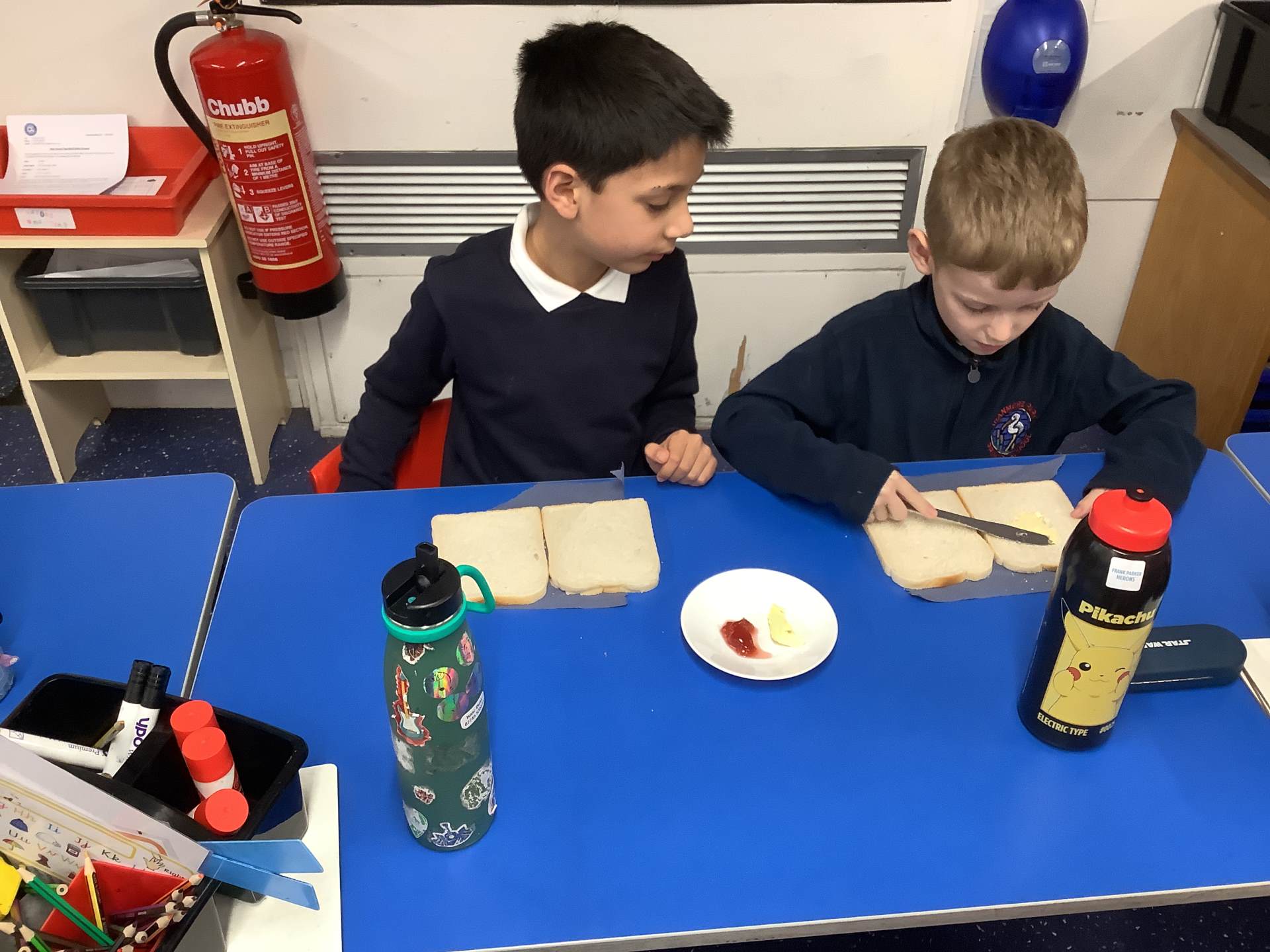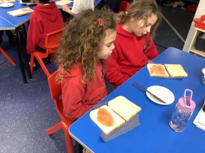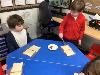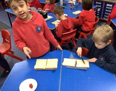 They all did a fantastic job of making their jam sandwiches, and an even better job of eating them!