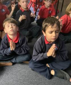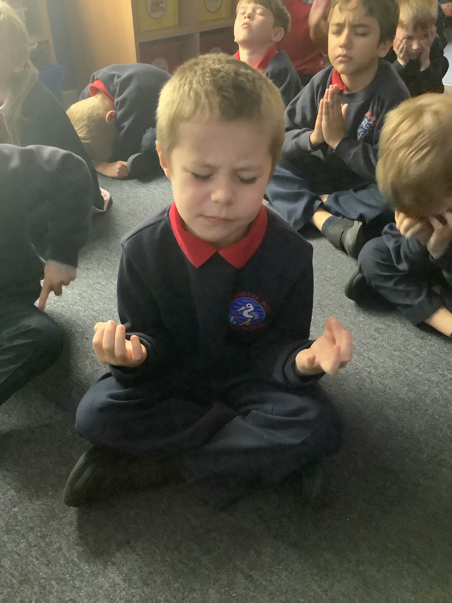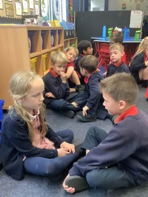 Next, we imagined a day at the beach. Using items linked to holidays, sounds of waves, and a guided visualisation, the children explored what it might feel like to be by the sea. This helped them focus on using their senses and descriptive language.
