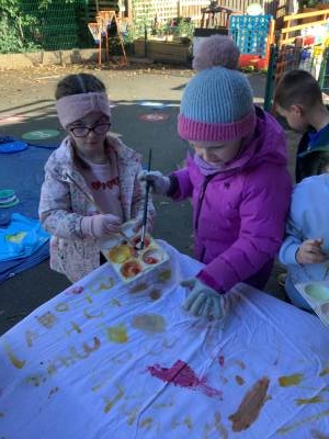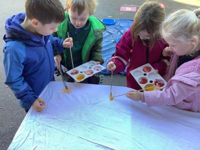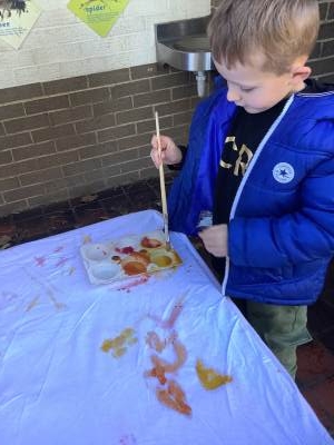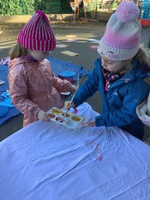 The children have loved immersing themselves in nature; creating natural dyes, playing and exploring through mud kitchen activities, learning to tie knots and creating their own rock pools using natural resources.