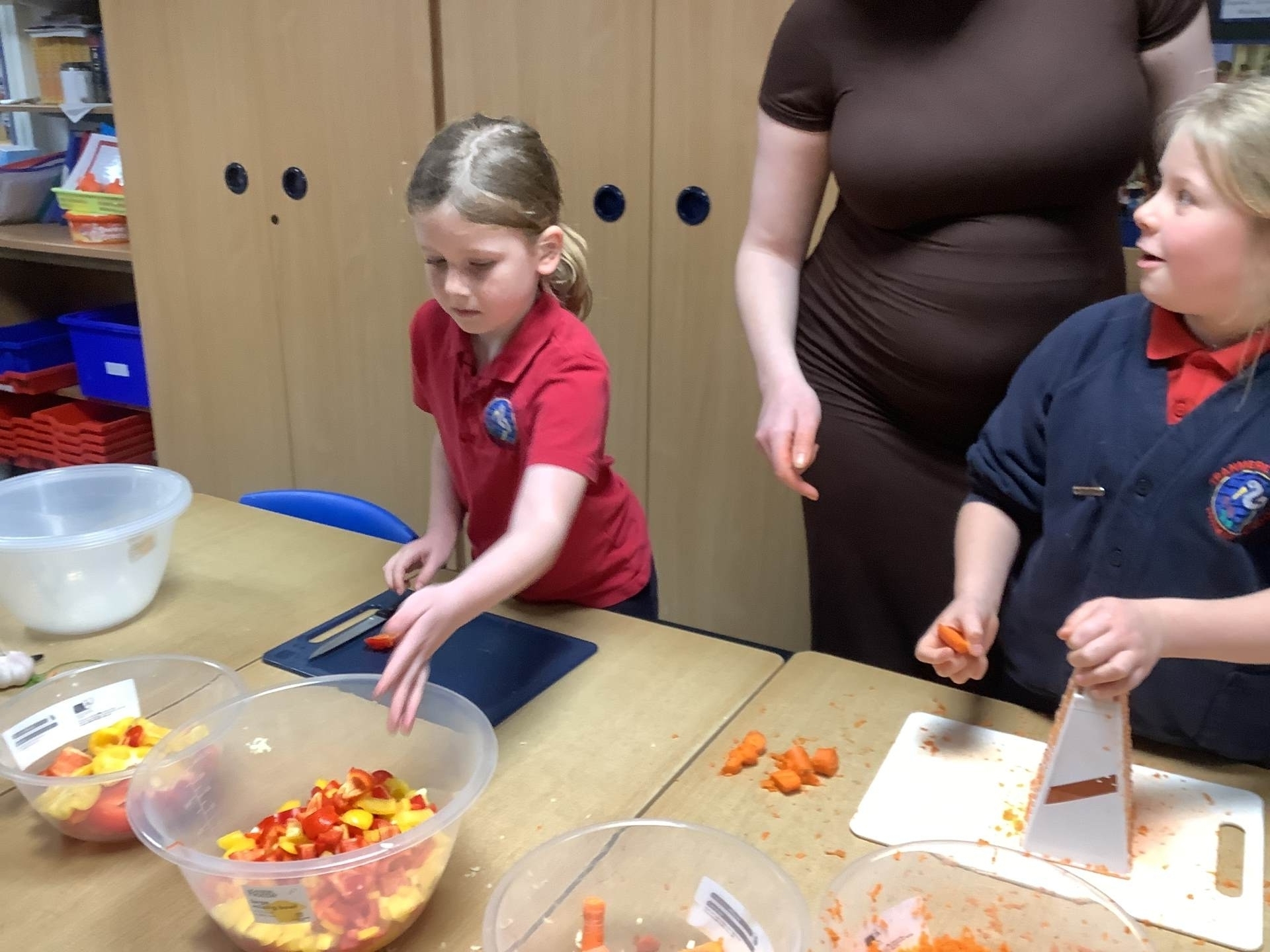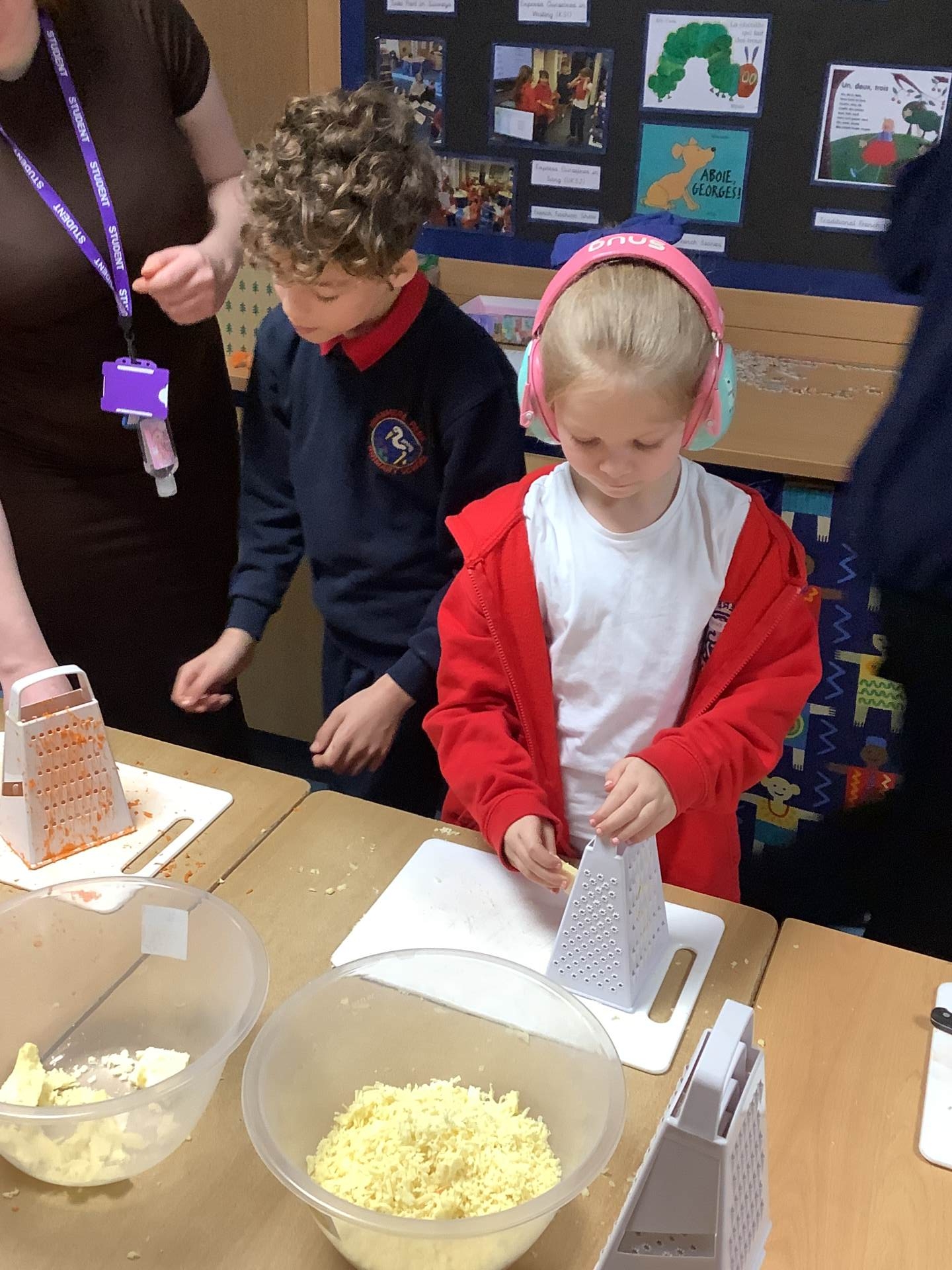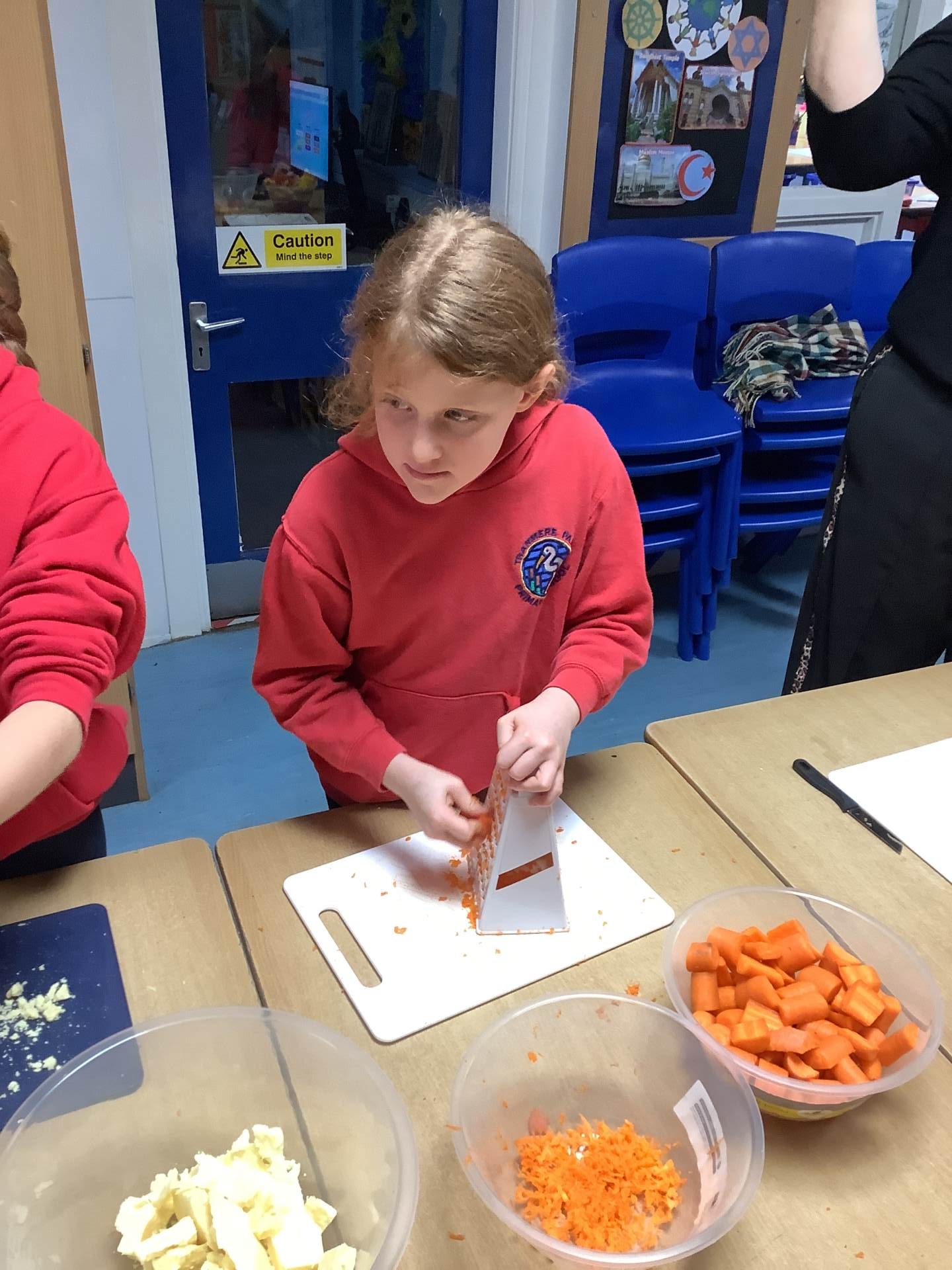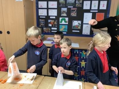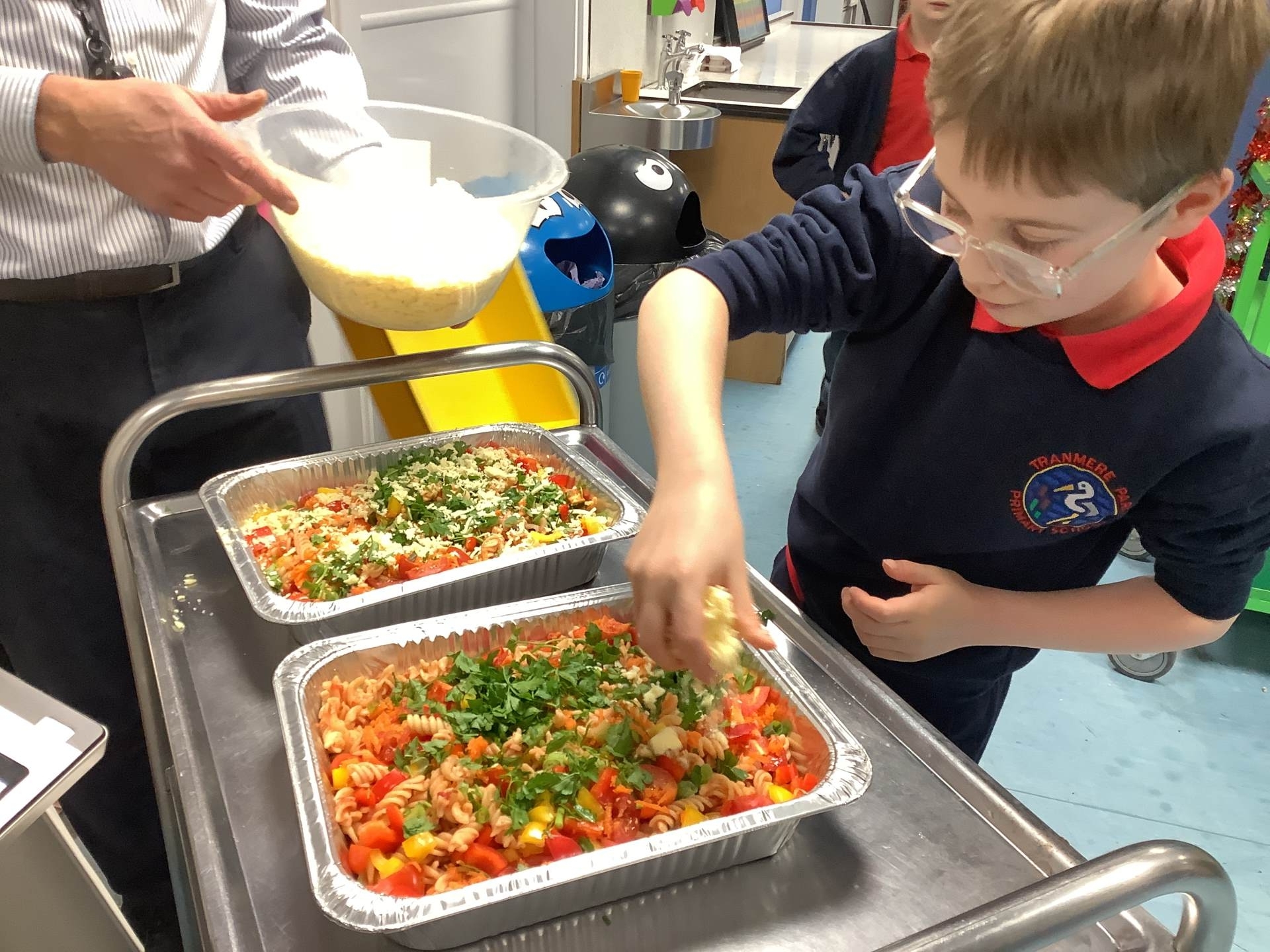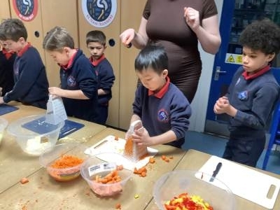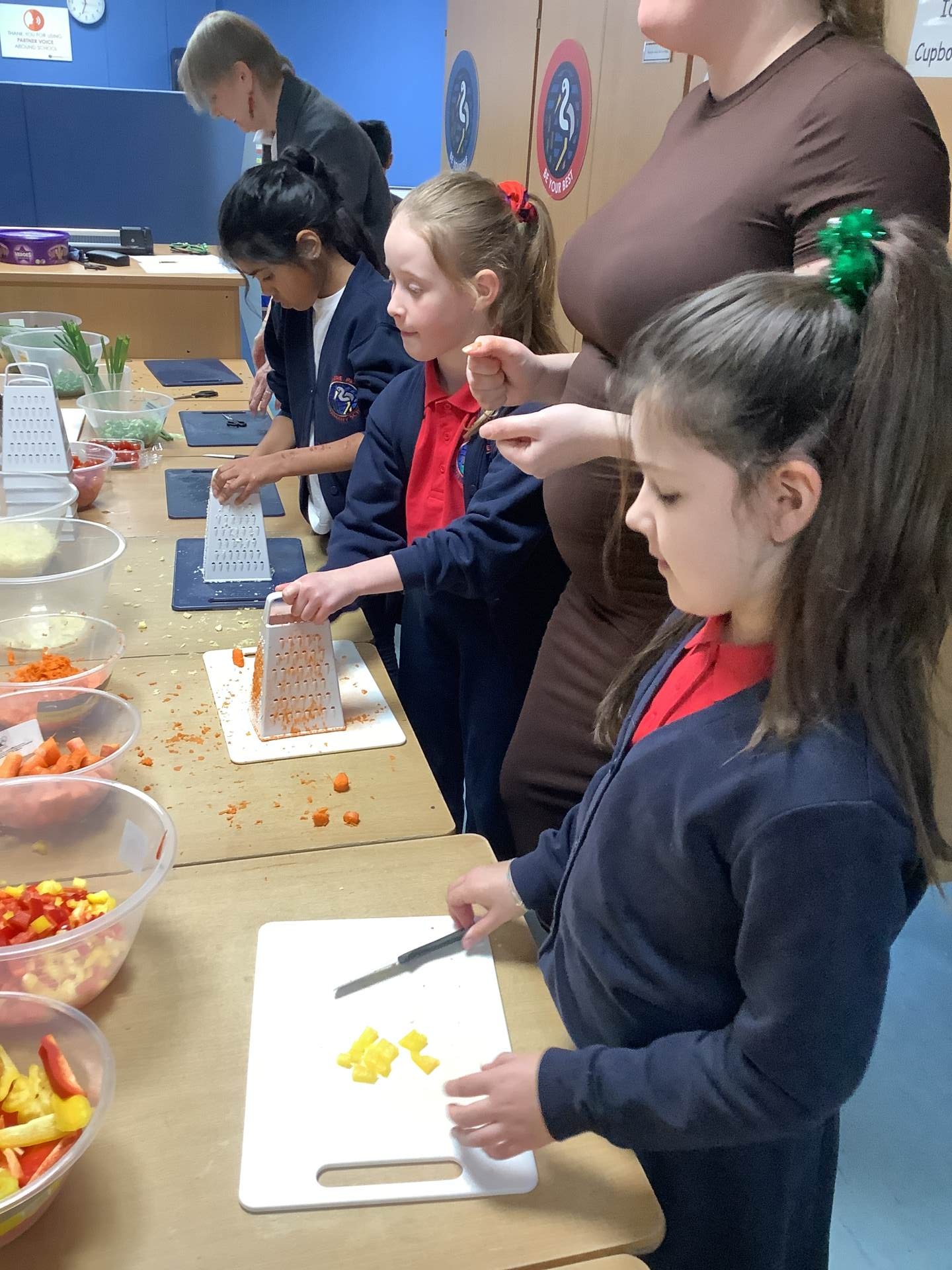 On Wednesday, Lower Key Stage Two made their own healthy pasta bake - it was packed with vegetables! To make it, we boiled pasta, grated cheese and carrot, chopped peppers and tomatoes, snipped spring onions and basil. We then added our own tomato sauce and mixed it all together. Once done, we baked it in the oven and our pasta bake was finished! We loved tasting it at home. Have a look at how much fun we had when we created it!