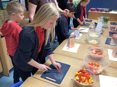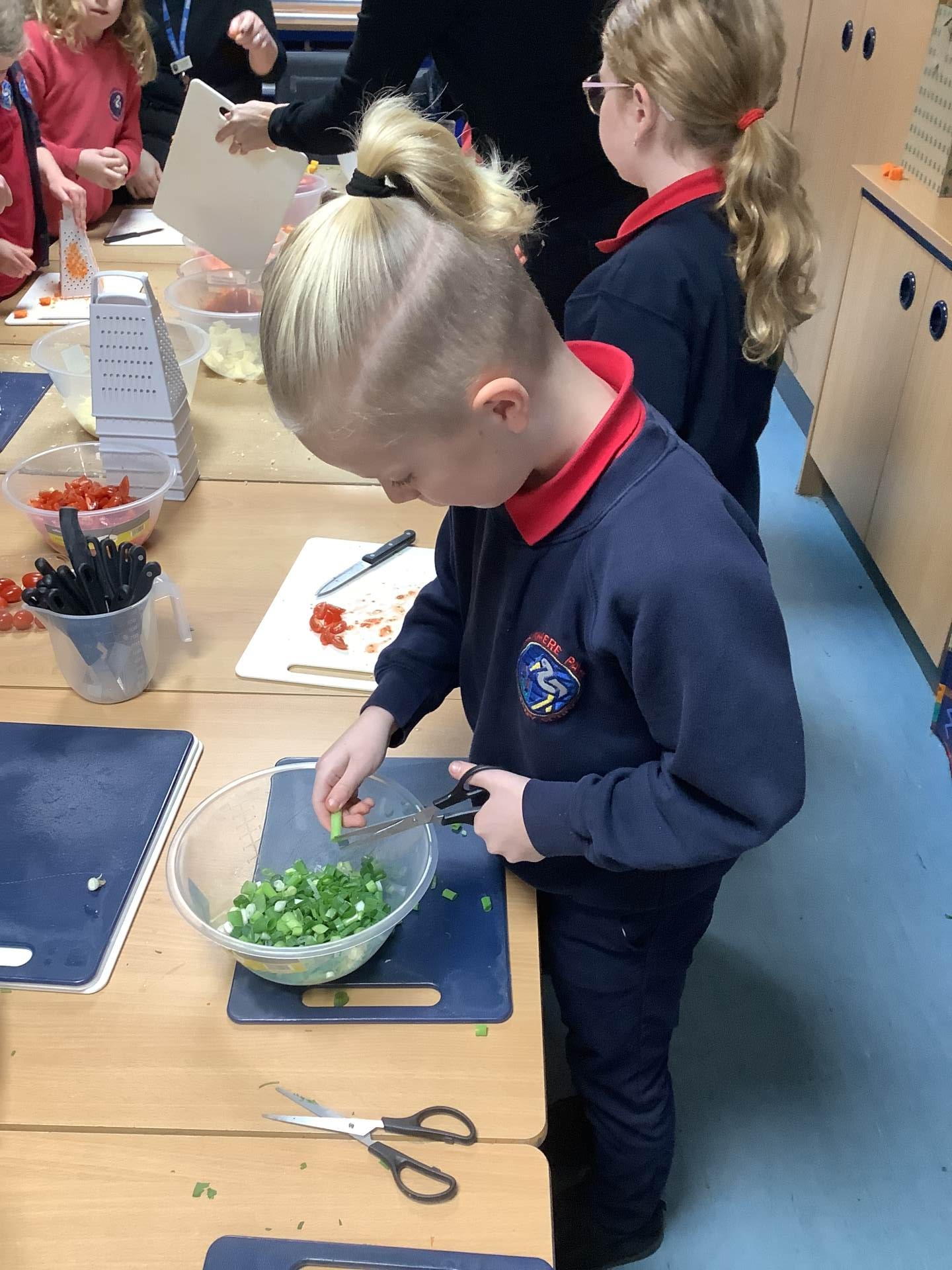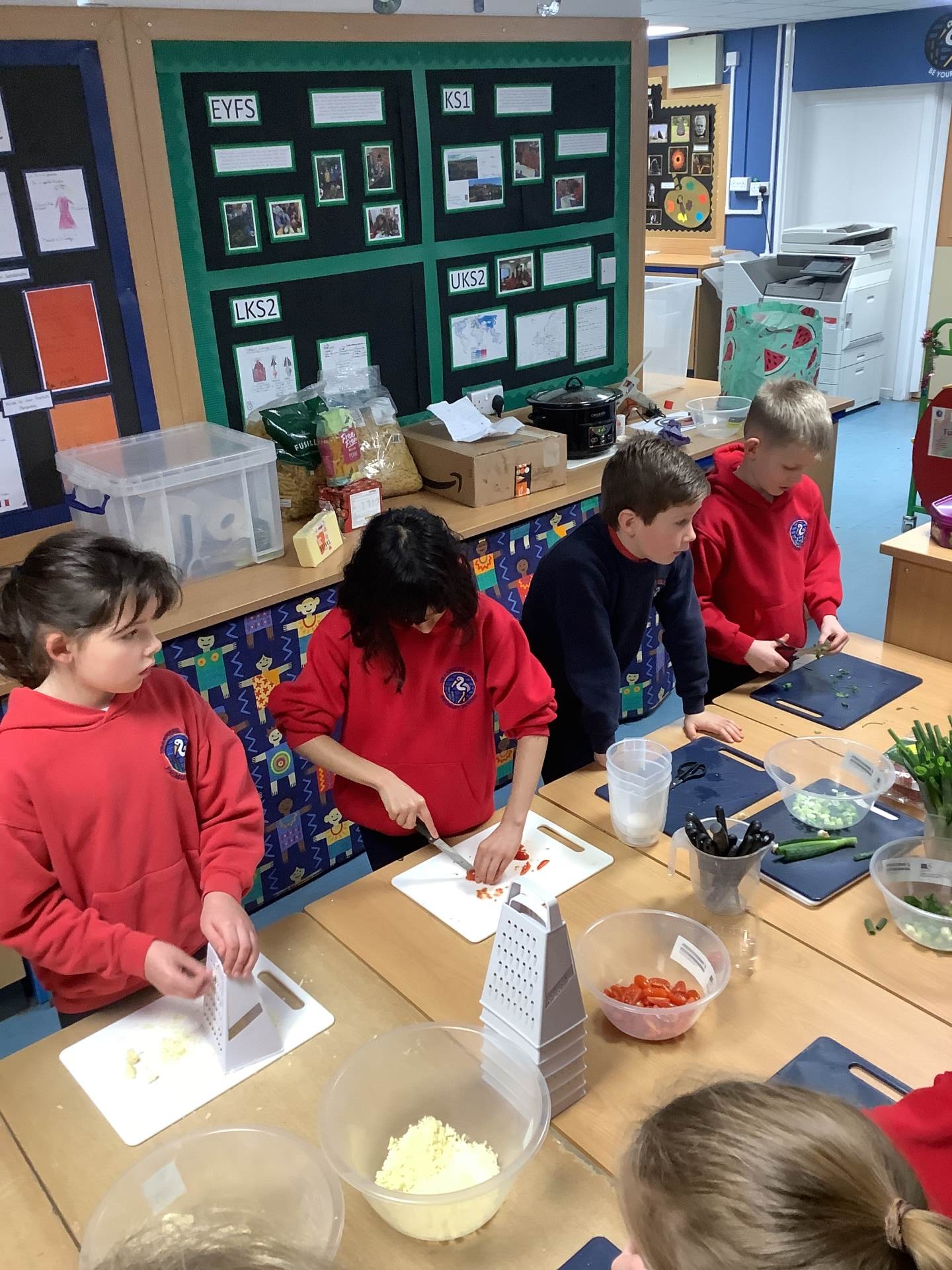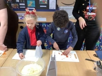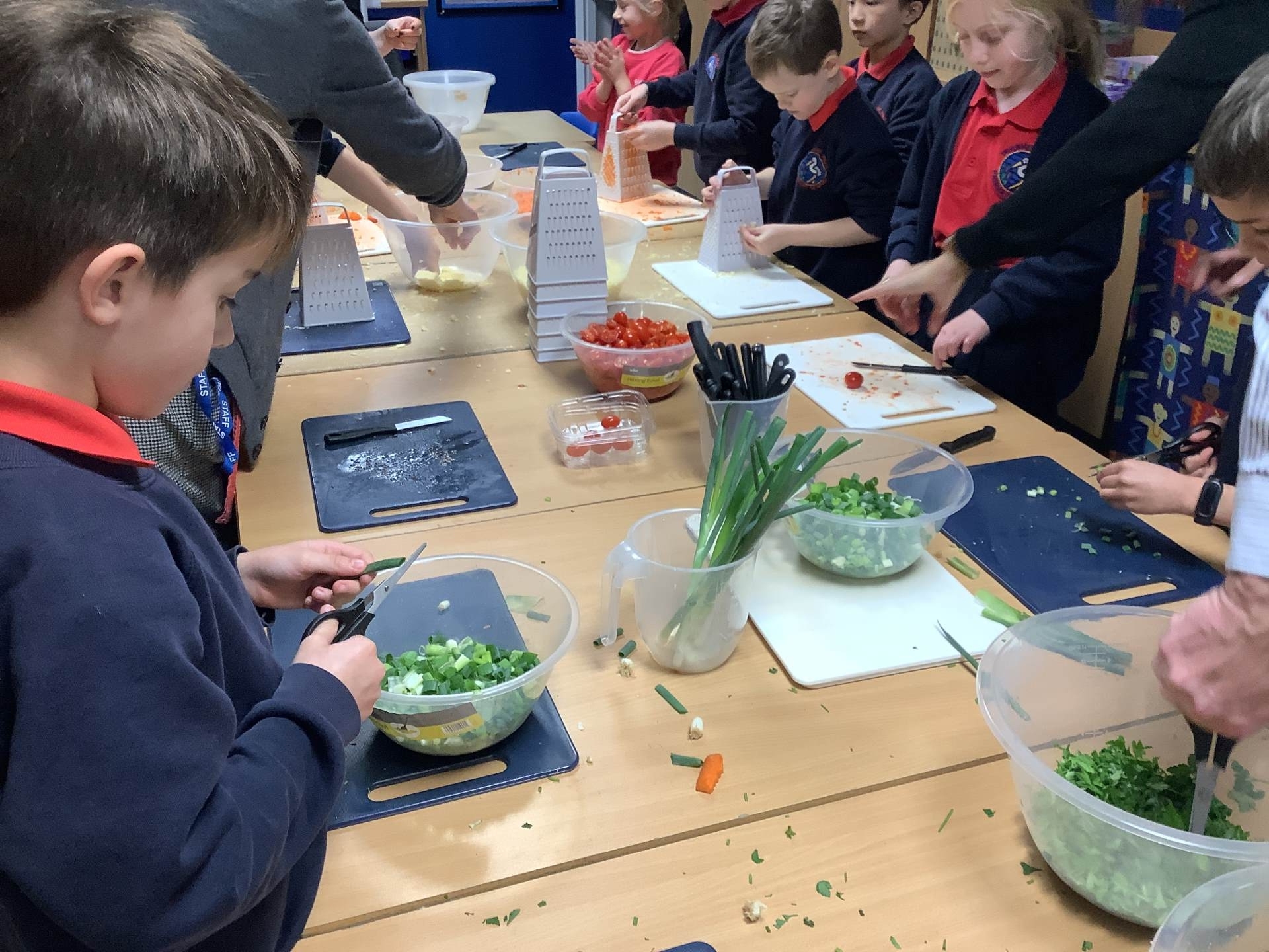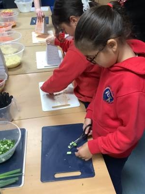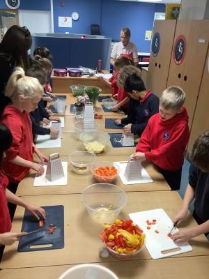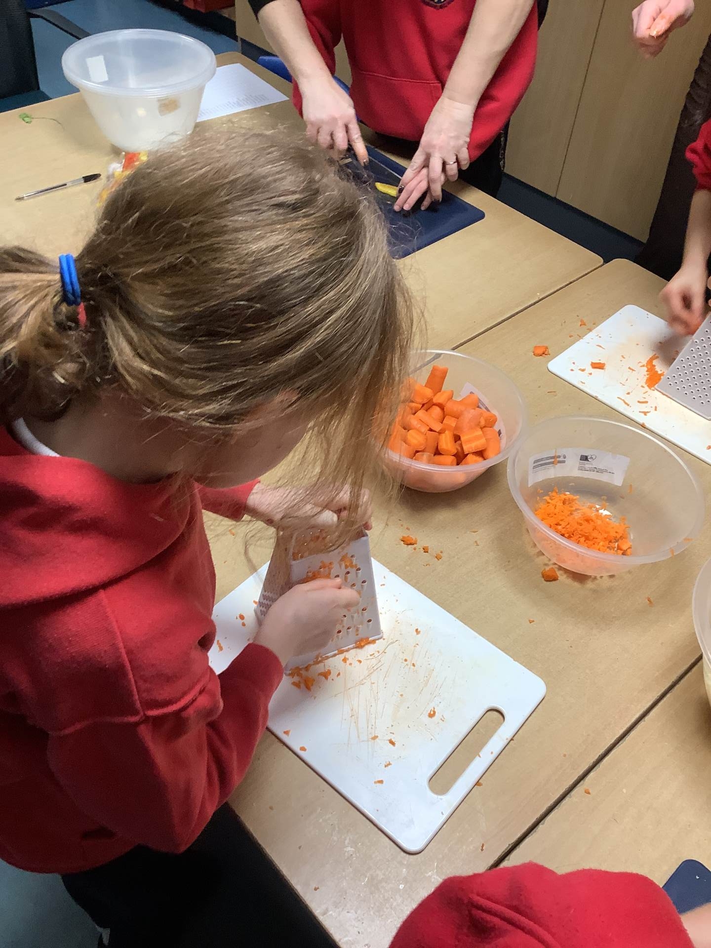 On Wednesday, Lower Key Stage Two made their own healthy pasta bake - it was packed with vegetables! To make it, we boiled pasta, grated cheese and carrot, chopped peppers and tomatoes, snipped spring onions and basil. We then added our own tomato sauce and mixed it all together. Once done, we baked it in the oven and our pasta bake was finished! We loved tasting it at home. Have a look at how much fun we had when we created it!