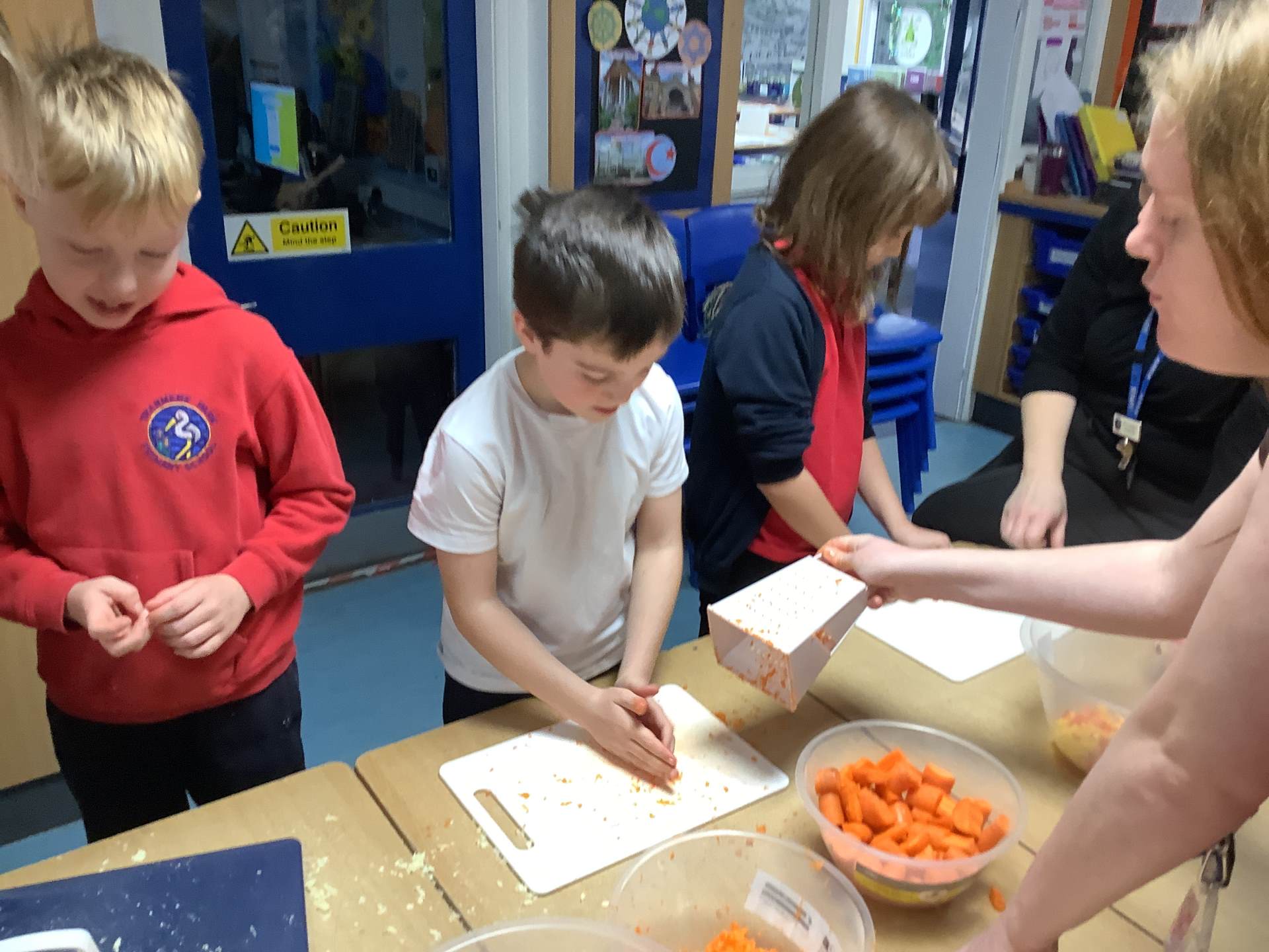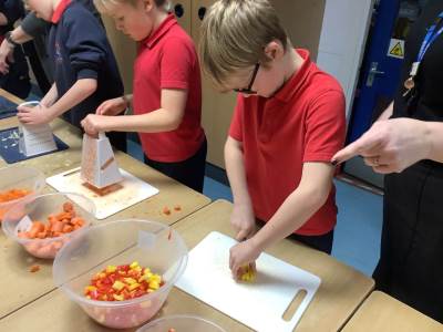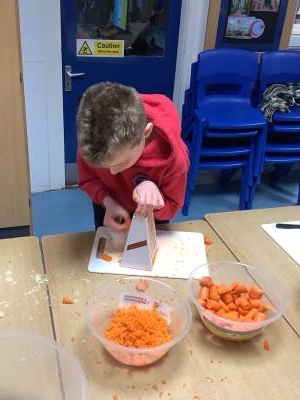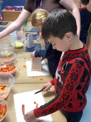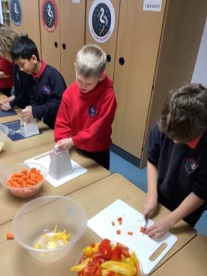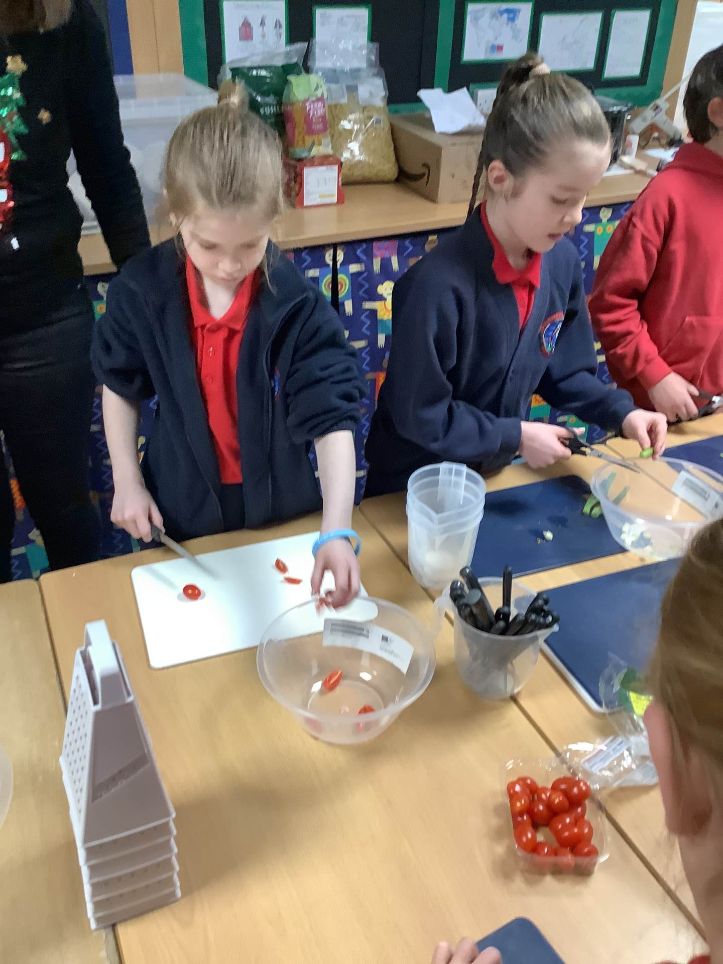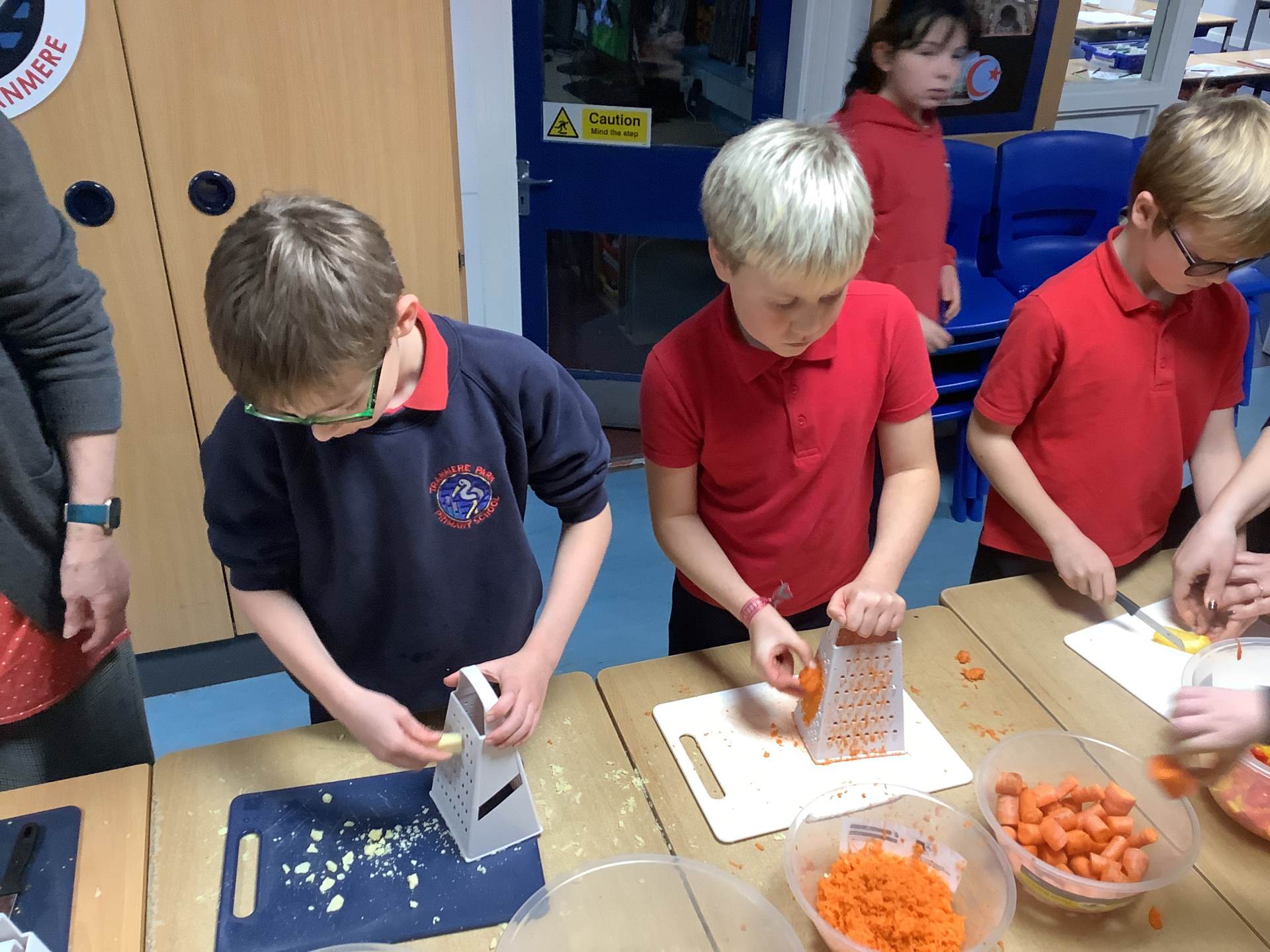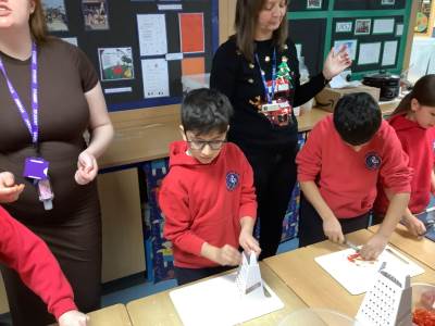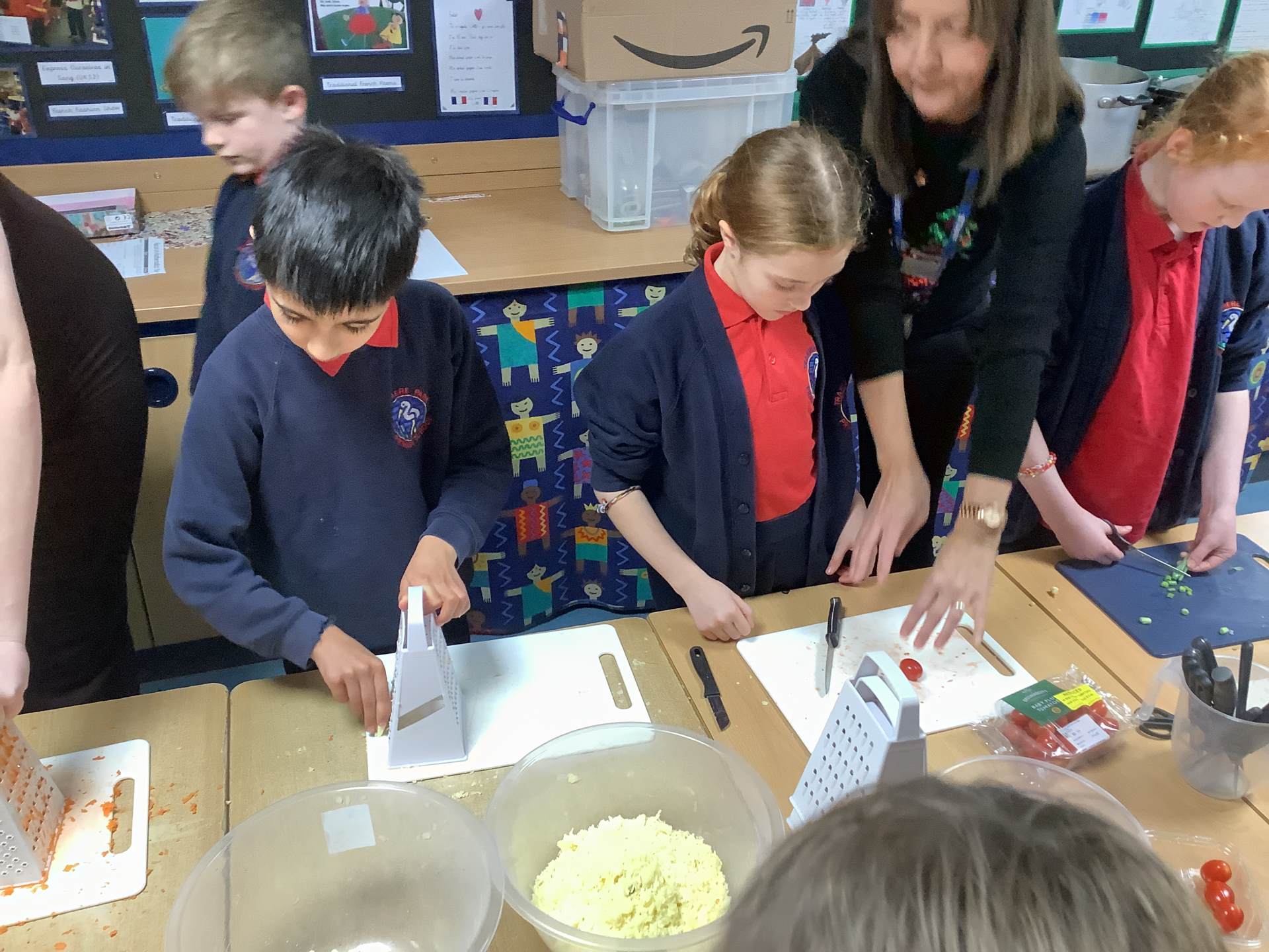 On Wednesday, Lower Key Stage Two made their own healthy pasta bake - it was packed with vegetables! To make it, we boiled pasta, grated cheese and carrot, chopped peppers and tomatoes, snipped spring onions and basil. We then added our own tomato sauce and mixed it all together. Once done, we baked it in the oven and our pasta bake was finished! We loved tasting it at home. Have a look at how much fun we had when we created it!