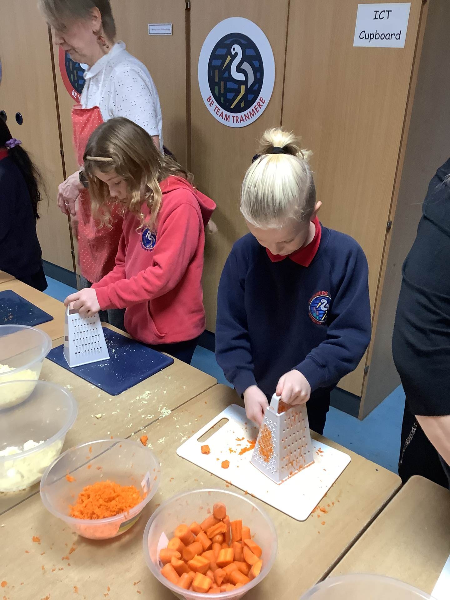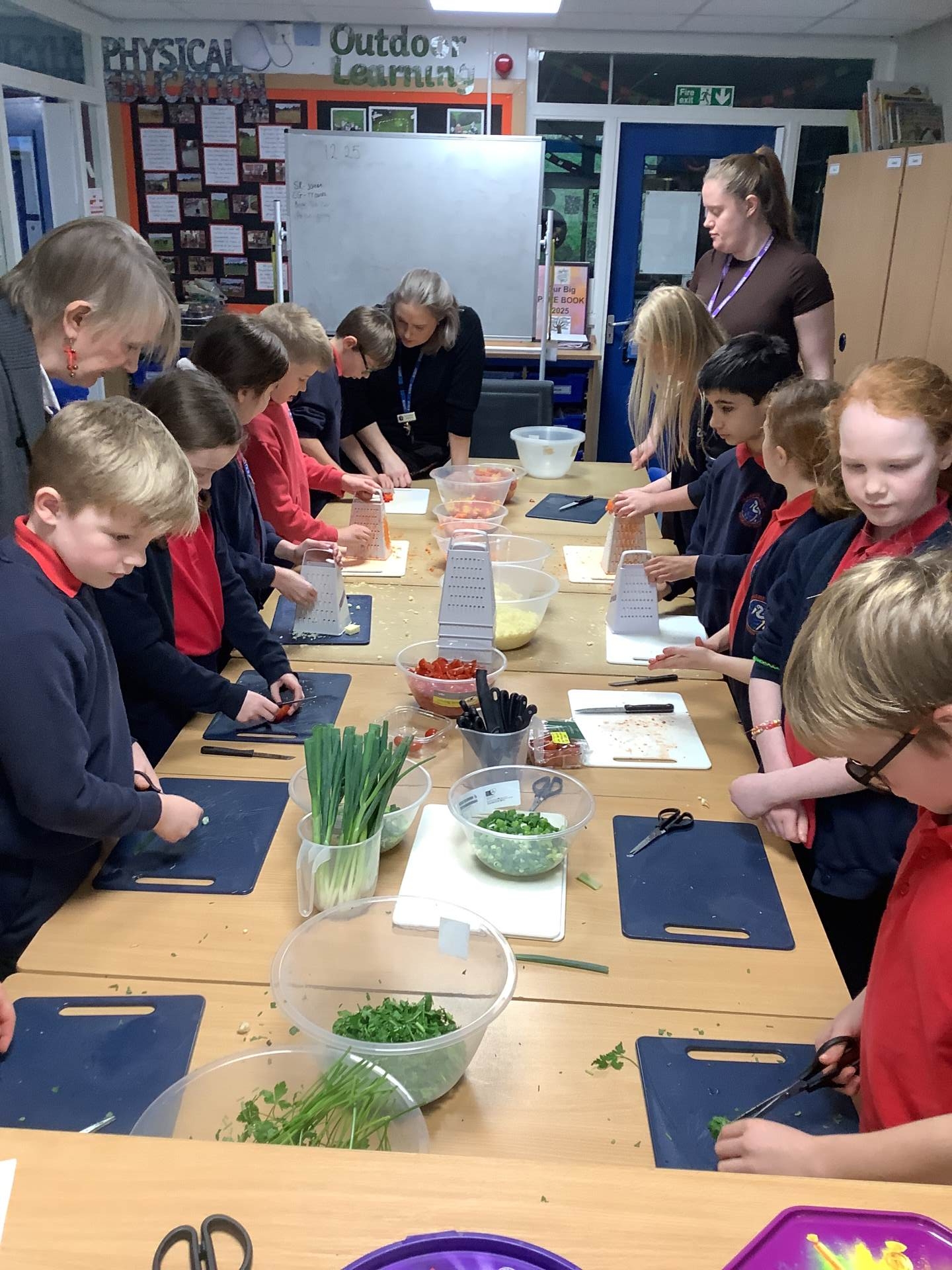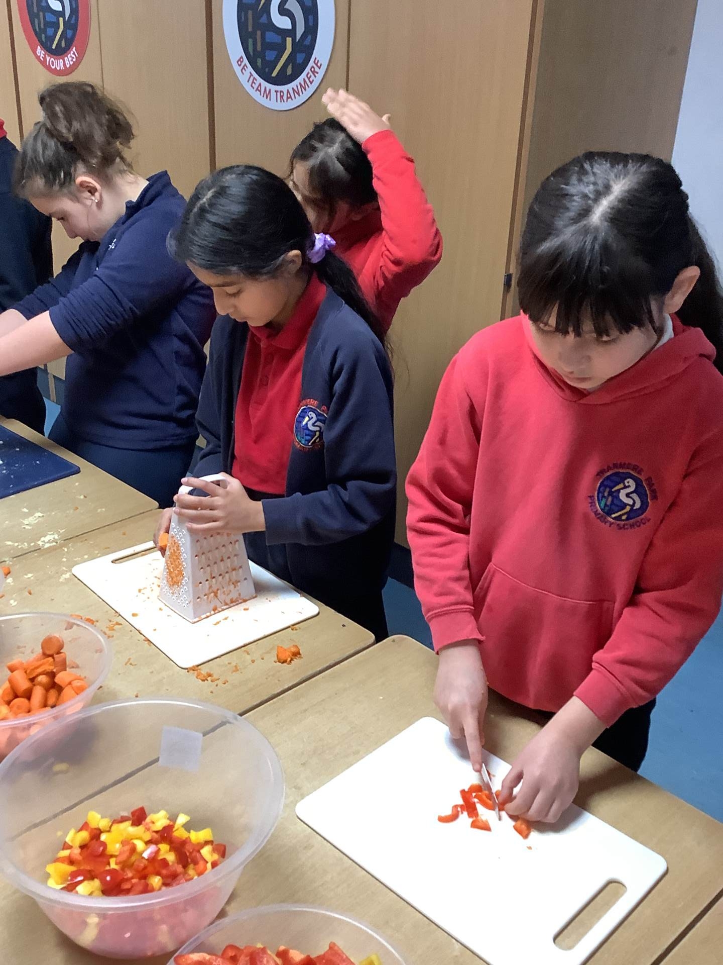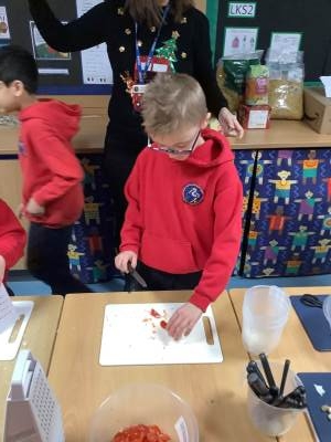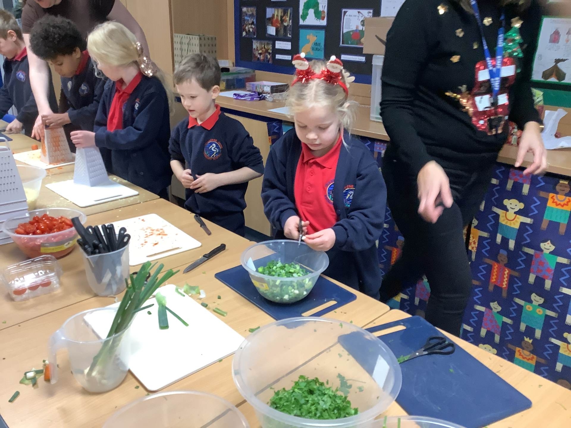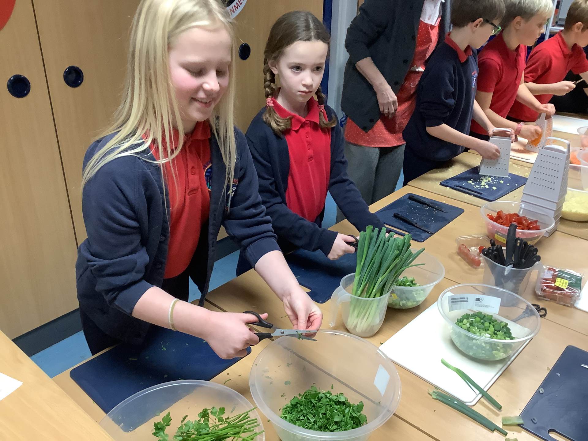 On Wednesday, Lower Key Stage Two made their own healthy pasta bake - it was packed with vegetables! To make it, we boiled pasta, grated cheese and carrot, chopped peppers and tomatoes, snipped spring onions and basil. We then added our own tomato sauce and mixed it all together. Once done, we baked it in the oven and our pasta bake was finished! We loved tasting it at home. Have a look at how much fun we had when we created it!