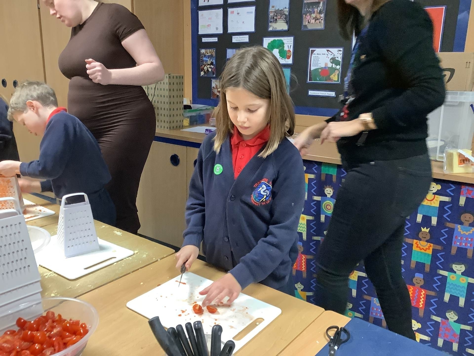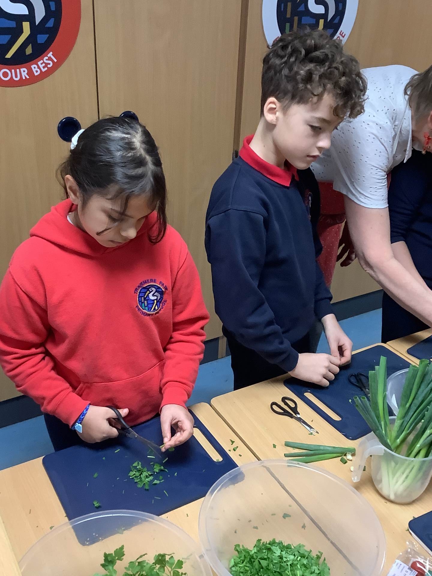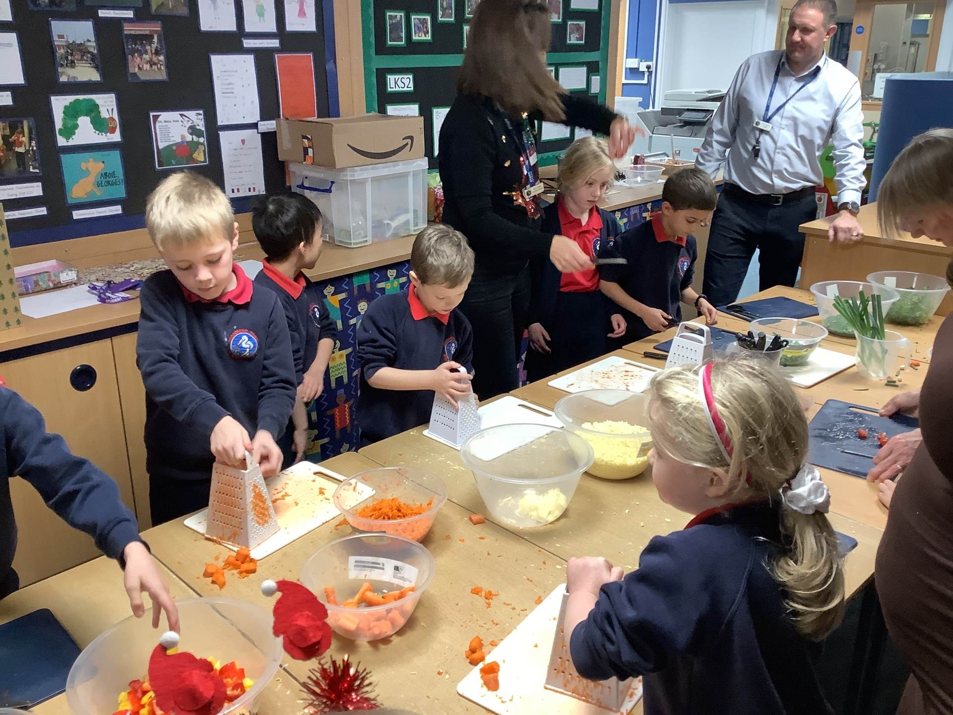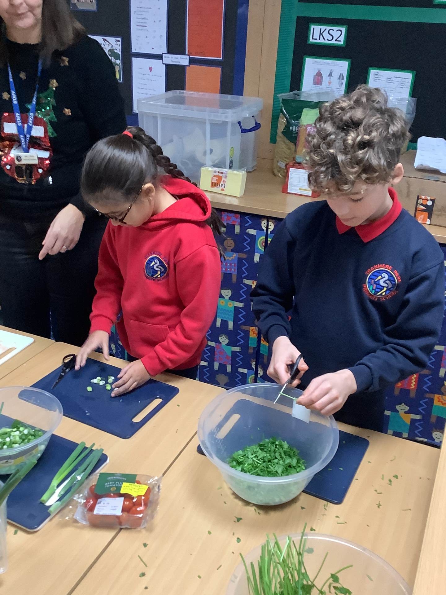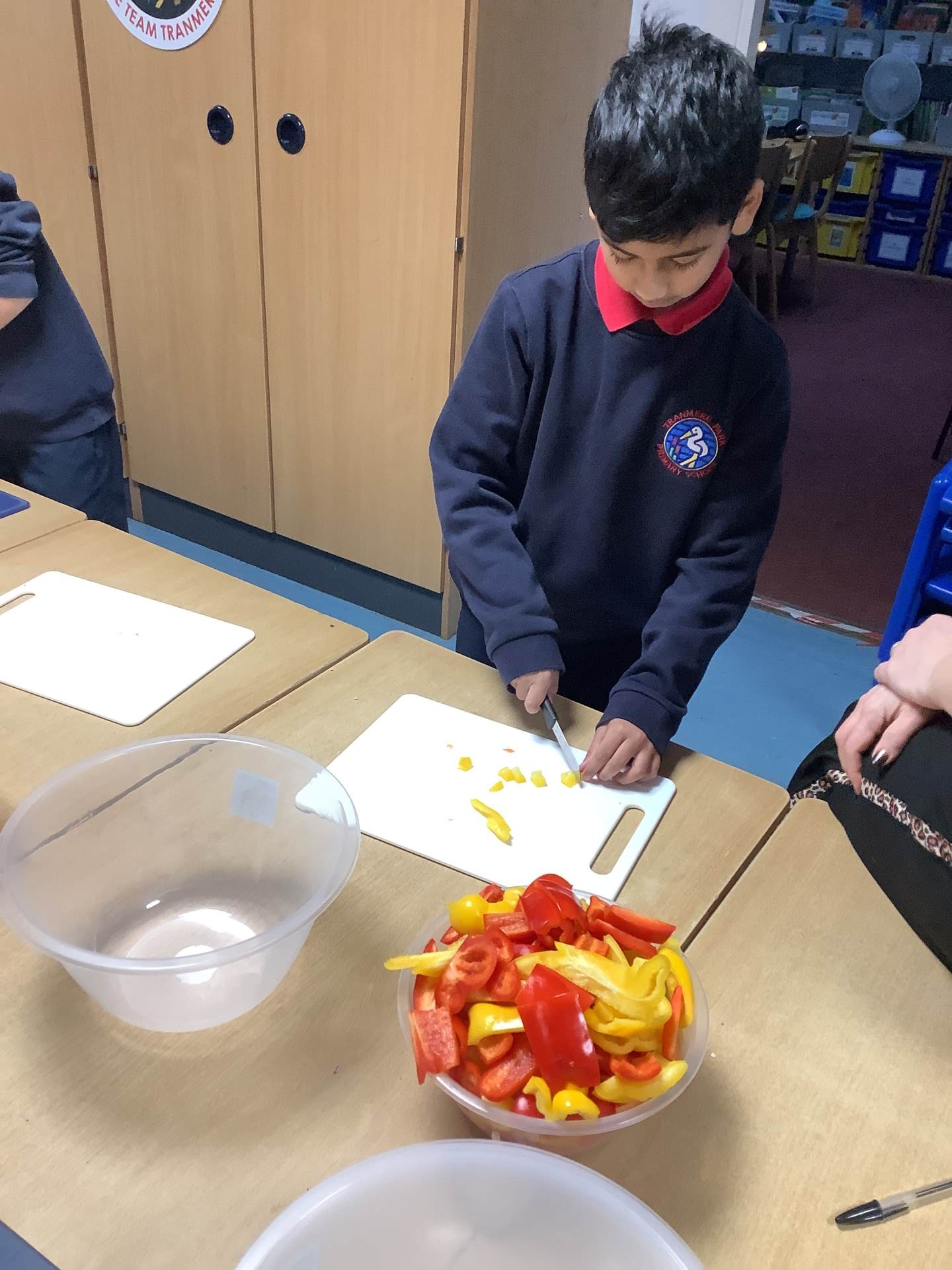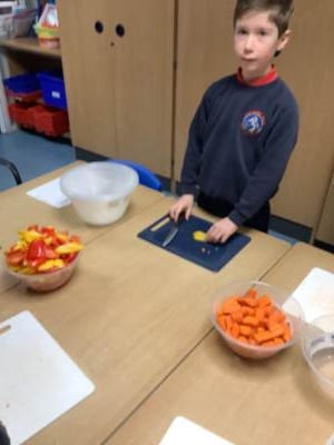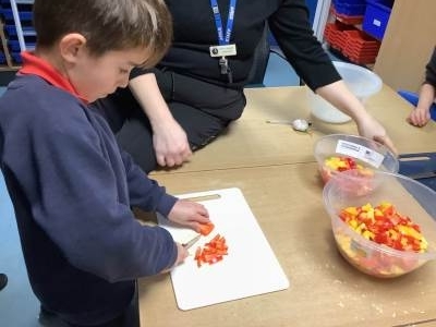 On Wednesday, Lower Key Stage Two made their own healthy pasta bake - it was packed with vegetables! To make it, we boiled pasta, grated cheese and carrot, chopped peppers and tomatoes, snipped spring onions and basil. We then added our own tomato sauce and mixed it all together. Once done, we baked it in the oven and our pasta bake was finished! We loved tasting it at home. Have a look at how much fun we had when we created it!