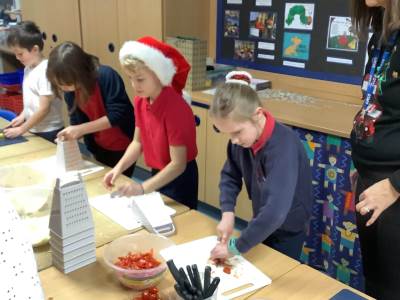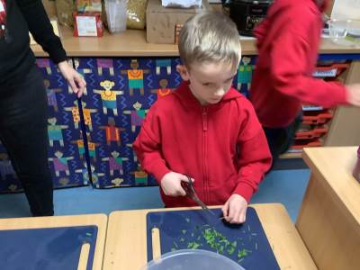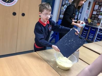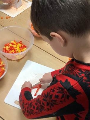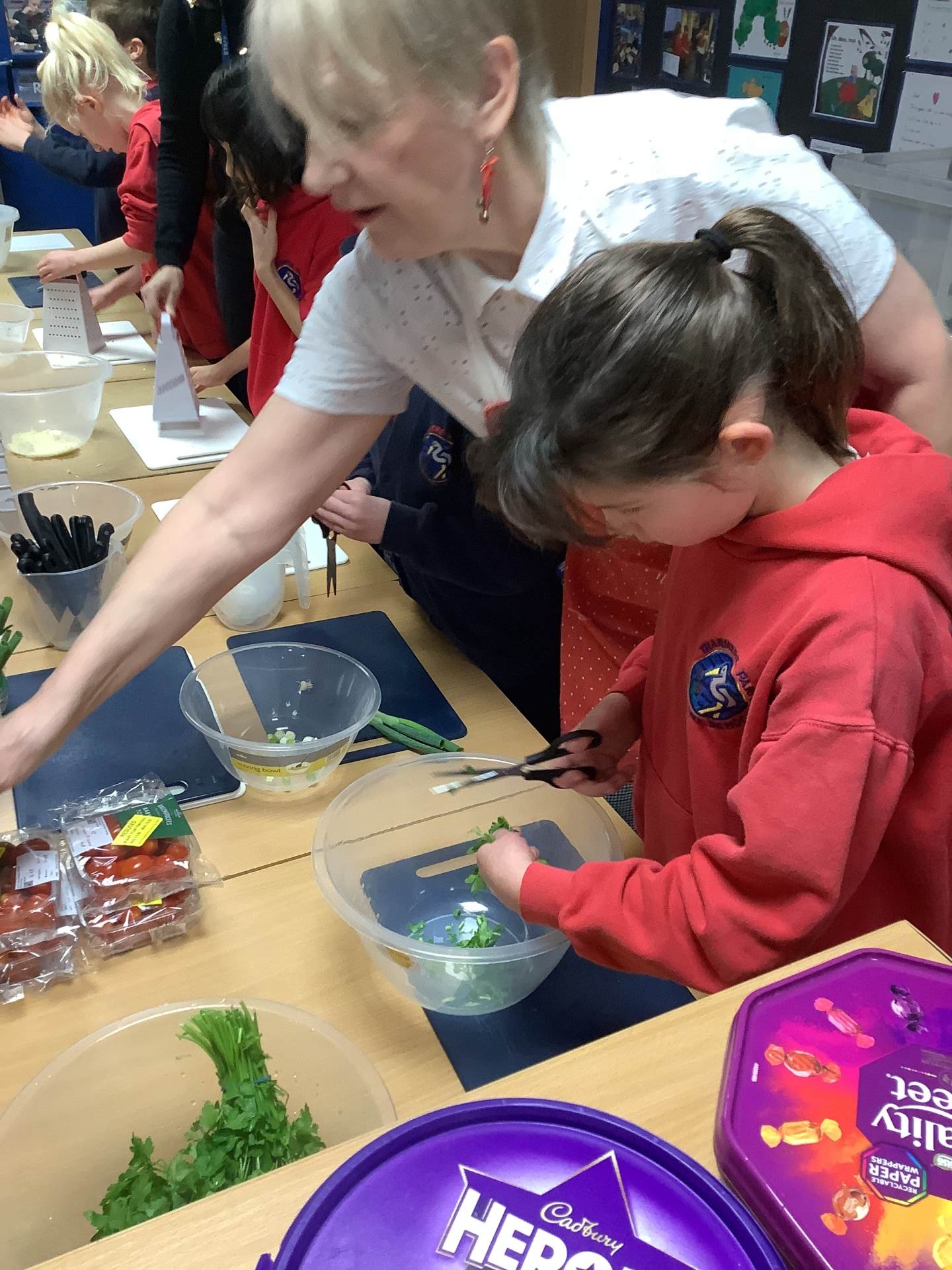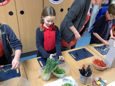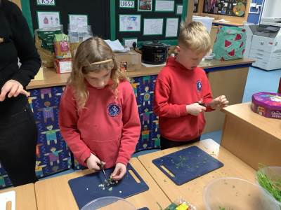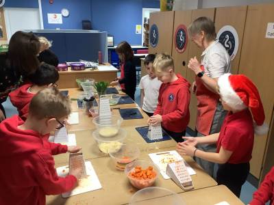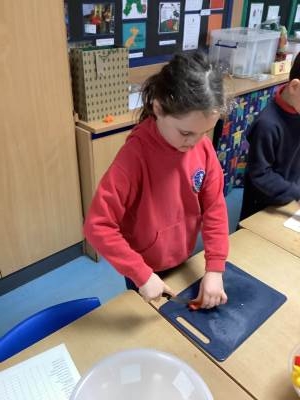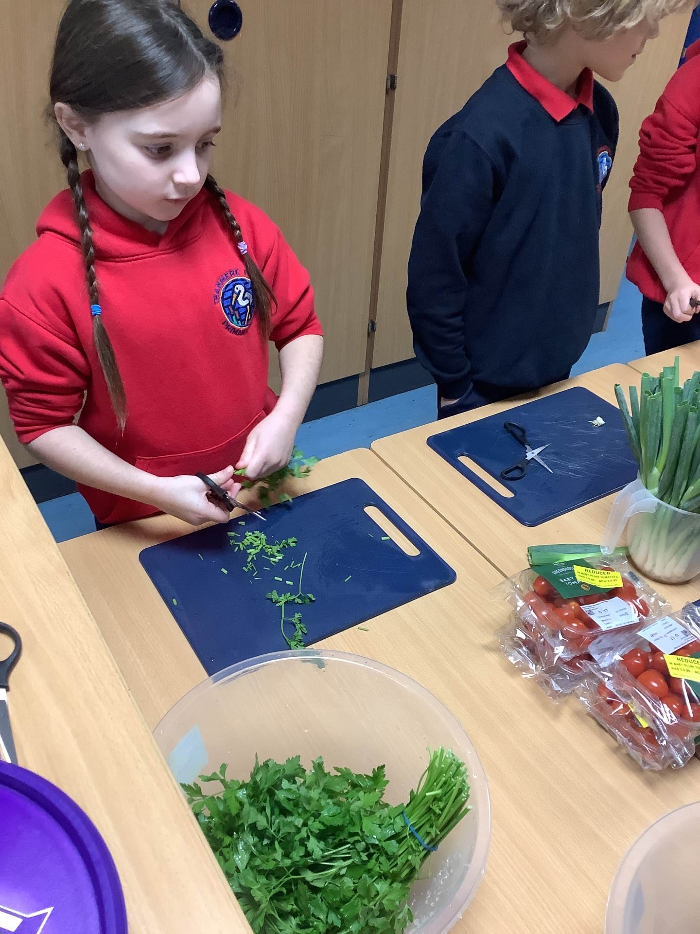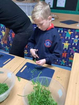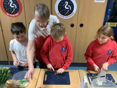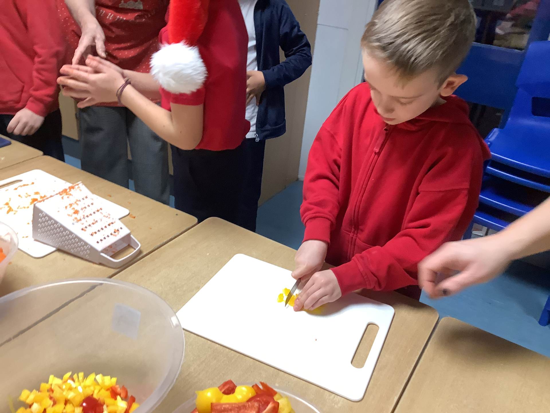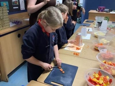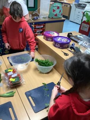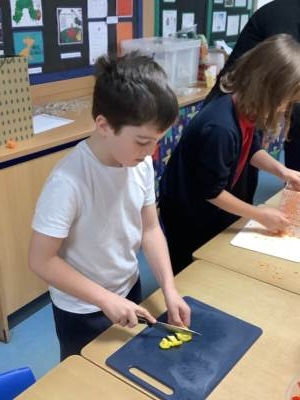 On Wednesday, Lower Key Stage Two made their own healthy pasta bake - it was packed with vegetables! To make it, we boiled pasta, grated cheese and carrot, chopped peppers and tomatoes, snipped spring onions and basil. We then added our own tomato sauce and mixed it all together. Once done, we baked it in the oven and our pasta bake was finished! We loved tasting it at home. Have a look at how much fun we had when we created it!