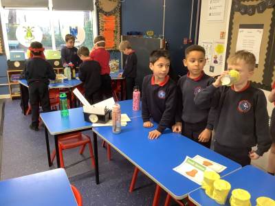As part of our science learning, we discussed what we already knew about the 5 senses and identified which body part we use for each sense. We then completed an investigation to see how good our senses were. Which is tastier - chocolate or lemon?! See if you can work out our answers by looking at our photos below!