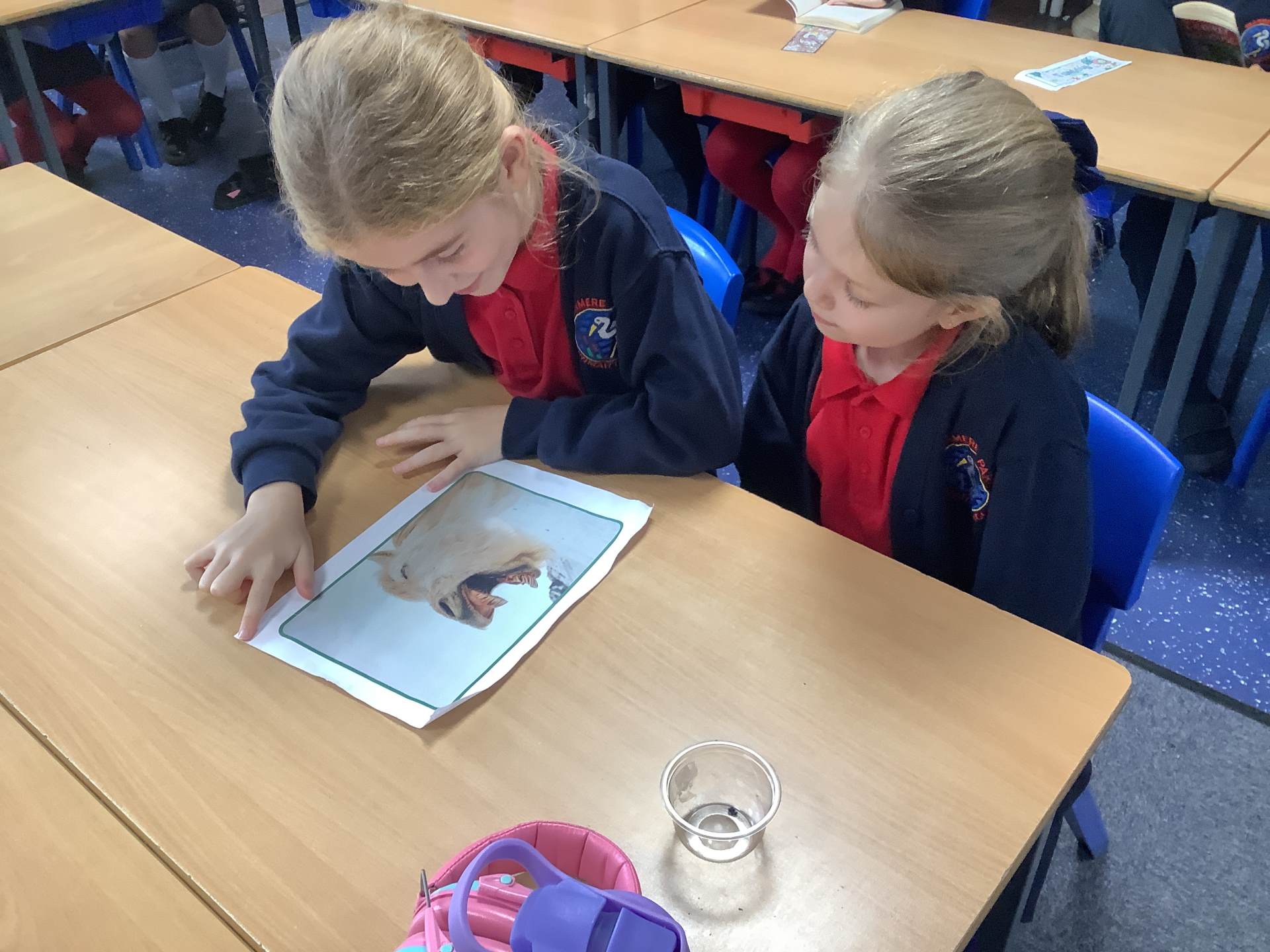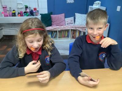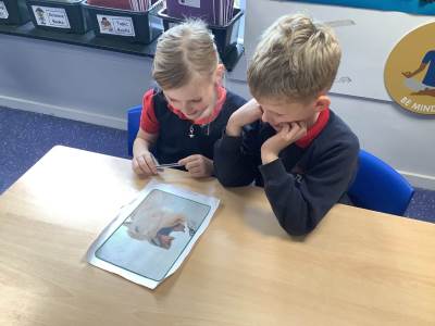 Today, the children looked at the four types of teeth; incisors, canines, molars and premolars. They spent time looking in mirrors to identify these teeth and how they use them to chew different foods. They also looked at different animals’ teeth and why they were different depending on their diet.