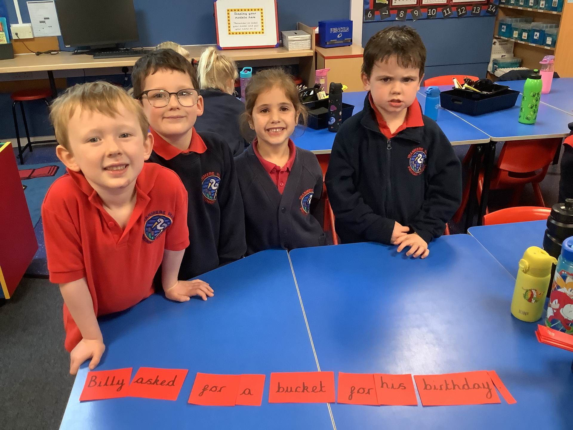 In writing, our lessons are focused around the story of Billy’s Bucket. Today, we revisited capital letters and full stops and focused on ensuring that a sentence makes sense. We fixed some examples of muddled sentences altogether before the children had a go in small groups. By the end of the lesson, we all understood that a sentence needs a capital letter, full stop and HAS to make sense! Eagles have now promised that they will not forget capital letters and full stops in their writing.😁