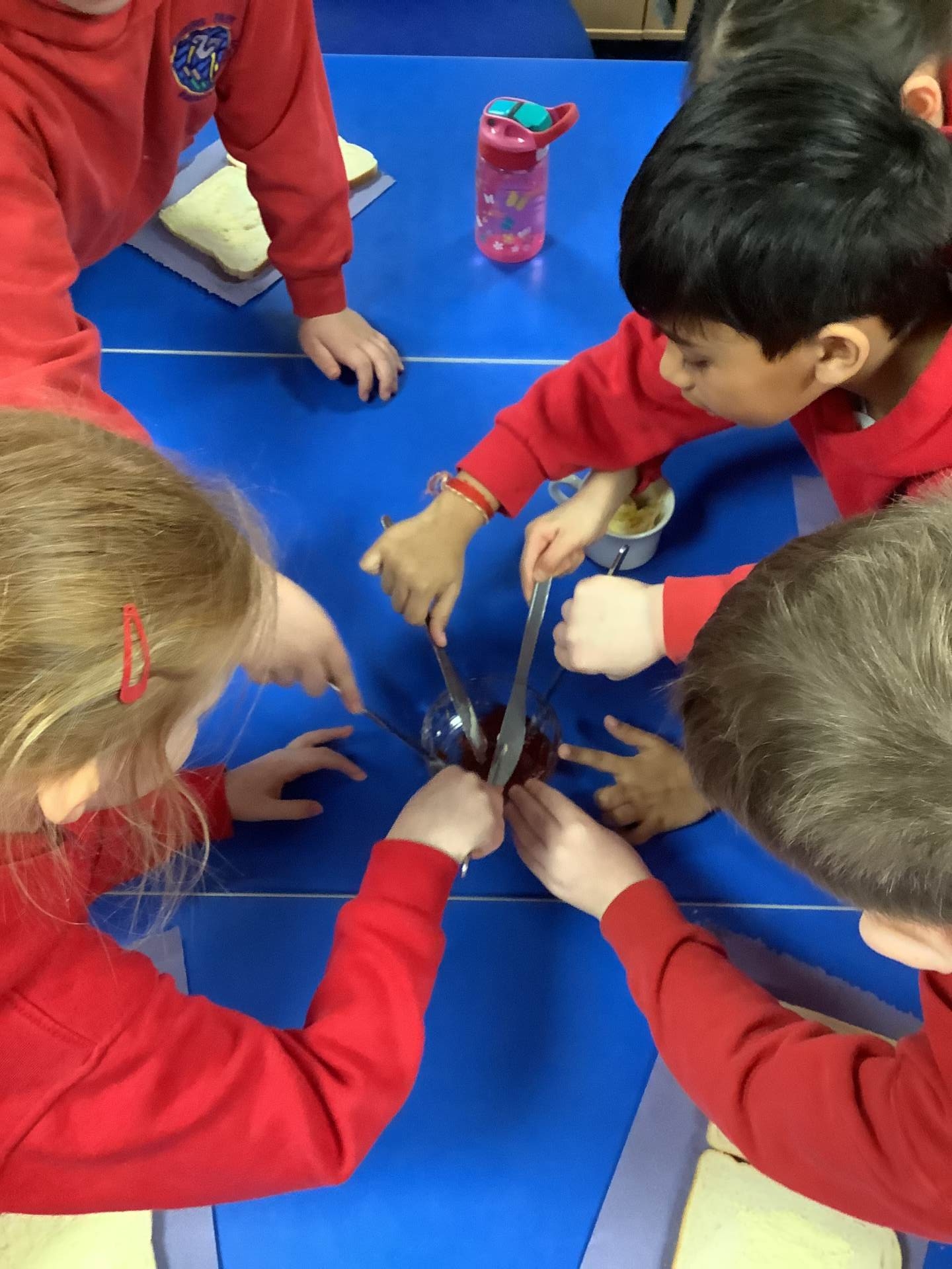 They all did a fantastic job of making their jam sandwiches, and an even better job of eating them!