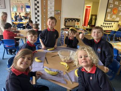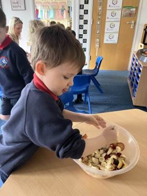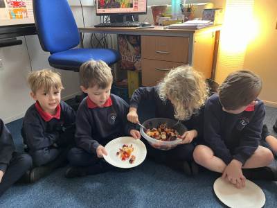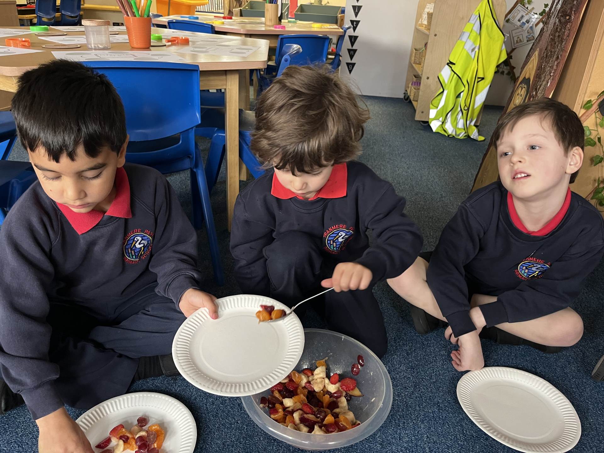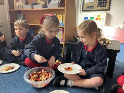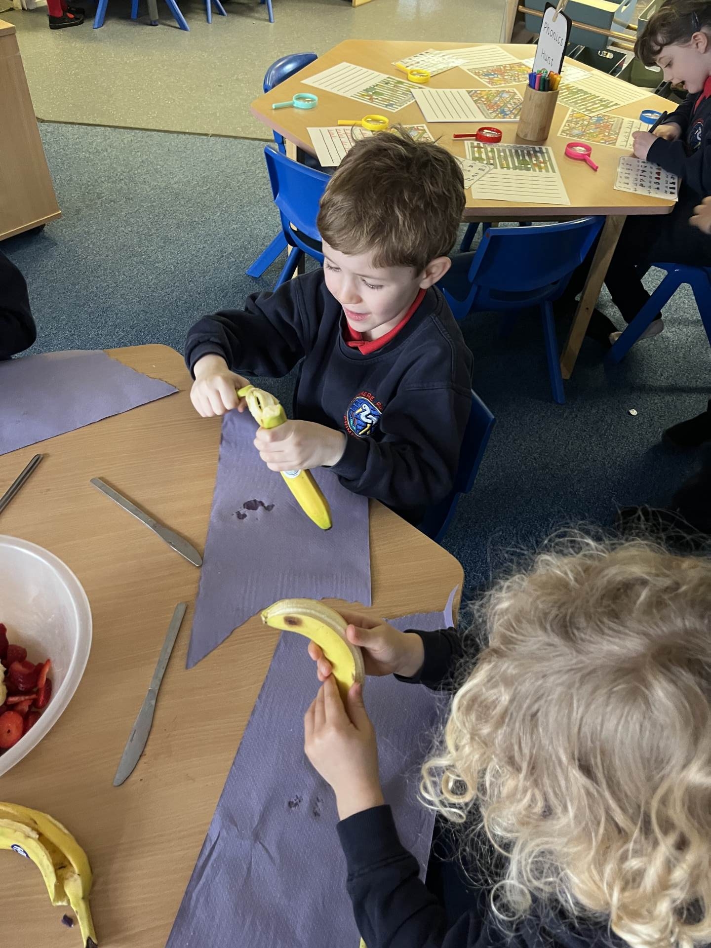 While peeling and chopping the fruit, we were shown safe techniques and tried really hard to focus and practise these skills.