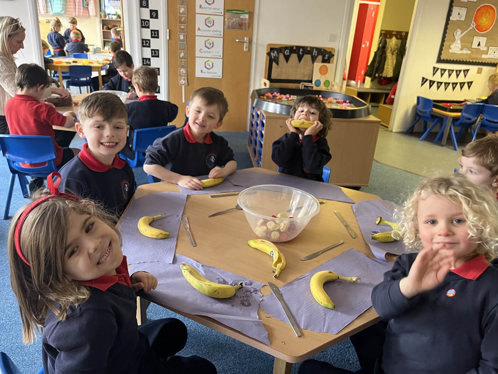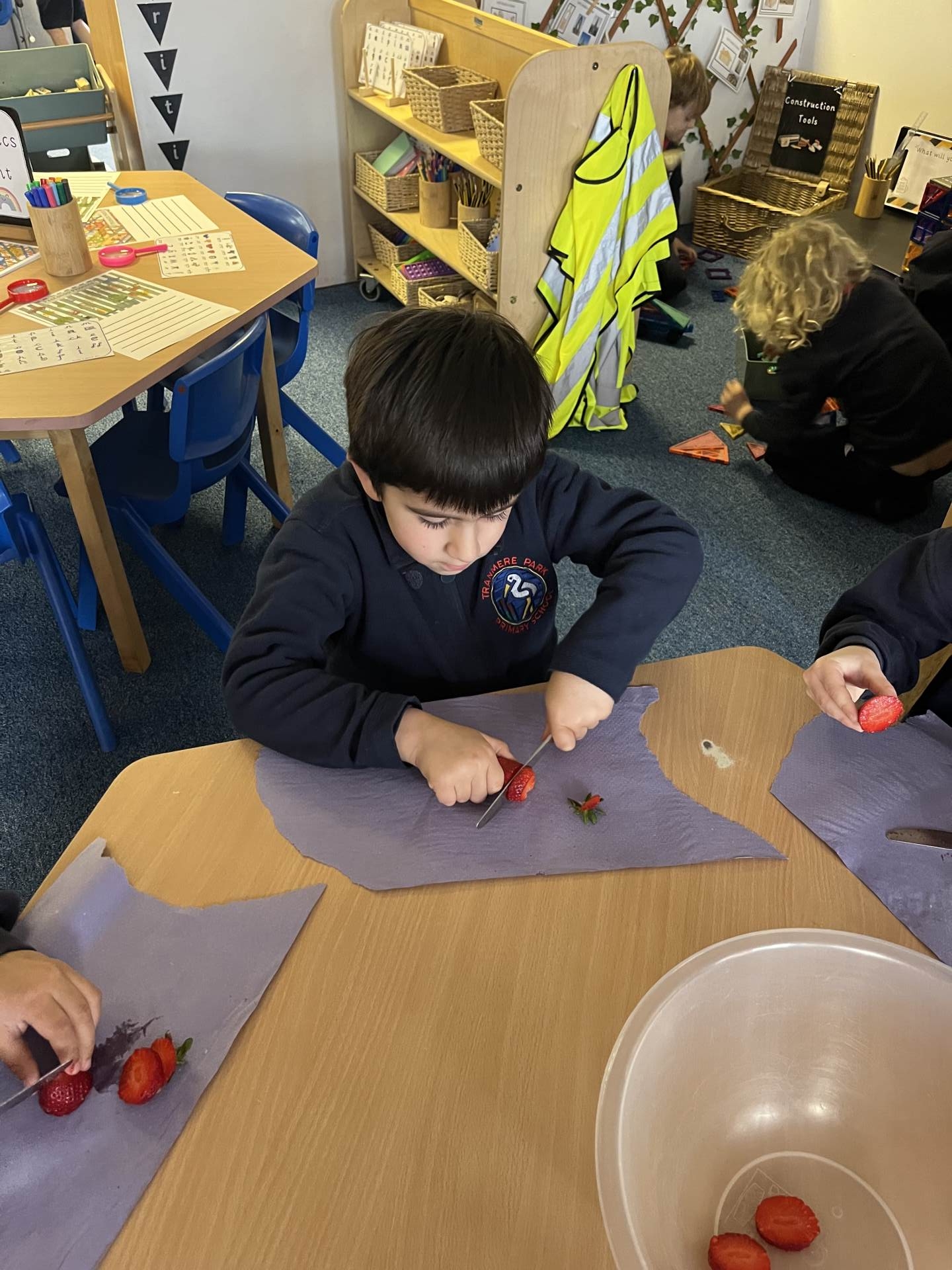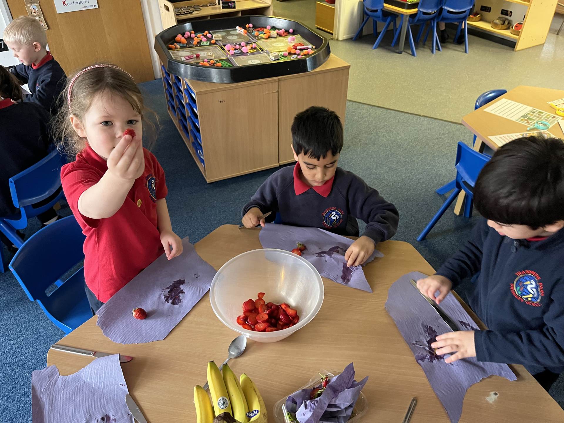 While peeling and chopping the fruit, we were shown safe techniques and tried really hard to focus and practise these skills.