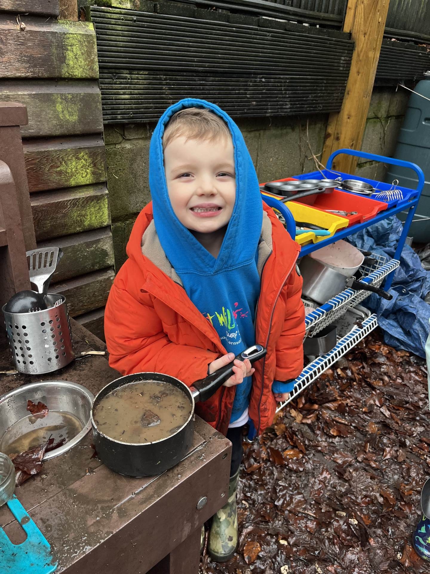 On Muddy Puddle Day, Puffins, Kingfishers and Doves participated in some outdoor learning. The children learned some new skills and had to put their teamwork ability to the test. The activities included: using a flint and steel to make a fire, using a bowline knot to make a hammock and measure trees to work out its age (circumference divided by growth rate). The children had a fantastic day!