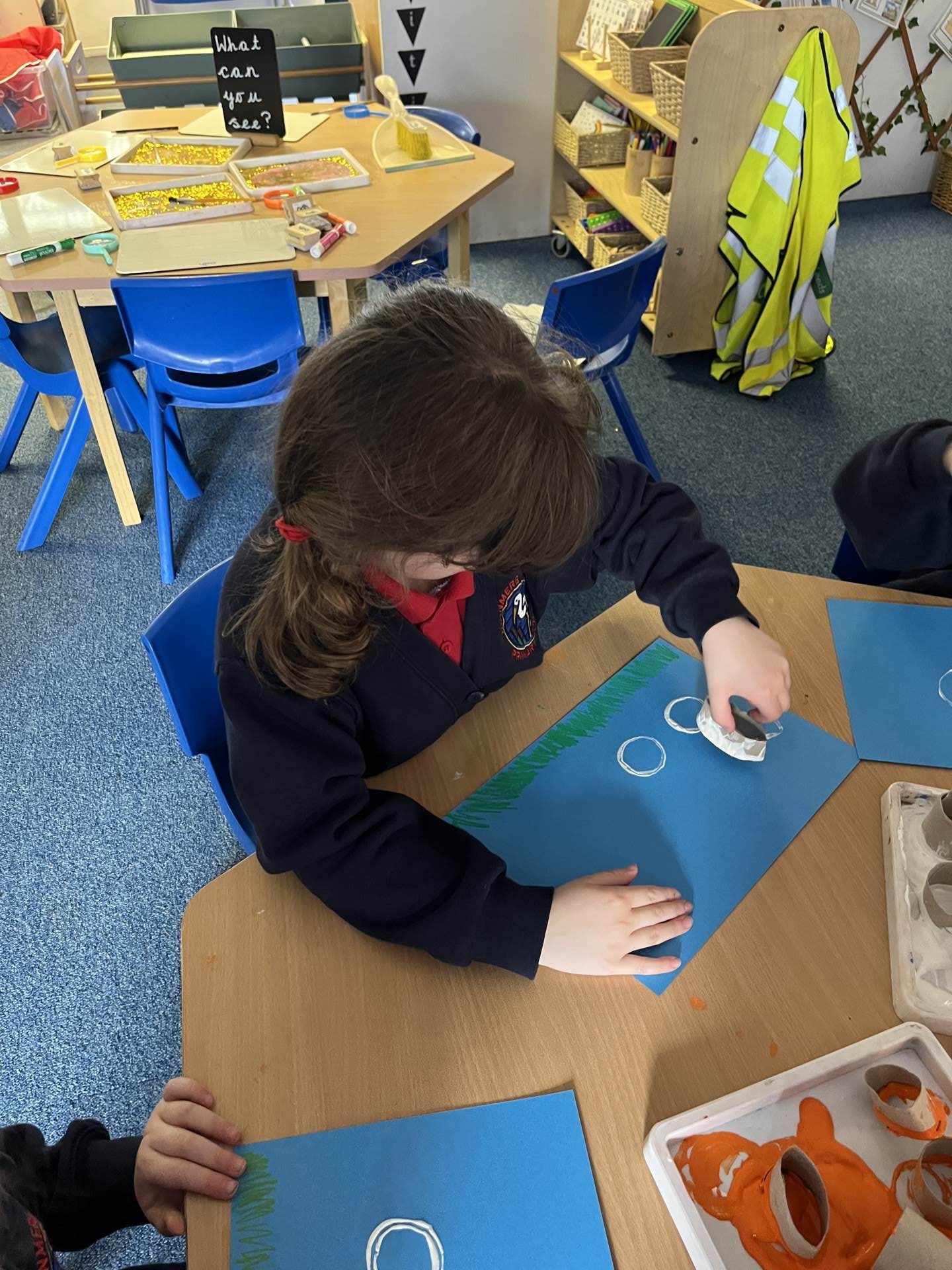 Reception decorated footprints with materials they found in and outside of school.