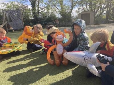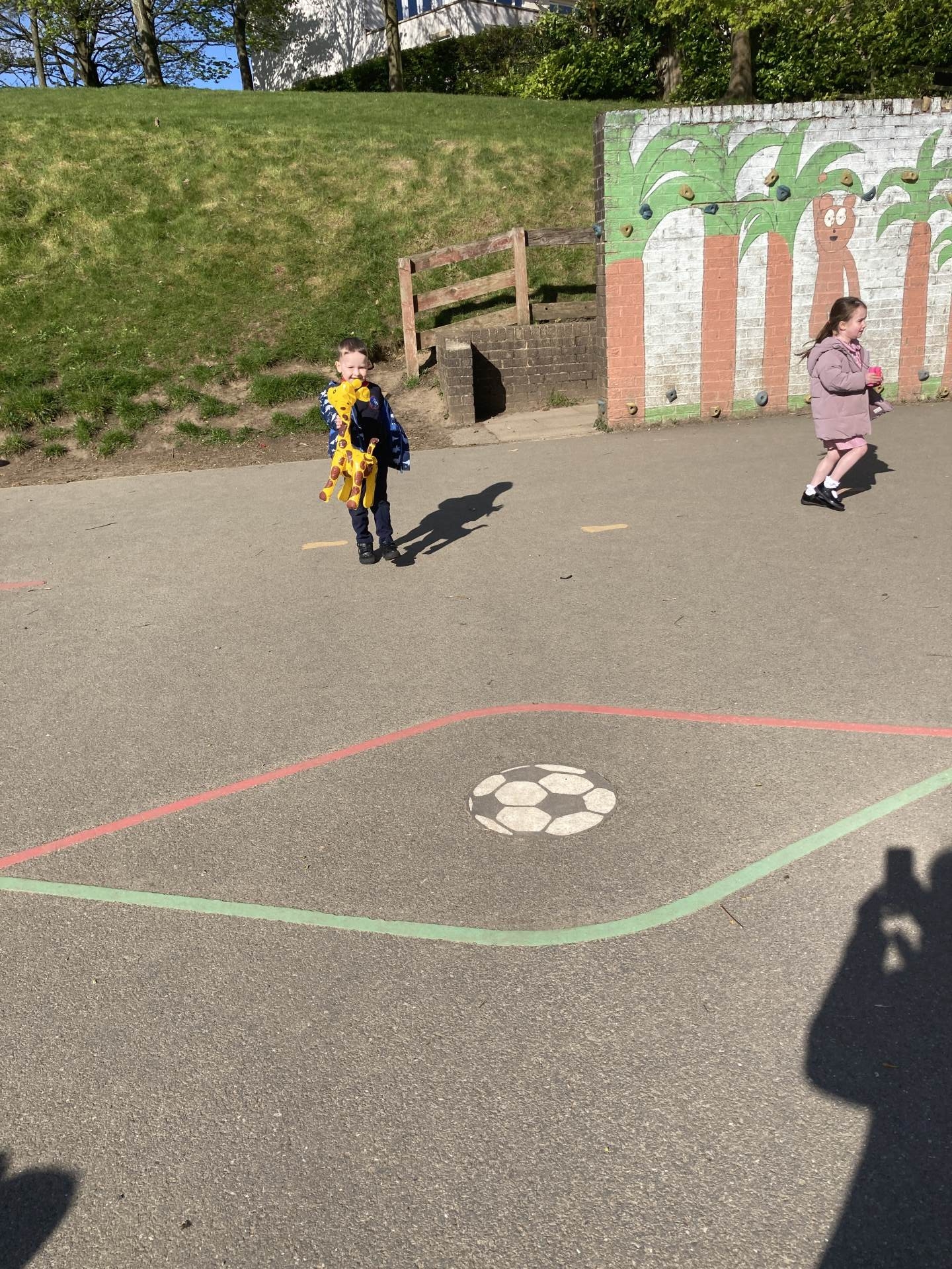 When we arrived, we couldn’t believe our eyes — some very cheeky animals had taken over our playground! The children were full of excitement as they searched for and spotted the animals!