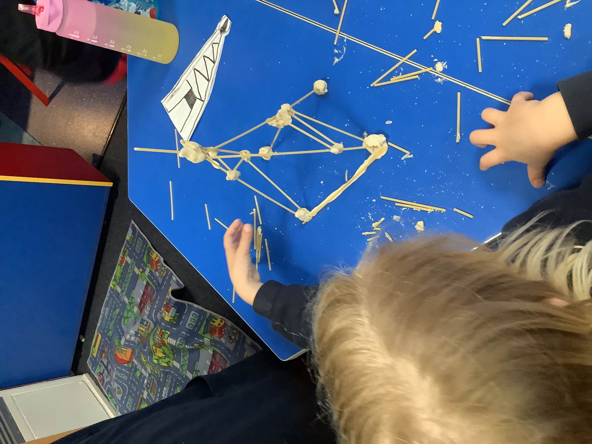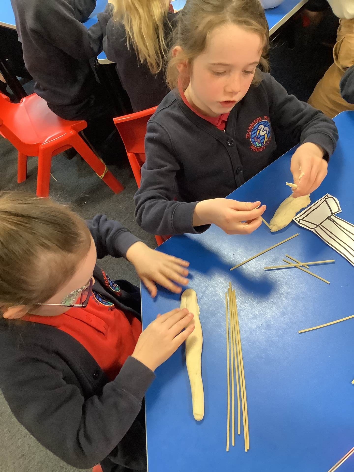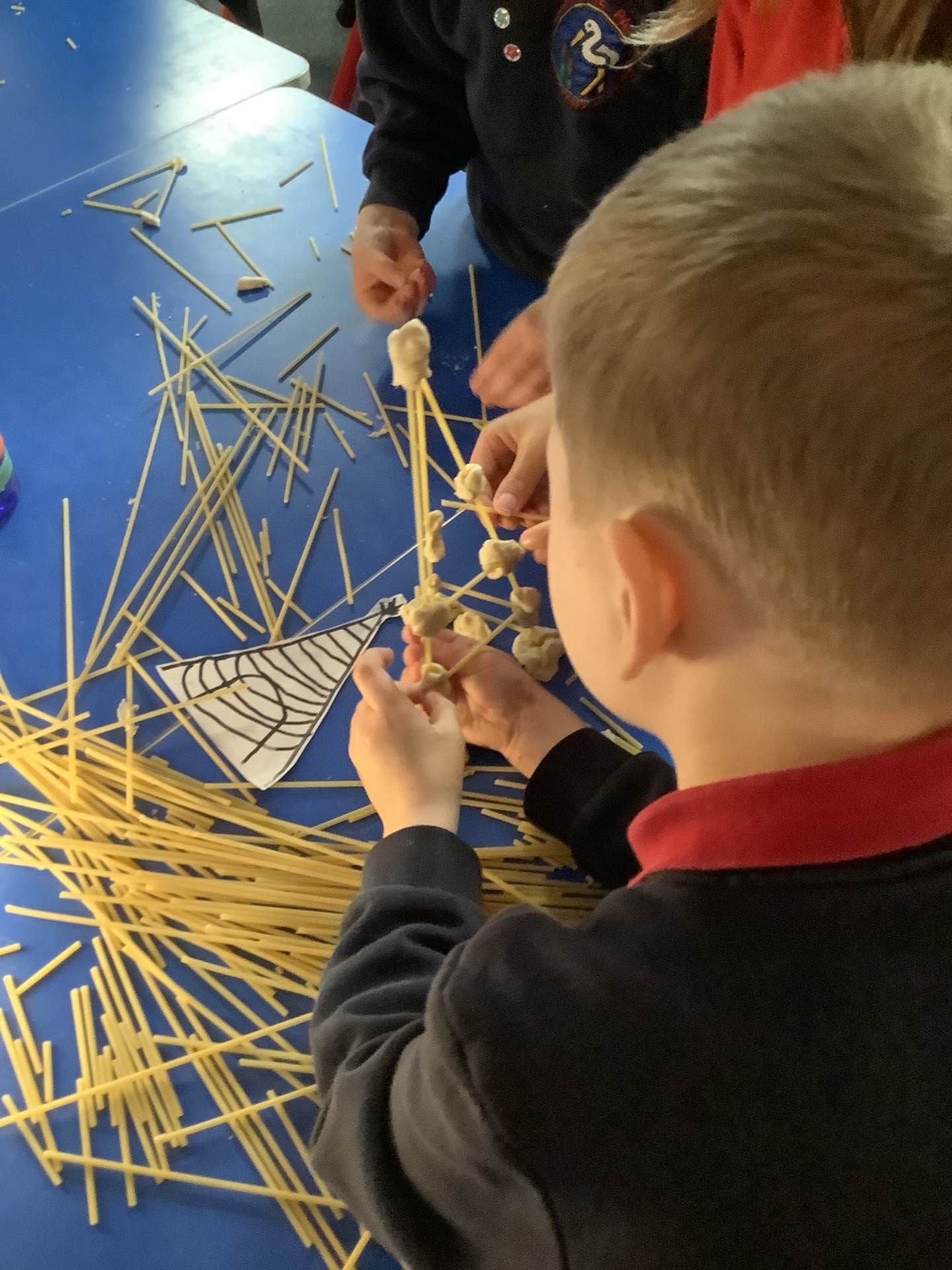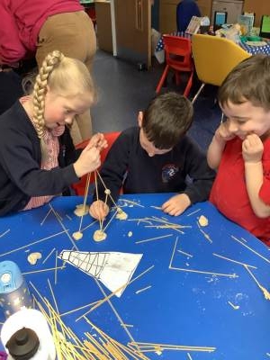 This week, the children have been designing their own towers, utlising the strengthening techniques that we have learnt about. Today, the children tested their designs, using spaghetti and playdough.