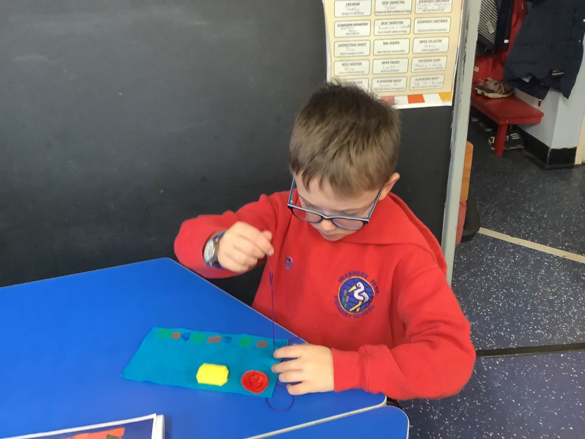 In Design and Technology, we have been learning that there are lots of ways to join fabrics together. We have learnt that fabrics can be sewn together, glued, stapled or safety pinned. We have also explored weaving as a way of joining and creating patterns.