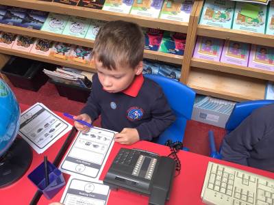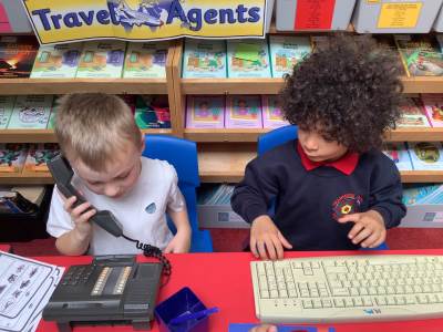 As our entry point to our new topic 'Hooray, Let's Go On Holiday,' the children practised booking a holiday in our very own 'Tranmere Travel Agents.' The children enjoyed taking on the role of the travel agents and the customers. They enjoyed selecting their own worldwide desination, deciding how long they wanted to stay for, how they wanted to travel there and which hotels they wanted to stay in. The children asked some fabulous questions and took on the roles brilliantly. Well done Eagles!