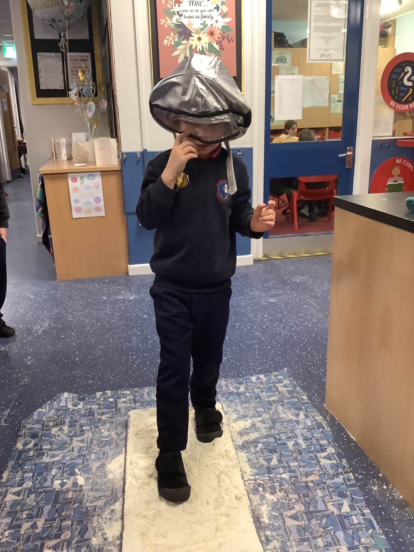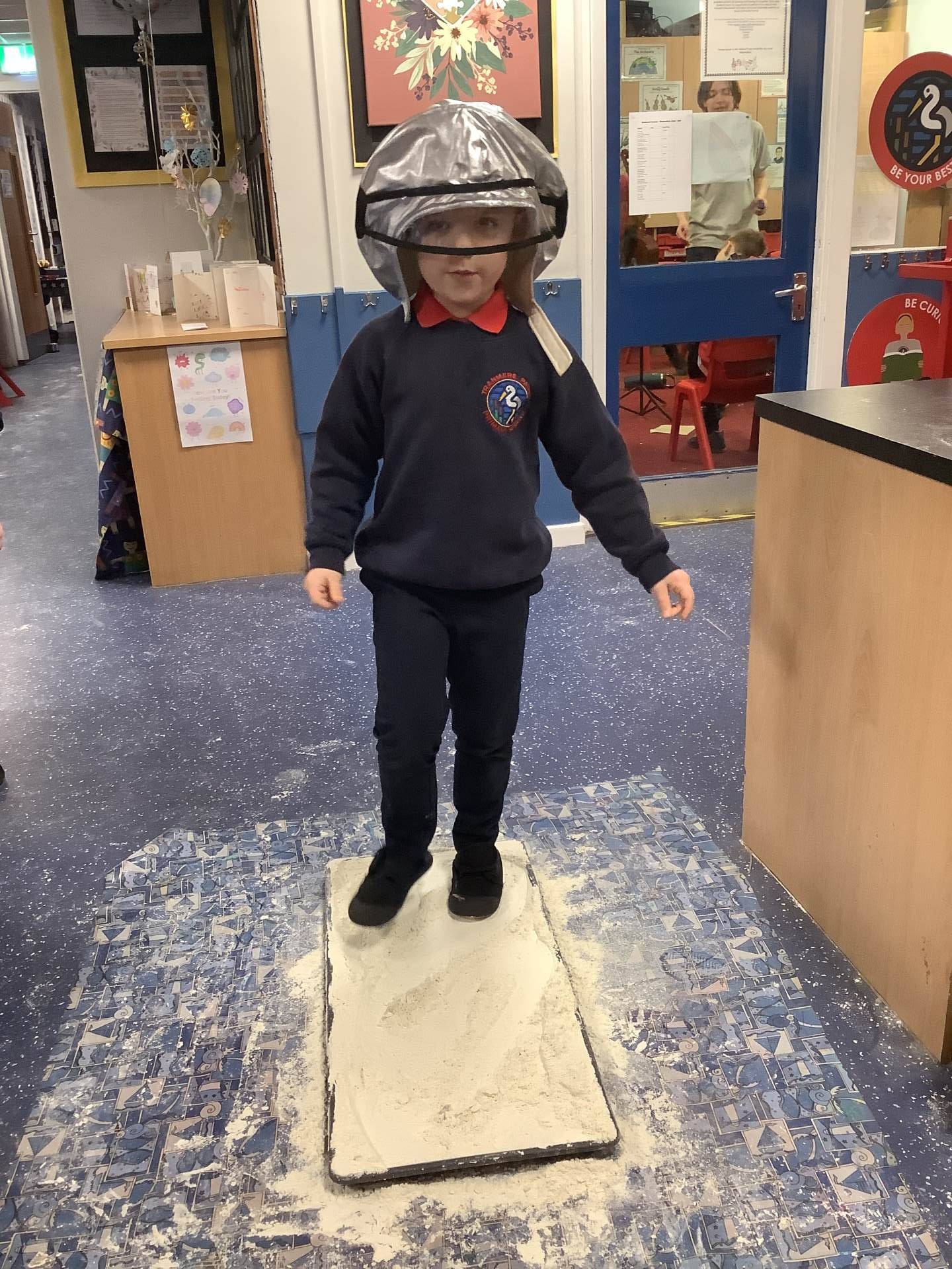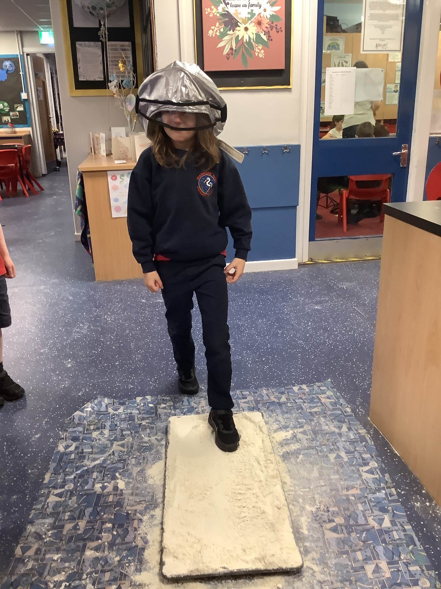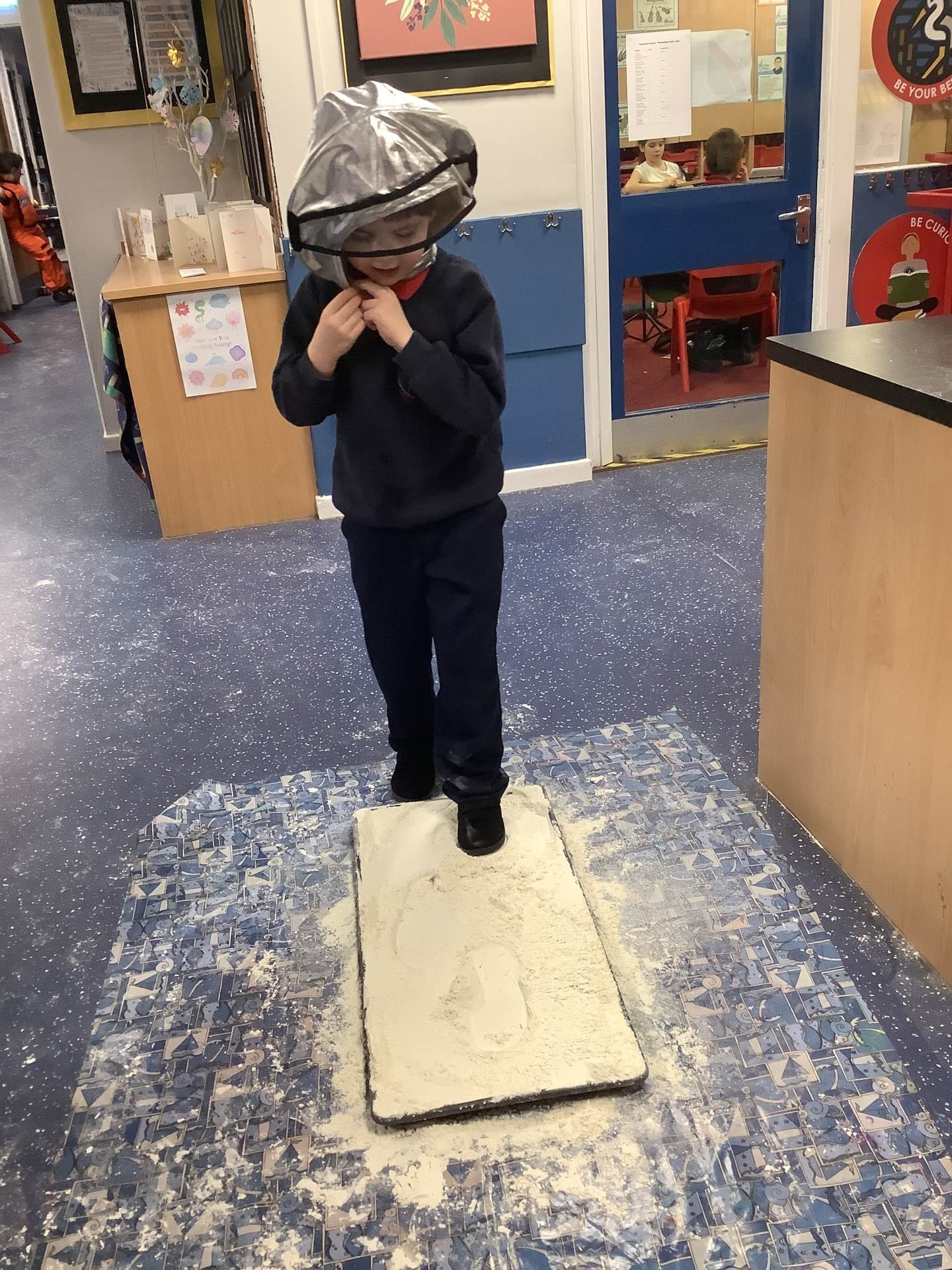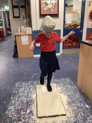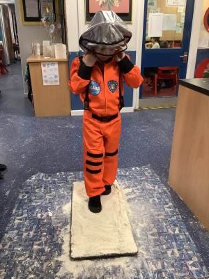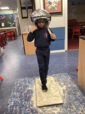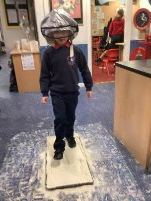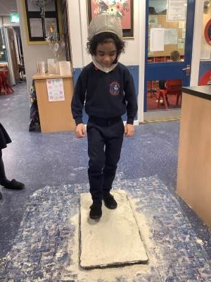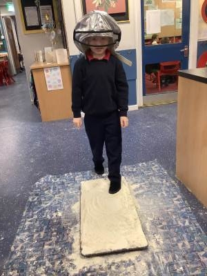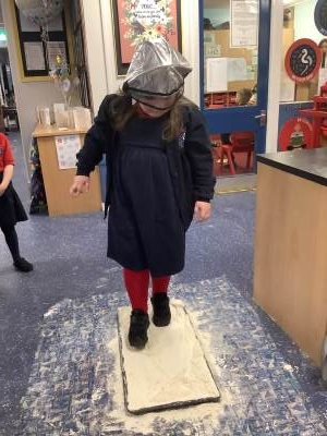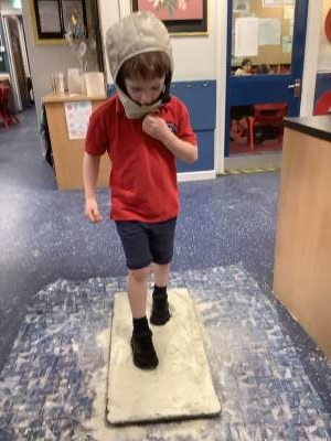 Over the last few weeks, Eagles class have been learning about the events of the First Moon Landing. To bring our learning to life, the children took their own steps on the moon's surface through role play. We used flour to imitate the surface of the moon and as the children stepped onto it, they said Neil Armstrong's famous words - "that's one small step for man, one giant leap for mankind." The children took their roles very seriously and said his famous words with great enthusiasm. We discussed how Neil Armstrong's footprints are still on the moon today as there is no wind on the moon. The children thoroughly enjoyed this fun (and slightly messy) experience!