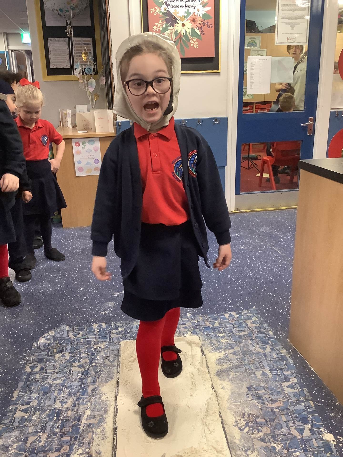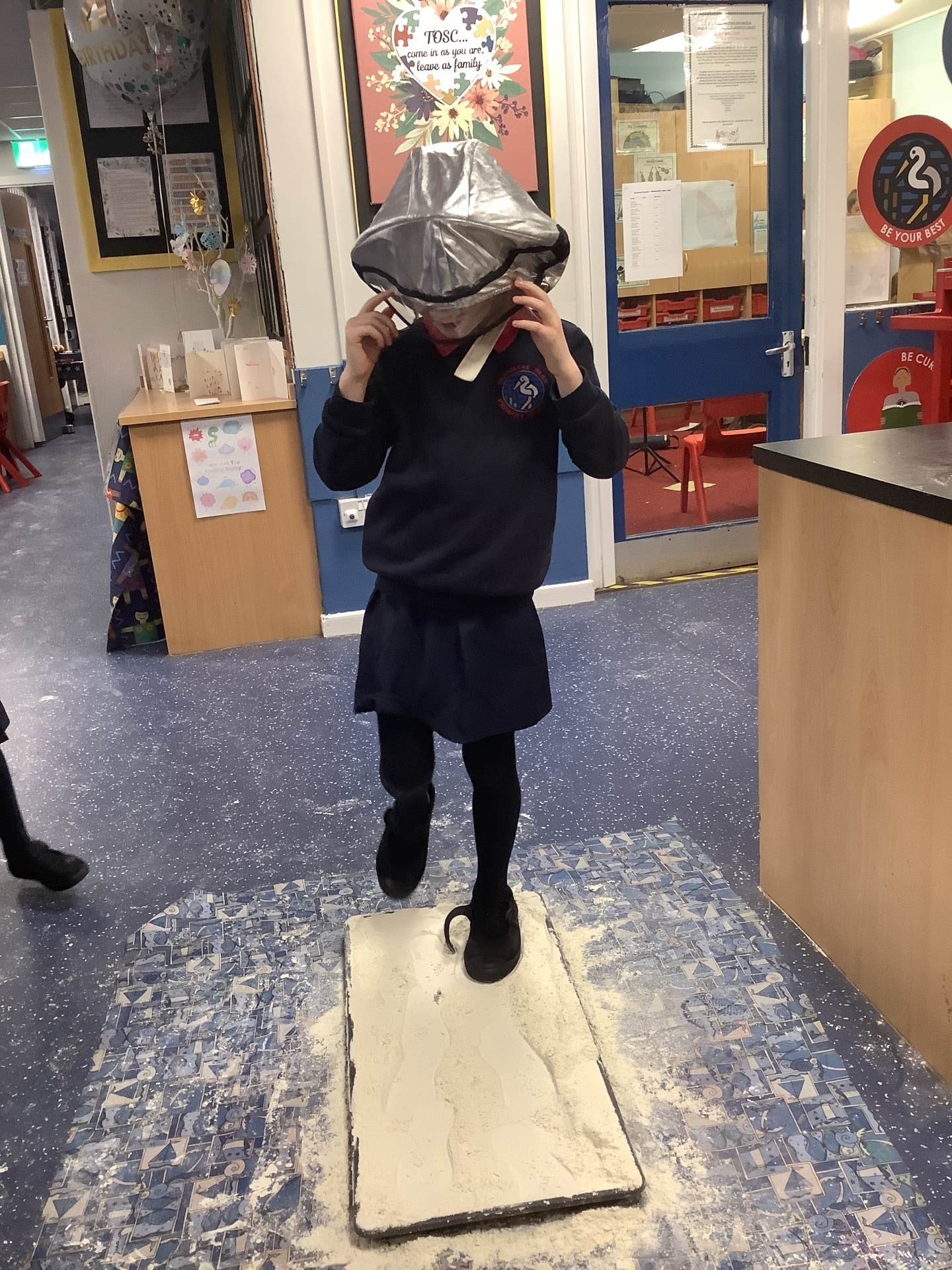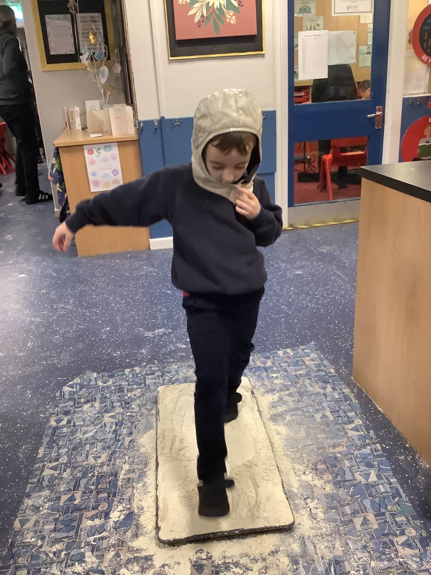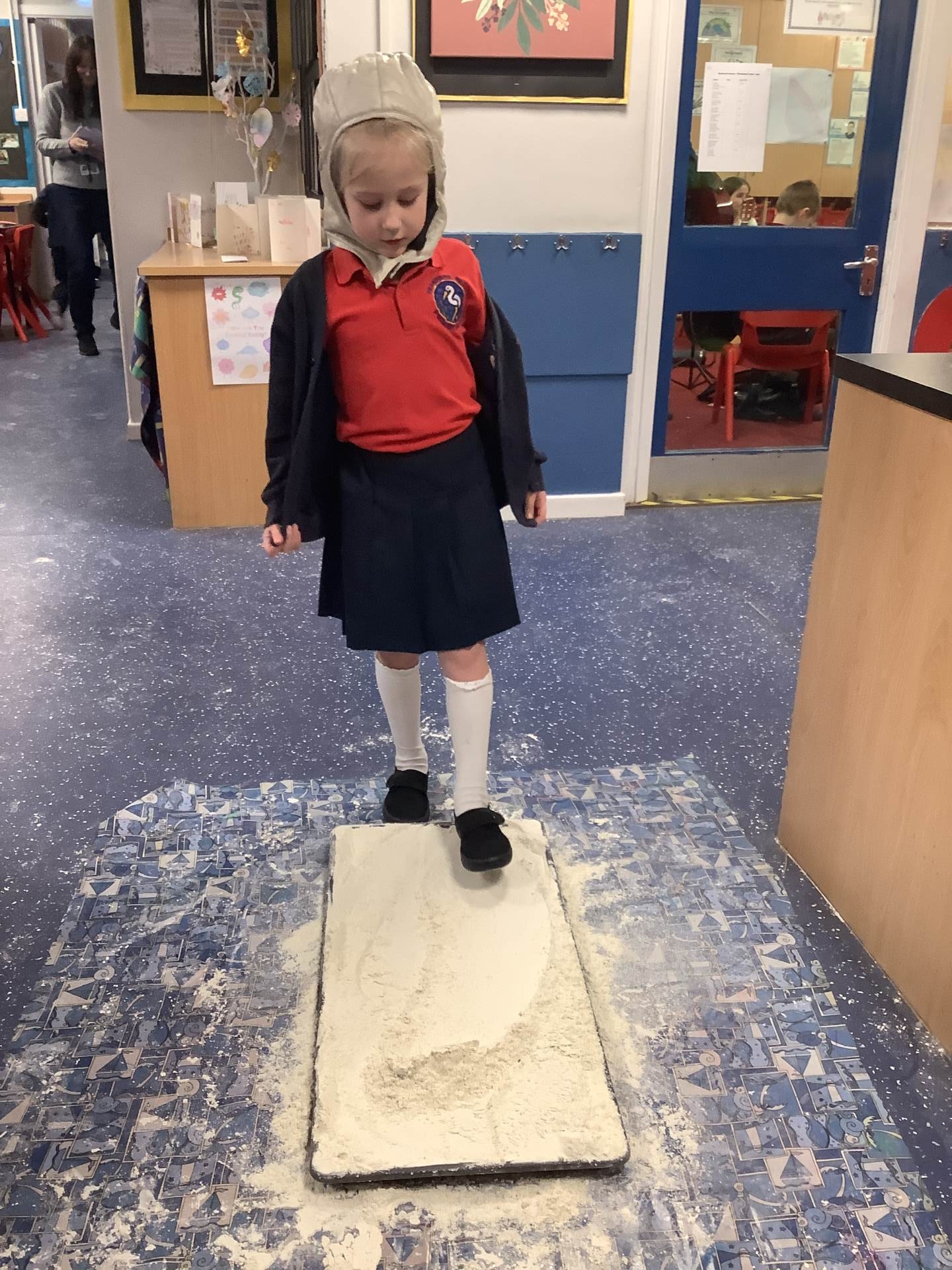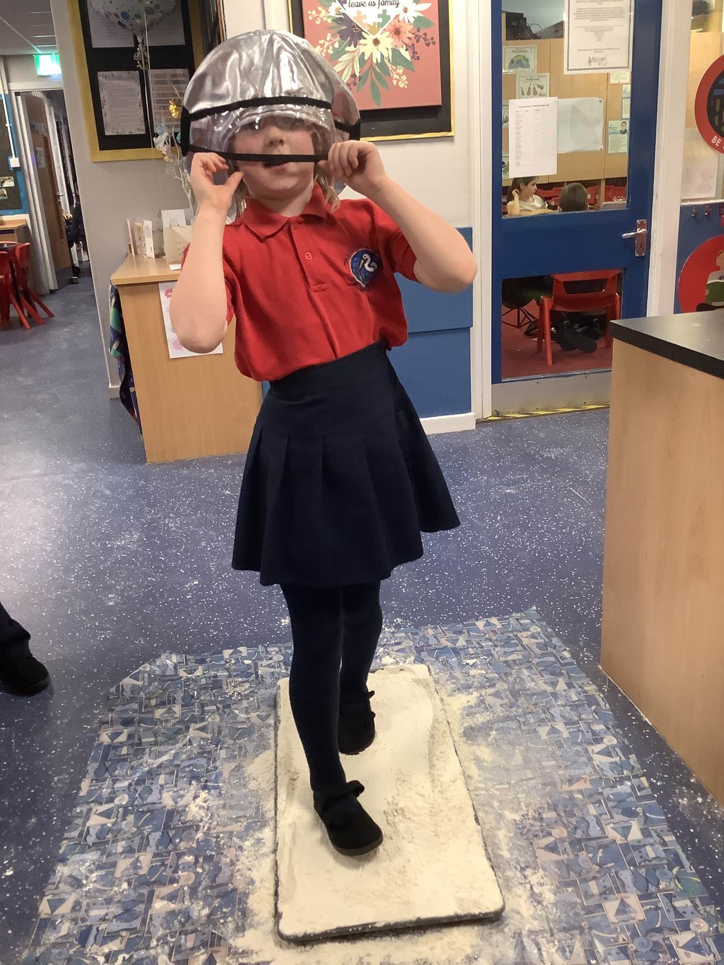 Over the last few weeks, Eagles class have been learning about the events of the First Moon Landing. To bring our learning to life, the children took their own steps on the moon's surface through role play. We used flour to imitate the surface of the moon and as the children stepped onto it, they said Neil Armstrong's famous words - "that's one small step for man, one giant leap for mankind." The children took their roles very seriously and said his famous words with great enthusiasm. We discussed how Neil Armstrong's footprints are still on the moon today as there is no wind on the moon. The children thoroughly enjoyed this fun (and slightly messy) experience!