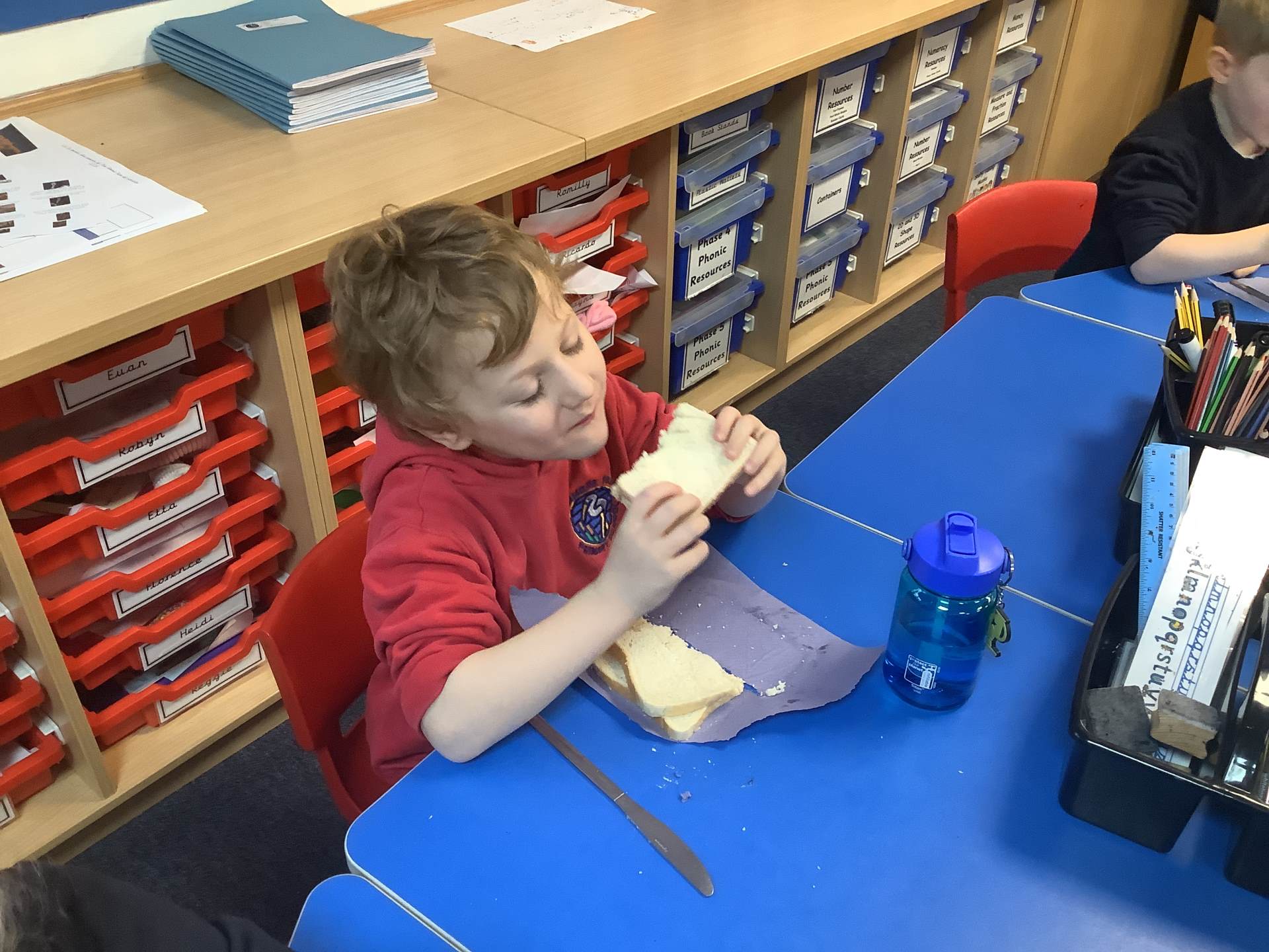 They all did a fantastic job of making their jam sandwiches, and an even better job of eating them!