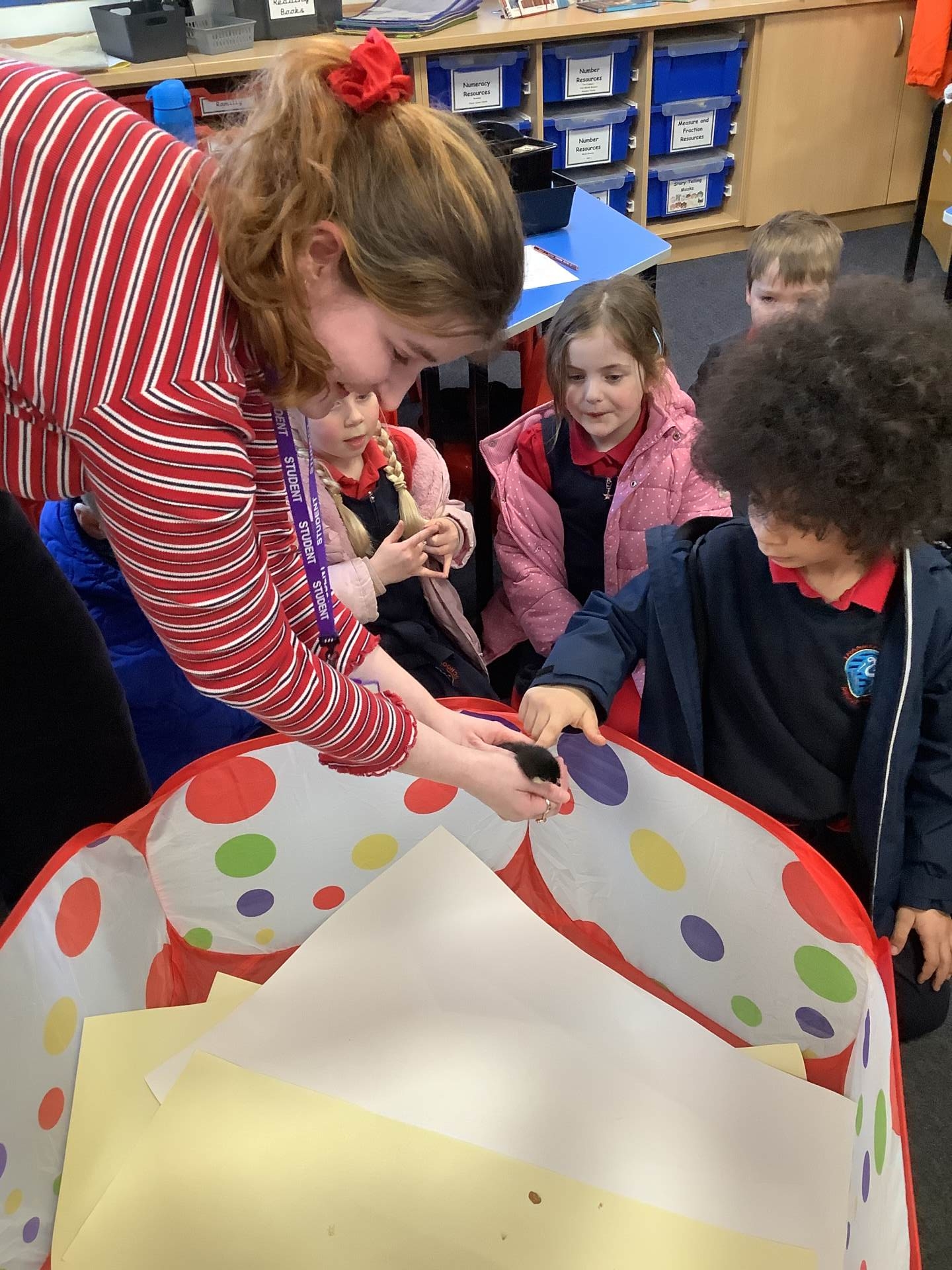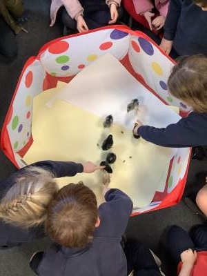 The children have enjoyed the responsibility of taking care of our chicks and they have ensured that they are warm and have enough food and clean water to drink. They've also enjoyed a great number of cuddles too! We have loved having the chicks in our classroom and will definitely miss them next week!