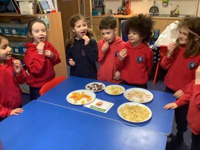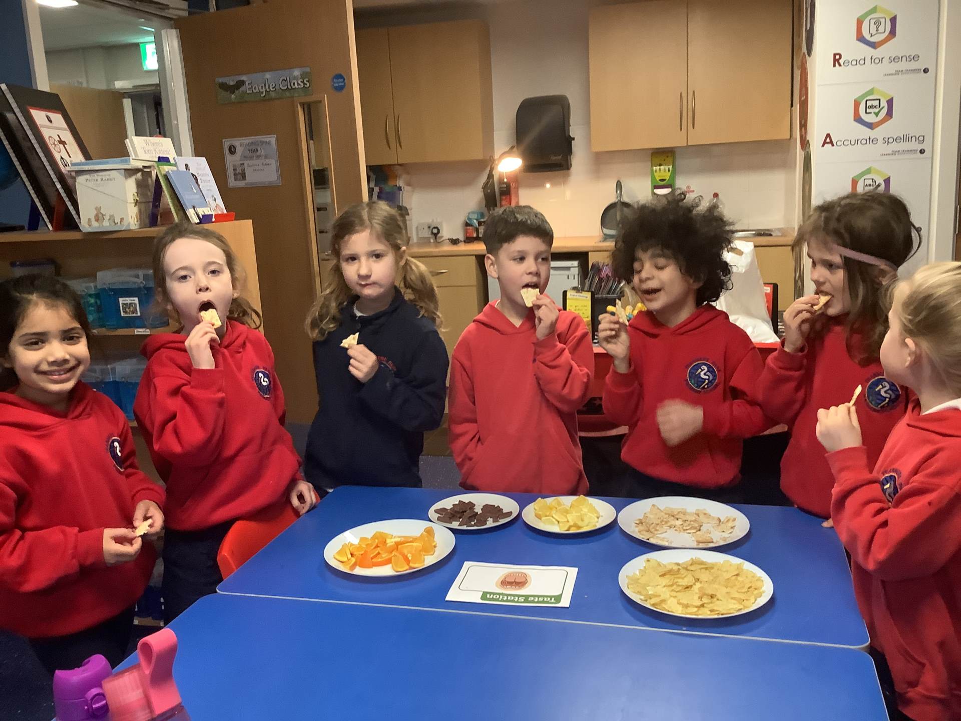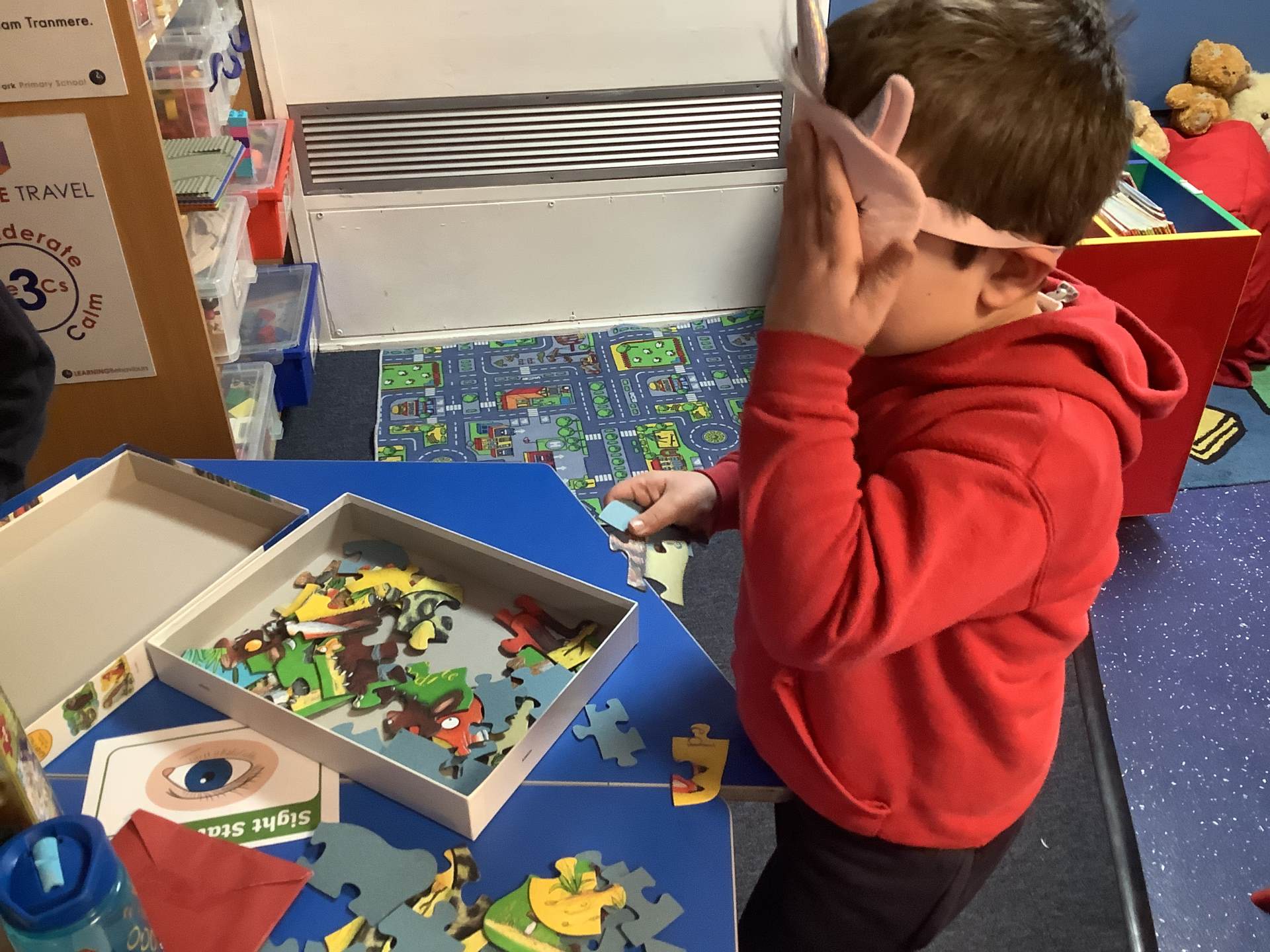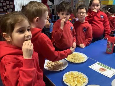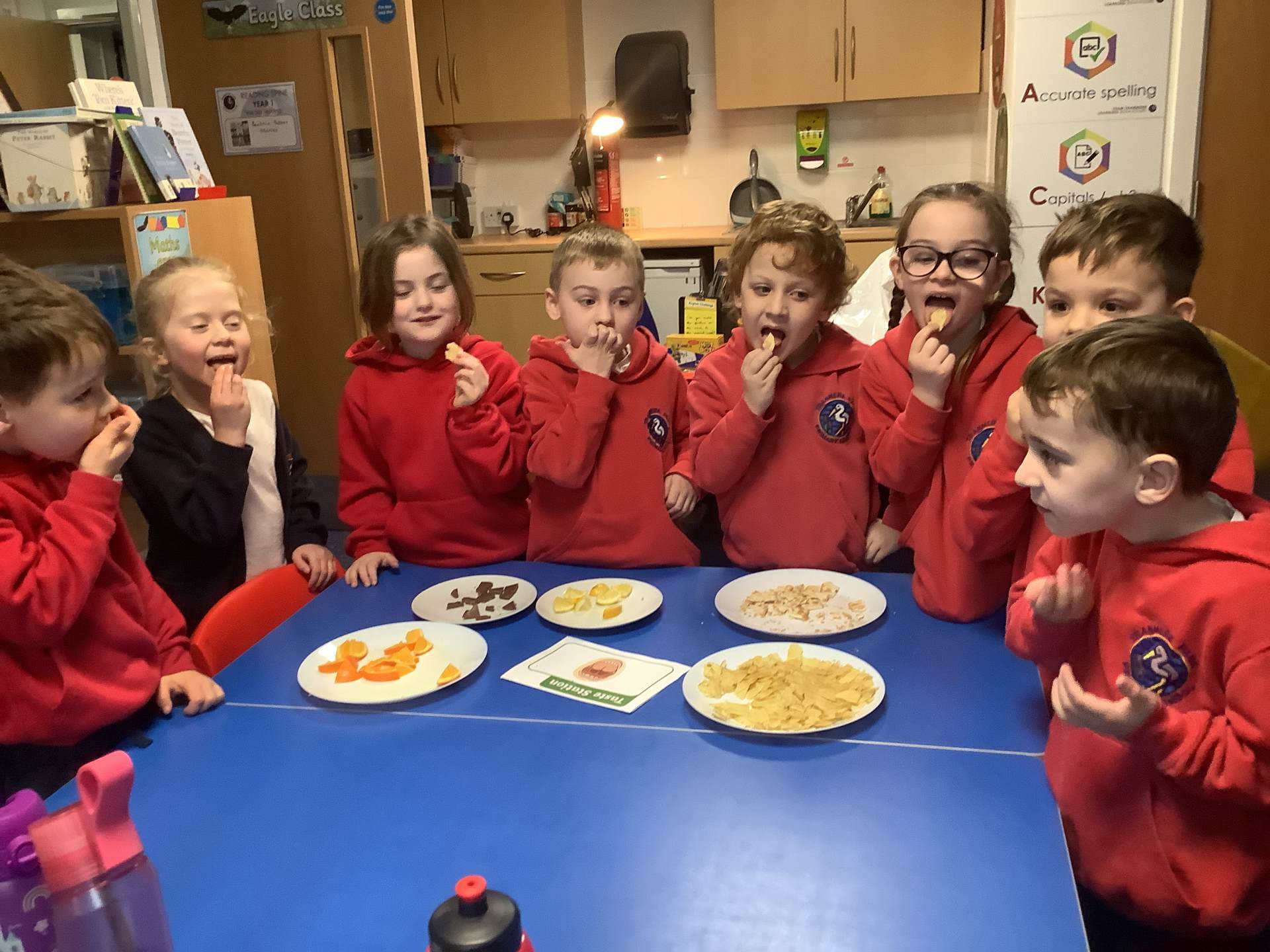 As part of our science work we discussed what we already knew about the 5 senses (sight, hearing, smell, taste, and touch) and identified which body part is used for each sense. The children then completed an investigation to see how good their senses were.
