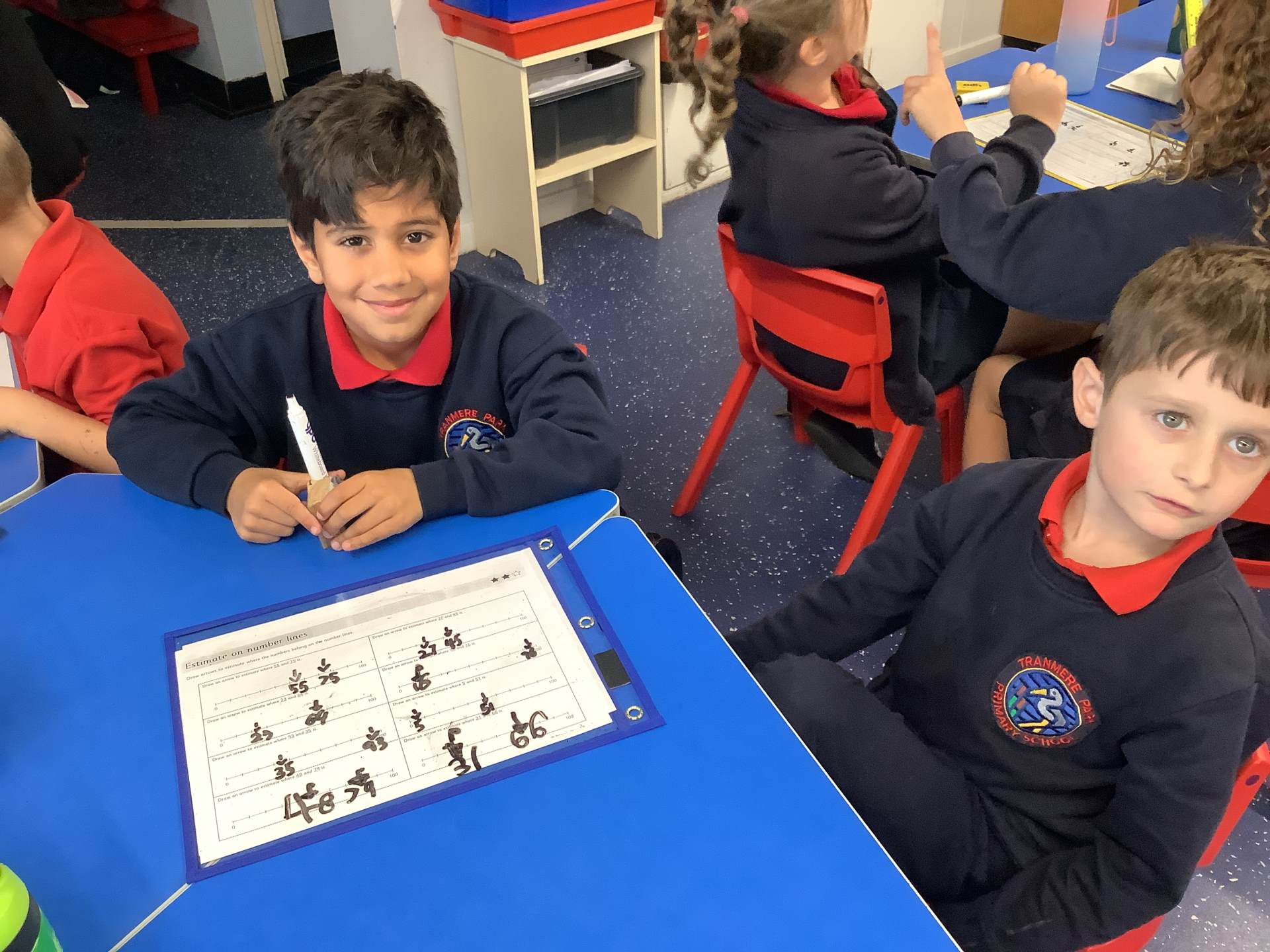 In maths, Year 2 have been practising identifying and representing numbers on a number line. We used our knowledge of number lines to estimate where a chosen number would go. We also discussed how to make a sensible estimate by looking at the numbers at the start and end of the line and thinking about where the number would fit.