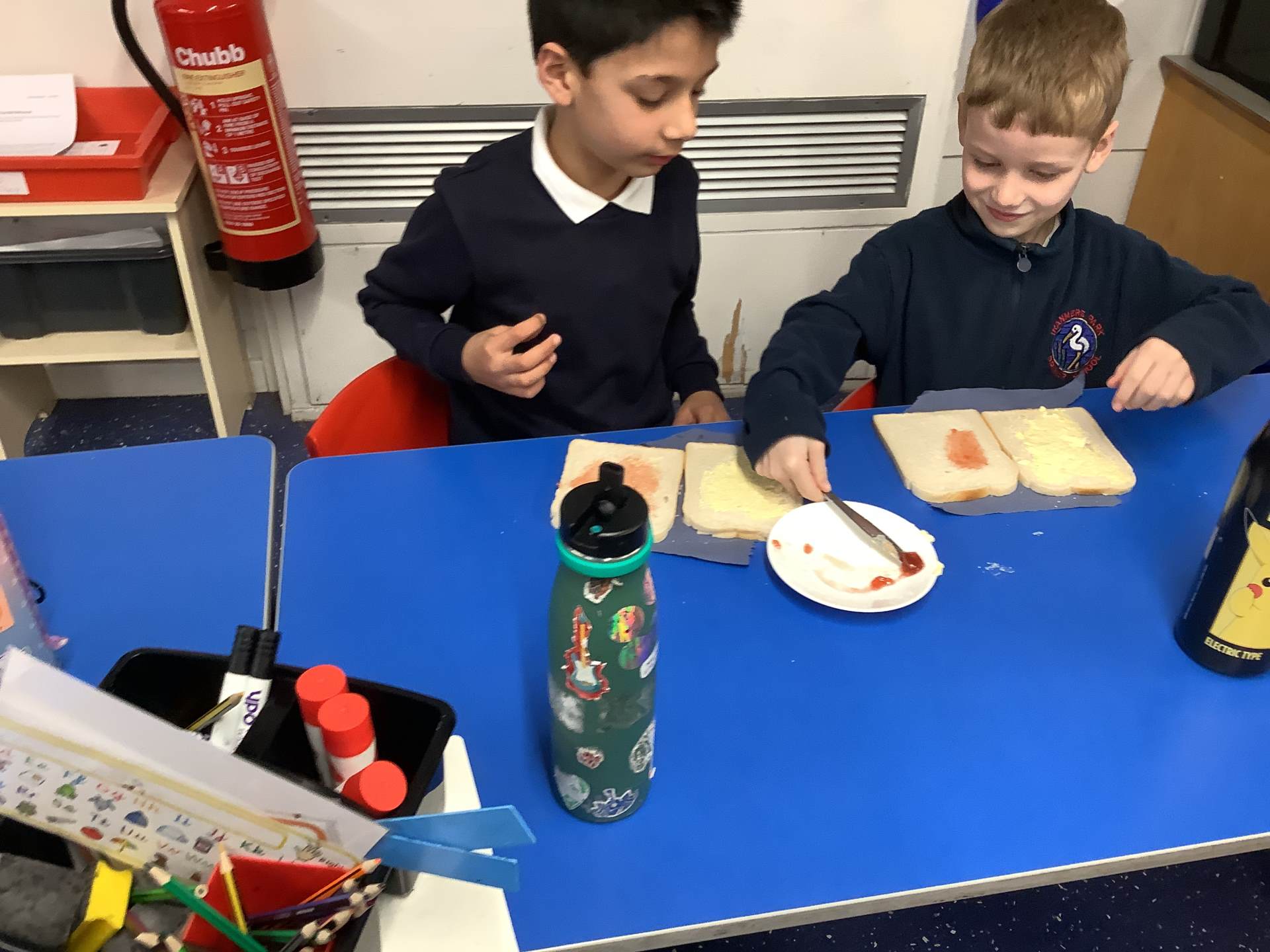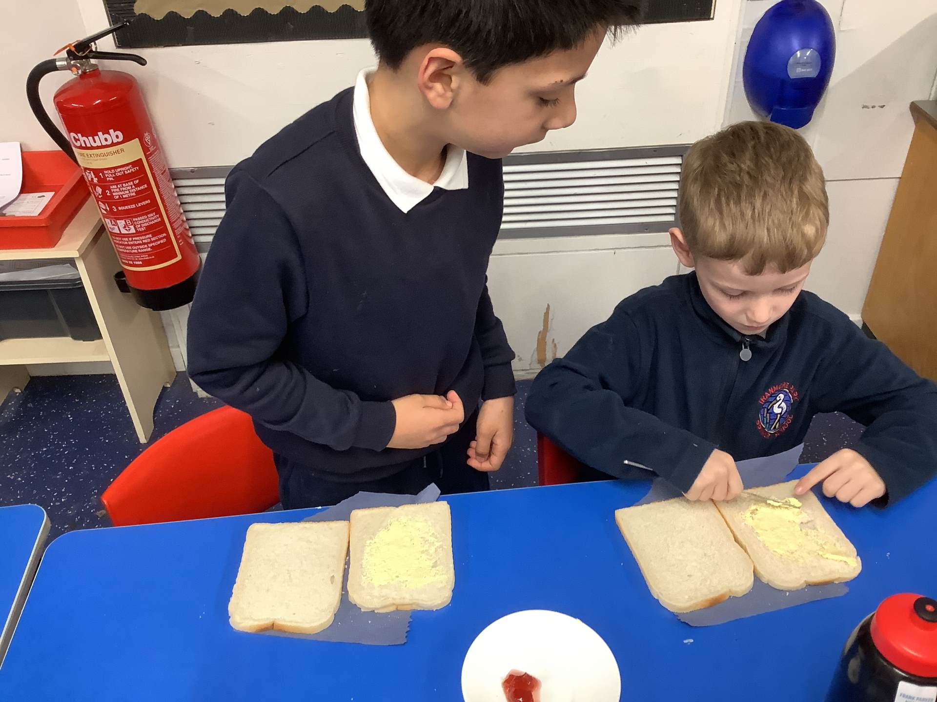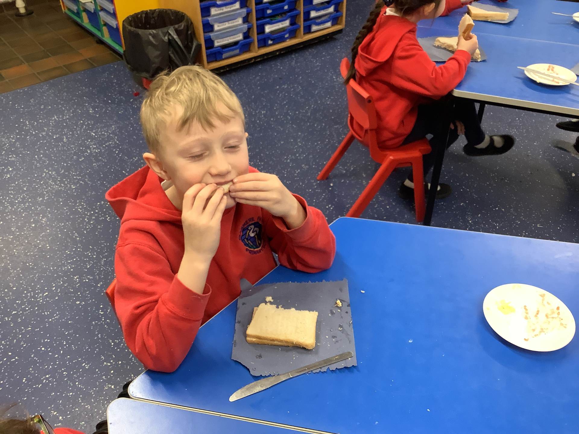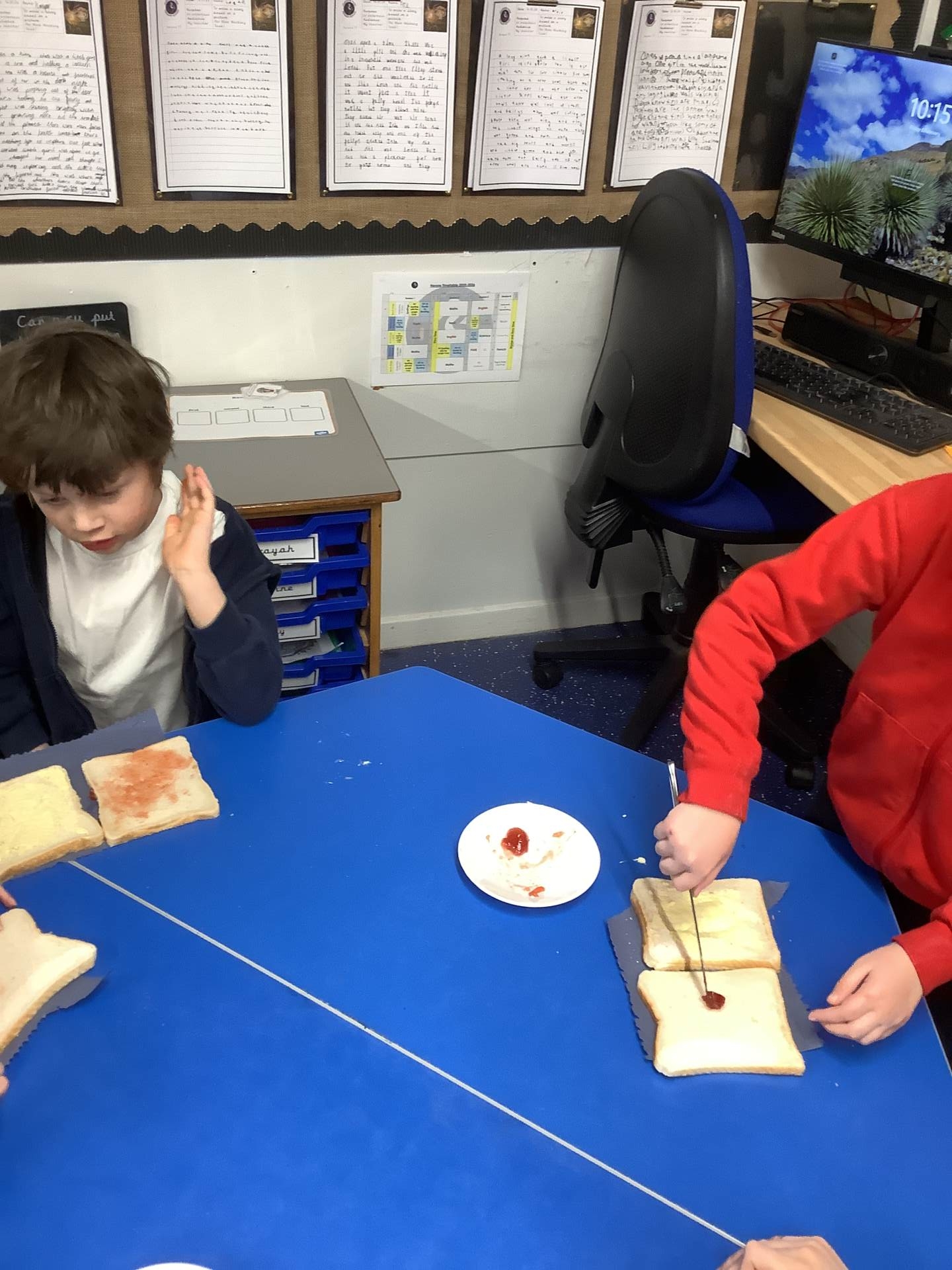 They all did a fantastic job of making their jam sandwiches, and an even better job of eating them!