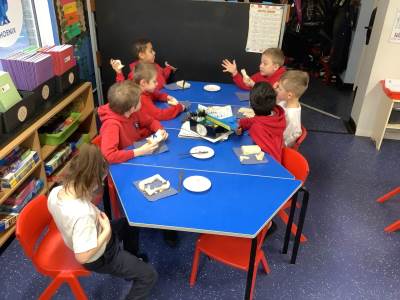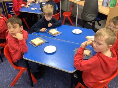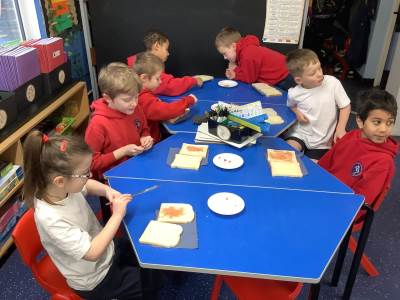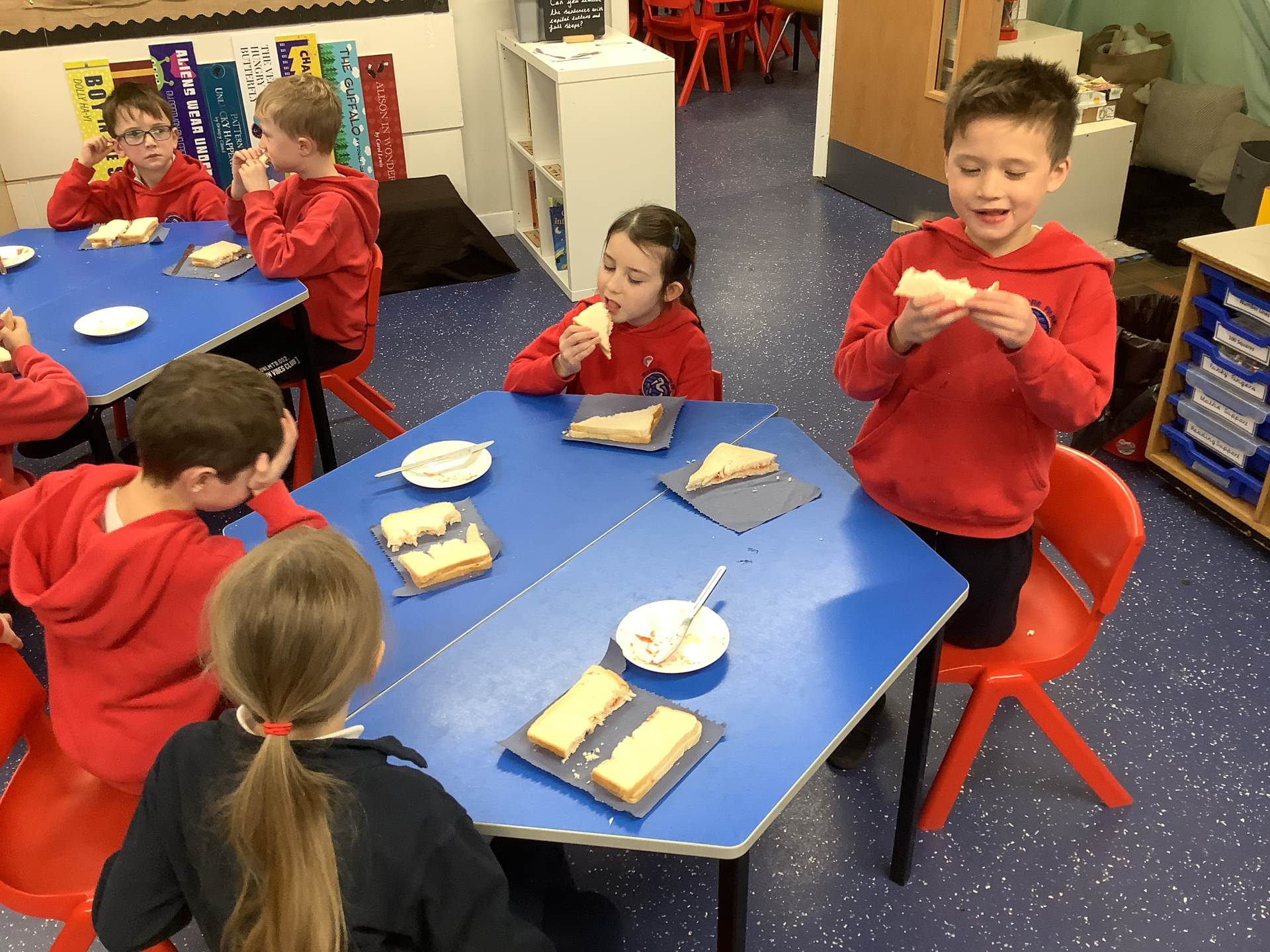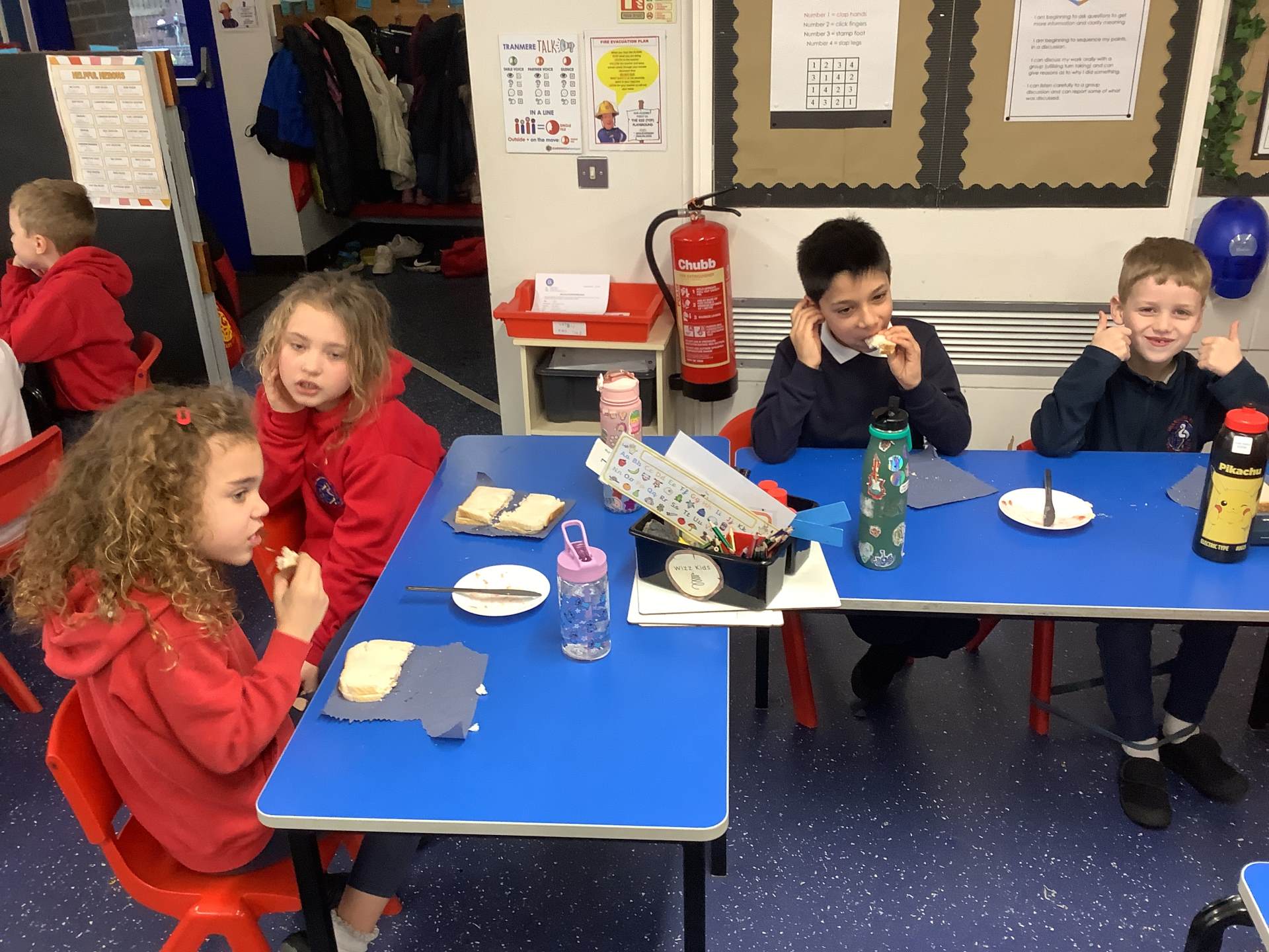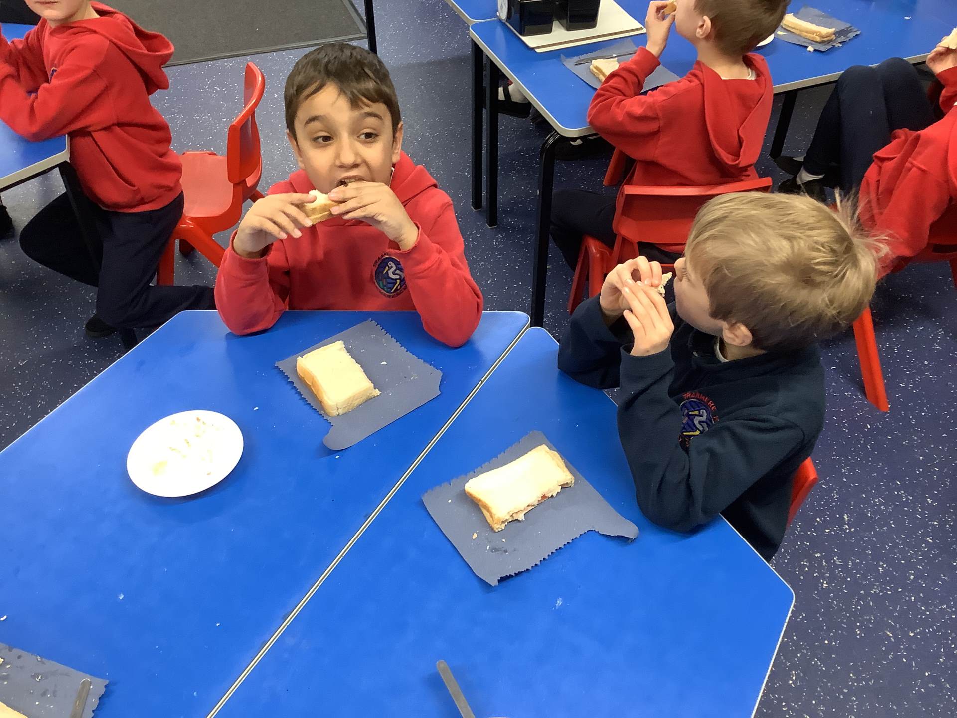 They all did a fantastic job of making their jam sandwiches, and an even better job of eating them!