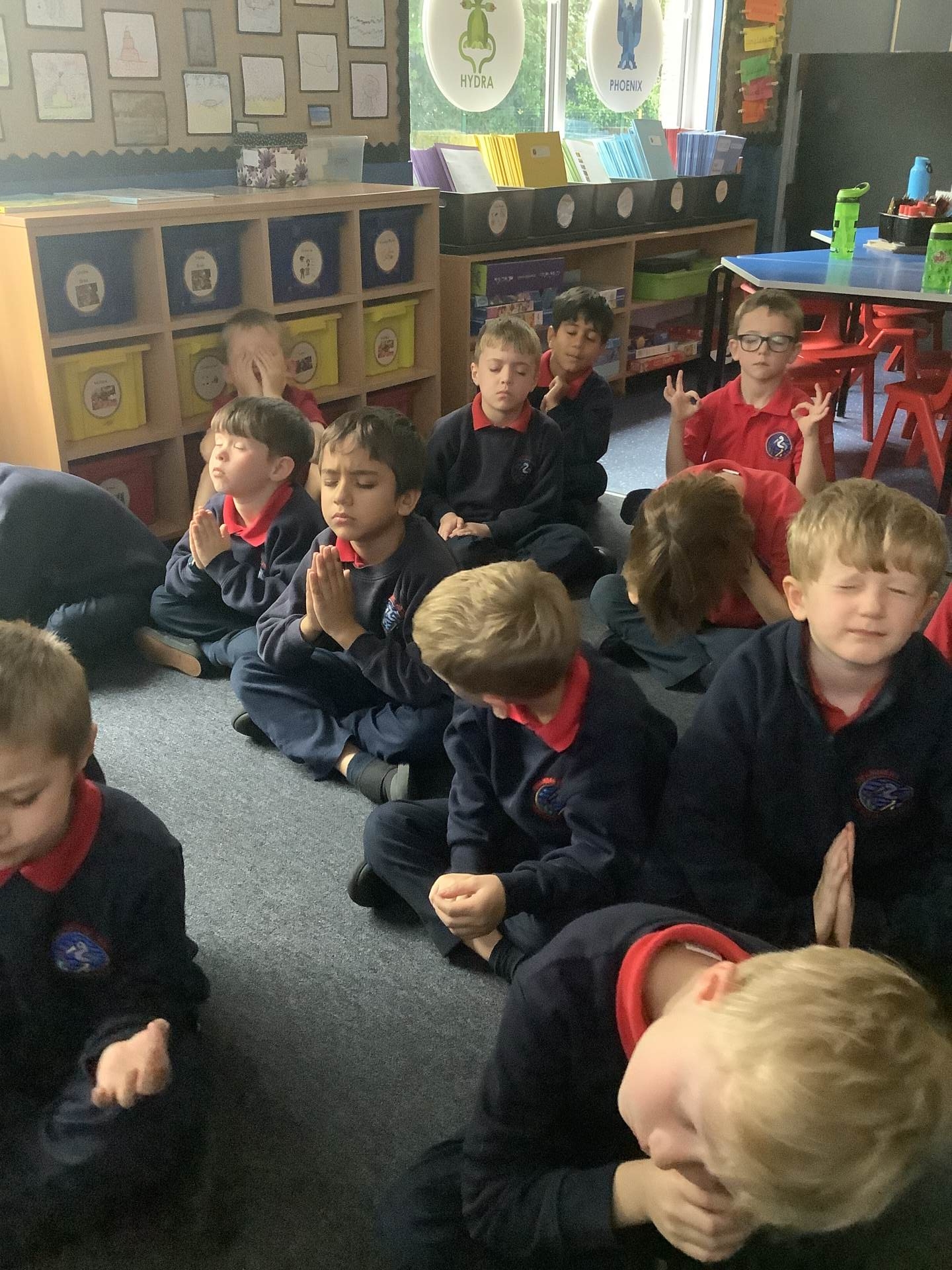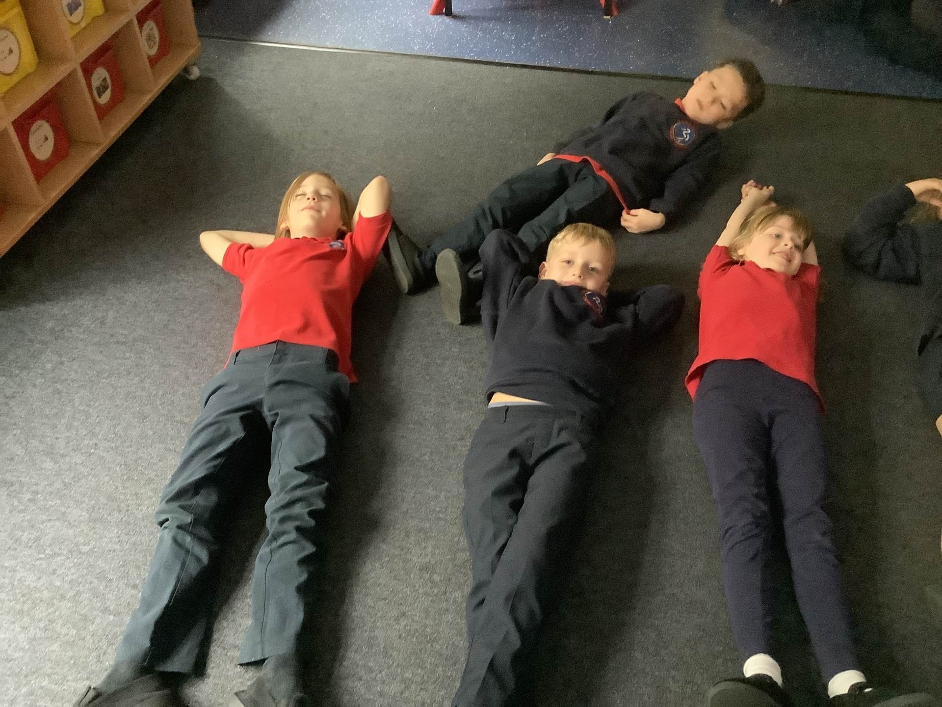 Next, we imagined a day at the beach. Using items linked to holidays, sounds of waves, and a guided visualisation, the children explored what it might feel like to be by the sea. This helped them focus on using their senses and descriptive language.