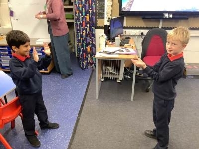 Following this the children worked in small groups acting out typical beach scenes like surfing, relaxing on a sun lounger and playing volleyball. Each group created a freeze frame, and children described what they were doing using clear, confident voices.