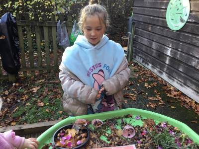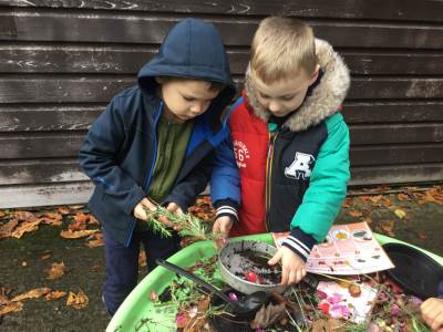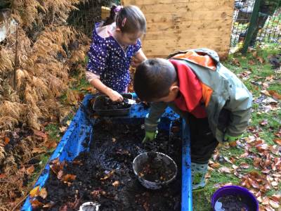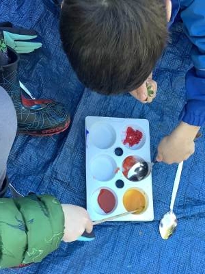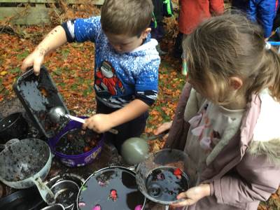 The children have loved immersing themselves in nature; creating natural dyes, playing and exploring through mud kitchen activities, learning to tie knots and creating their own rock pools using natural resources.