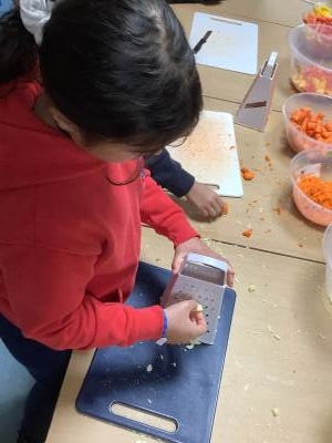 On Wednesday, Lower Key Stage Two made their own healthy pasta bake - it was packed with vegetables! To make it, we boiled pasta, grated cheese and carrot, chopped peppers and tomatoes, snipped spring onions and basil. We then added our own tomato sauce and mixed it all together. Once done, we baked it in the oven and our pasta bake was finished! We loved tasting it at home. Have a look at how much fun we had when we created it!