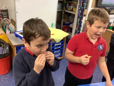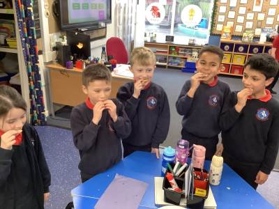 As part of our science learning, we discussed what we already knew about the 5 senses and identified which body part we use for each sense. We then completed an investigation to see how good our senses were. Which is tastier - chocolate or lemon?! See if you can work out our answers by looking at our photos below!