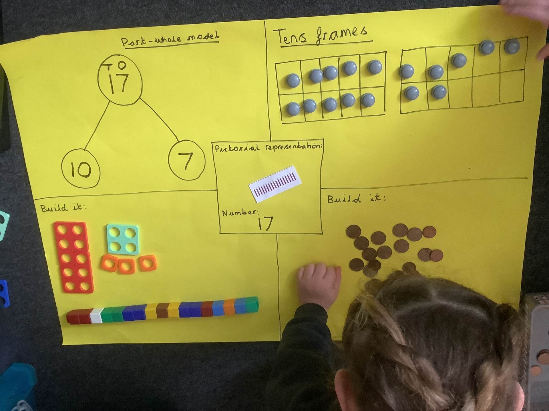 In Eagles class this week, the children have been using concrete apparatus to represent numbers to 20 in a variety of ways. Through practical exploration, the children have represented numbers using numicon, coins, counters, base 10, part-whole models, tens frames and much more!