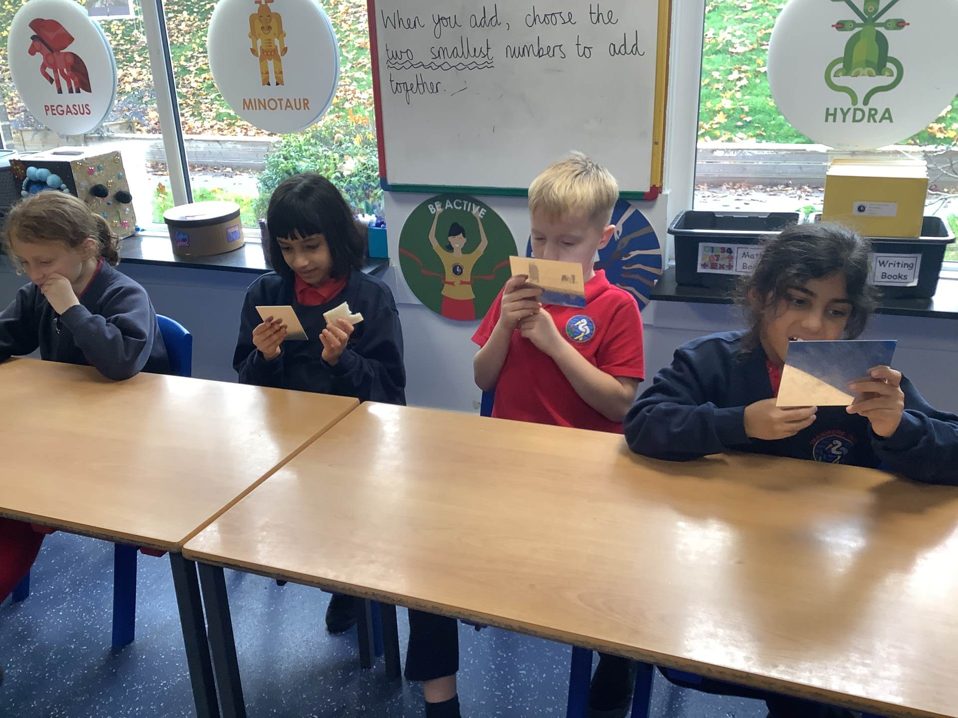 Today, the children looked at the four types of teeth; incisors, canines, molars and premolars. They spent time looking in mirrors to identify these teeth and how they use them to chew different foods. They also looked at different animals’ teeth and why they were different depending on their diet.
