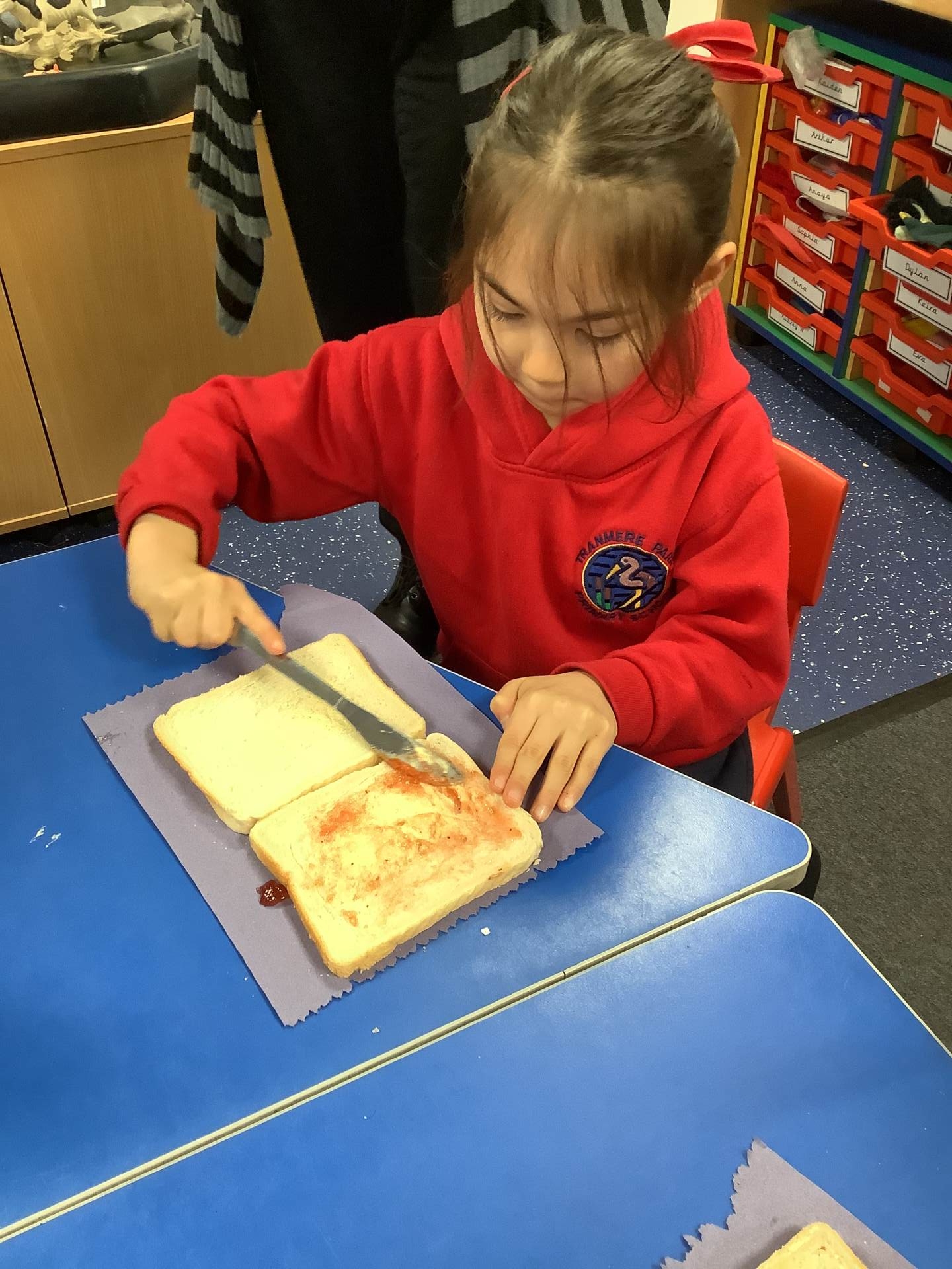 They all did a fantastic job of making their jam sandwiches, and an even better job of eating them!