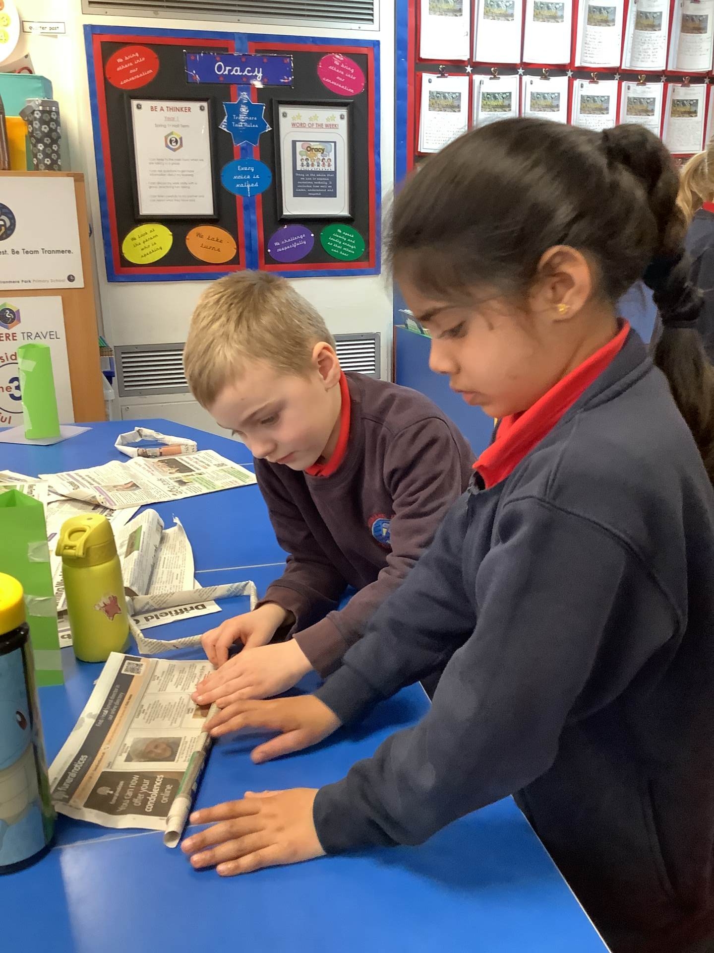 During today's DT lesson, the children have been learning how to make their towers stronger using a range of strengthening techniques.
