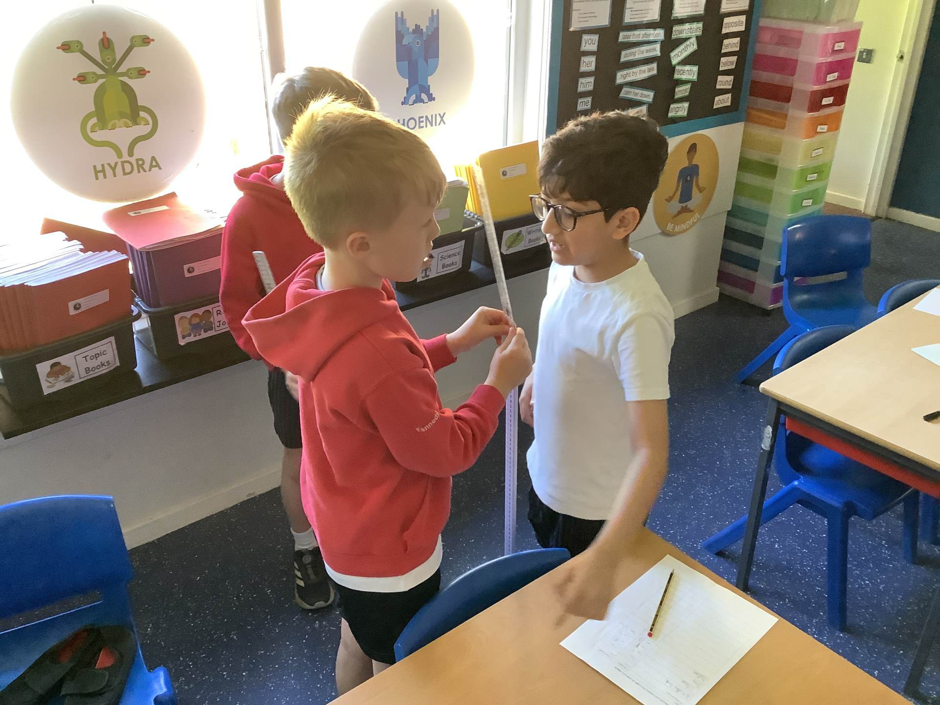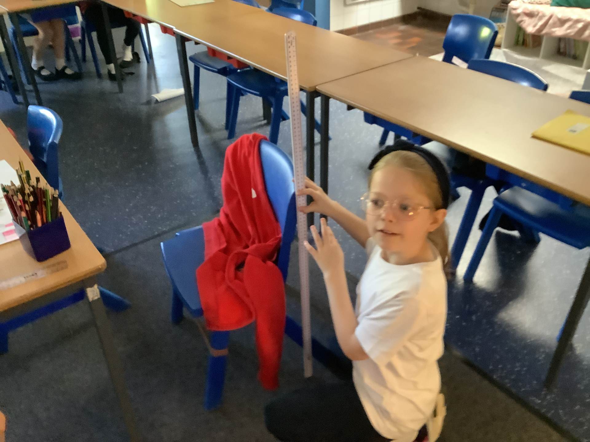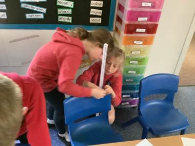 Today, Year 3 spent time measuring different objects in the classroom. They used different units of measurements including; metres, centimetres and millimetres. The children had to estimate the length before they measured it for accuracy.