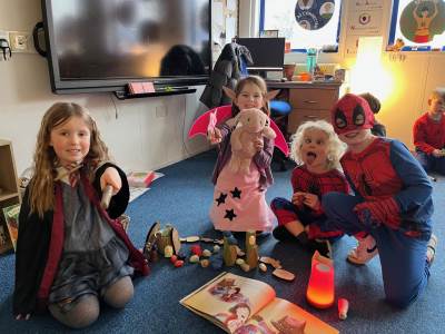 As part of World Book Day, Bluebirds took part in some mystery book sessions. Throughout the day, they were repeatedly presented with two books wrapped in paper, each with an illustration clue attached to the front.