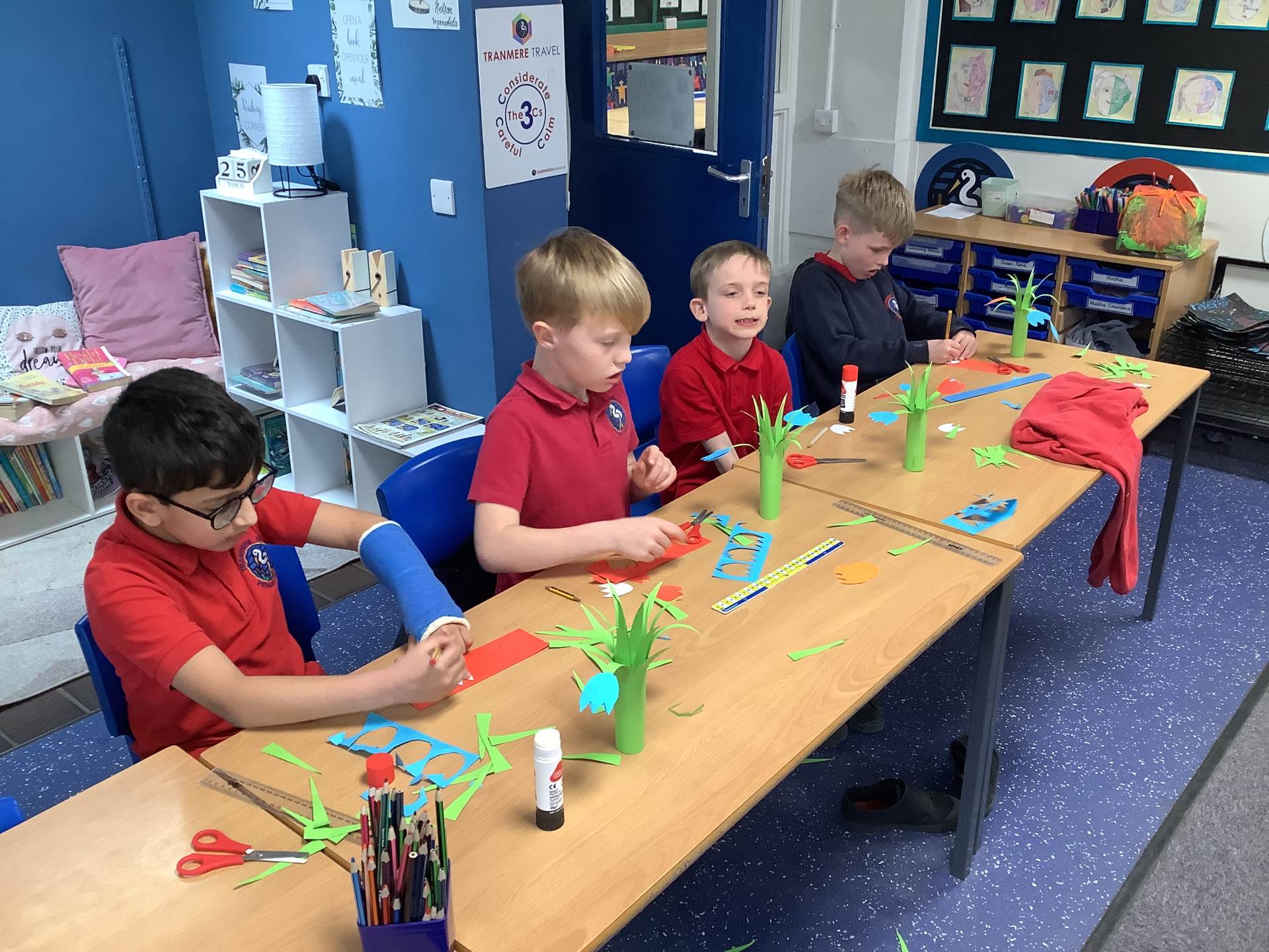 Year 3 have spent time looking at different vases of flowers and discussing what they could see. They spent time sketching these flowers and adding colour to them. As they enjoyed this activity so much, the children had the opportunity to create their own vases of flowers using different coloured paper.