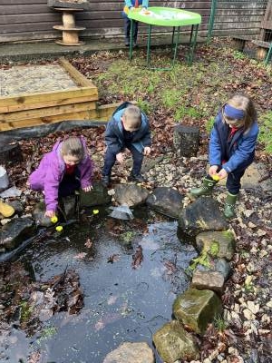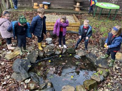 On Muddy Puddle Day, Puffins, Kingfishers and Doves participated in some outdoor learning. The children learned some new skills and had to put their teamwork ability to the test. The activities included: using a flint and steel to make a fire, using a bowline knot to make a hammock and measure trees to work out its age (circumference divided by growth rate). The children had a fantastic day!